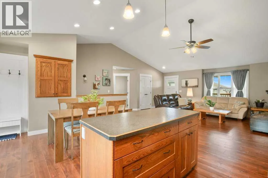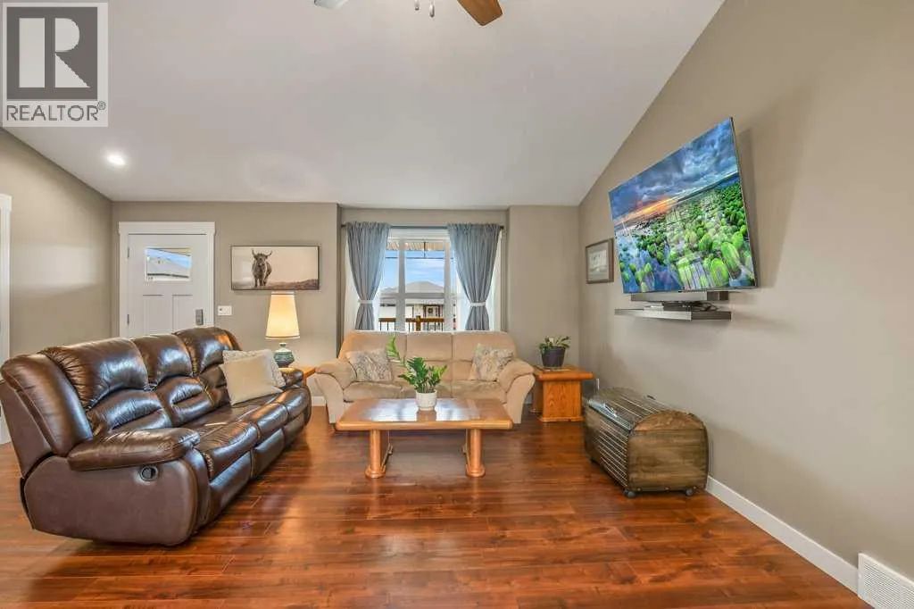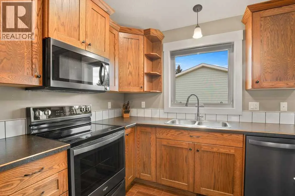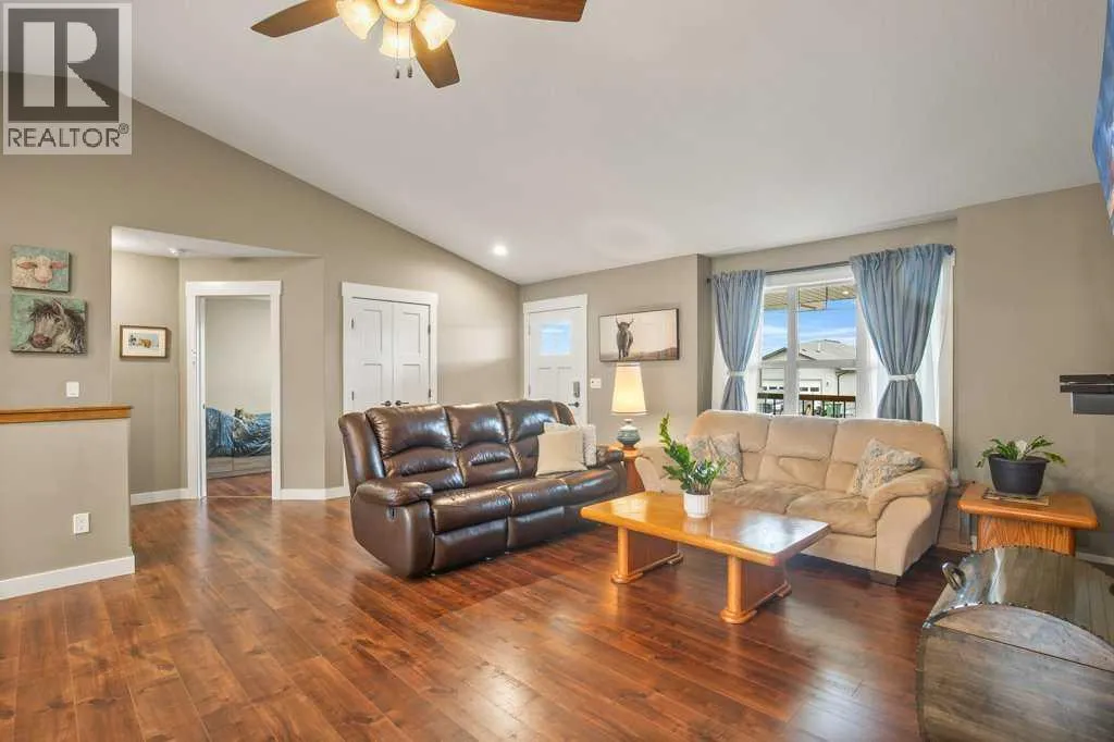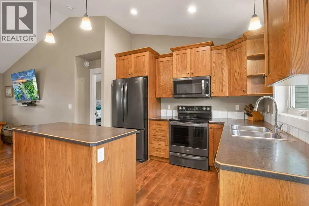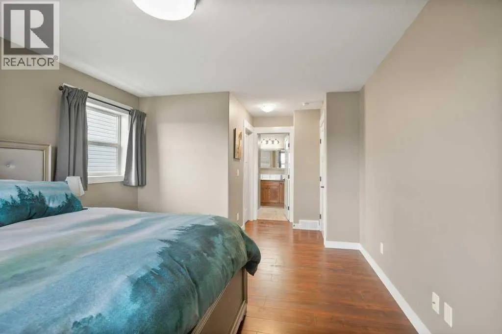 This family-friendly bungalow features 3 bedrooms and 2 bathrooms, offering 1,342 square feet of comfortable living space. The open-concept design boasts vaulted ceilings, warm hardwood floors sprawl throughout the main floor. Large windows that flood the home with natural light. The kitchen is equipped with ample cabinetry, a spacious island, and sleek appliances. The master suite is a private retreat with a 4-piece ensuite and a walk-in closet. Two additional bedrooms and another 4-piece bathroom complete the main level. The basement is an unfinished canvas with roughed-in in-floor heating, ready for your personal touch. Outside, enjoy the back deck overlooking a partially fenced, landscaped yard, and a newly completed detached garage with space for RV parking. (id:27476)