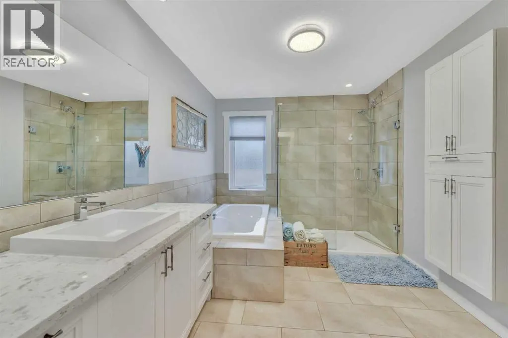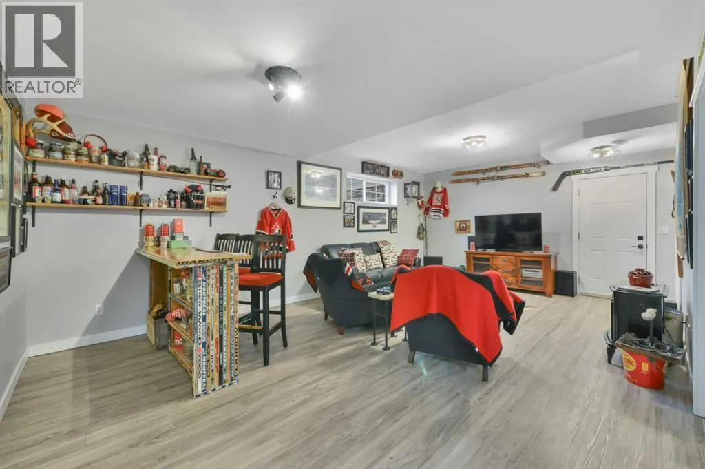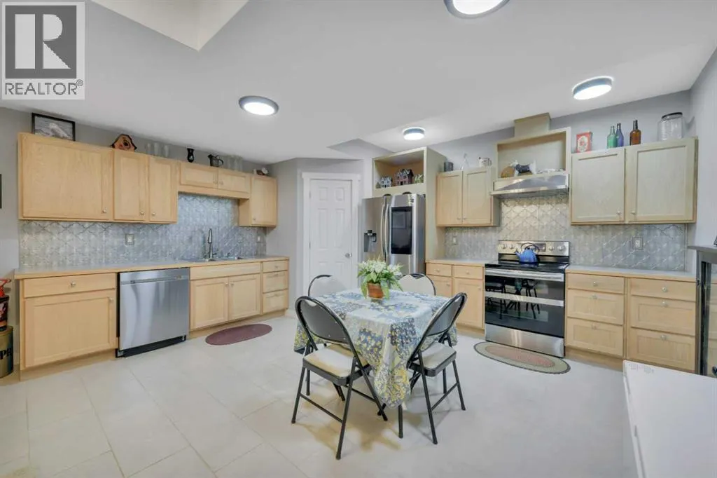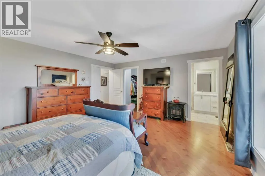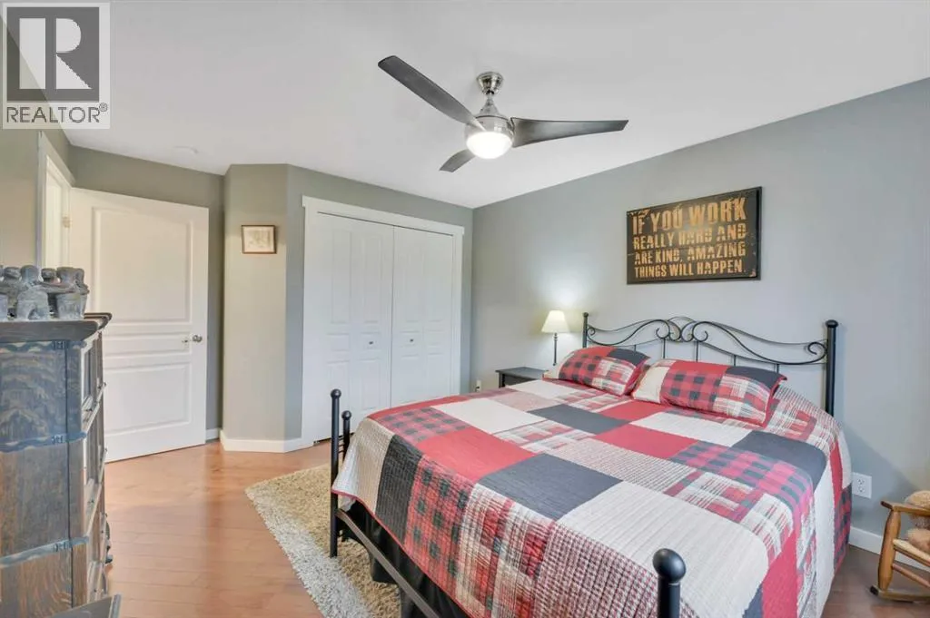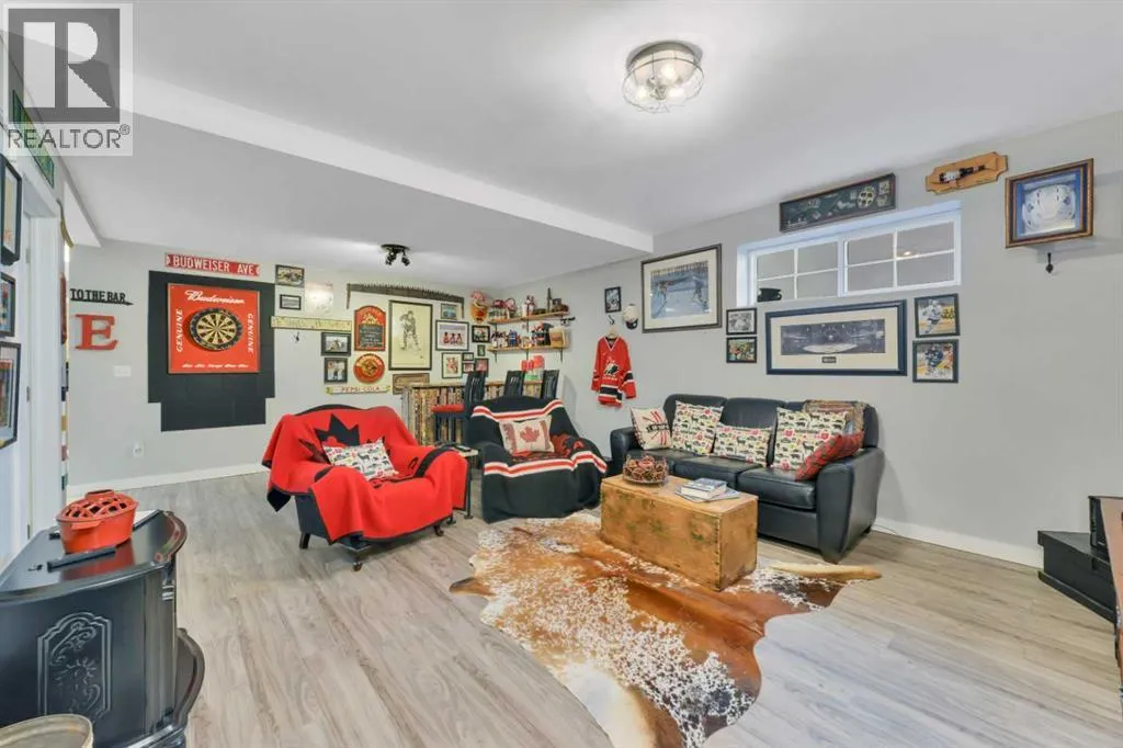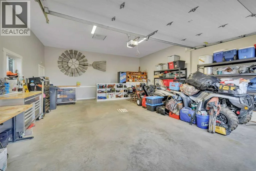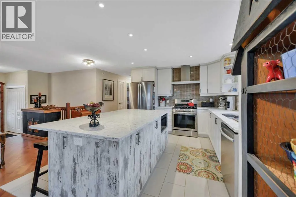 Welcome to this stunning 4-bedroom, 3-bath bungalow perfectly set on 0.99 acres of peaceful countryside just minutes from Rimbey. Combining high-end craftsmanship with warm rustic touches, this home is ideal for anyone seeking both comfort and function, with room to build your dream shop on the gravel prepped pad in back.Step inside and youâre greeted by vaulted ceilings with exposed wood beams and a floor to ceiling stone gas fireplace that anchors the bright, open-concept living space. The premium kitchen features Quartz countertops throughout, a large island, full-height cabinetry, stainless steel appliances, gas stove, and a spacious dining area that opens to the beautiful red cedar deck, perfect for entertaining or enjoying tranquil prairie sunsets.The main level includes two large bedrooms, highlighted by a primary suite with walk-in closet and spa inspired ensuite, featuring a frameless glass and tile shower. A second full bathroom also boasts custom tile finishes and a relaxing soaker tub.Downstairs, discover a fully developed lower level with in-floor heating, a generous family room, second full kitchen, two additional bedrooms, a full bath, and laundry, perfect for extended family, guests. Additional highlights include: Hydronic forced air system plus in-floor heating for year round comfort, Air conditioning and heated attached garage, Gravel base ready for shop or RV parking, Country setting with town amenities minutes awaySurrounded by trees and open skies, this property blends modern luxury with rural charm, offering exceptional value and versatility on nearly an acre of land. RImbey is a prime location for those wanting a more rural lifestyle with the amenities of city life, one of the only small towns with Hospital. (id:27476)