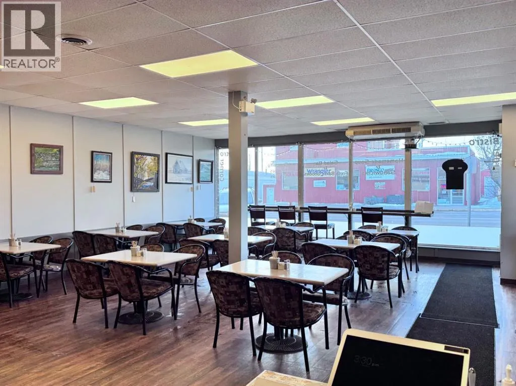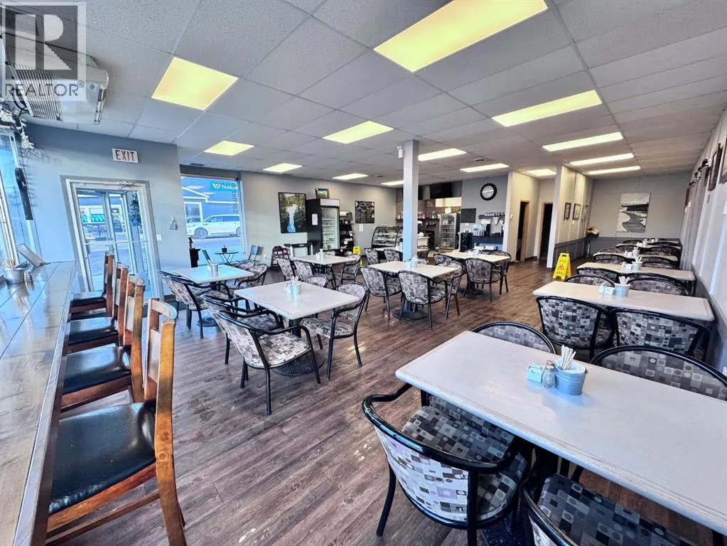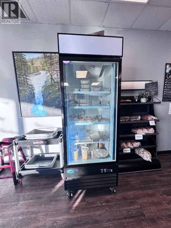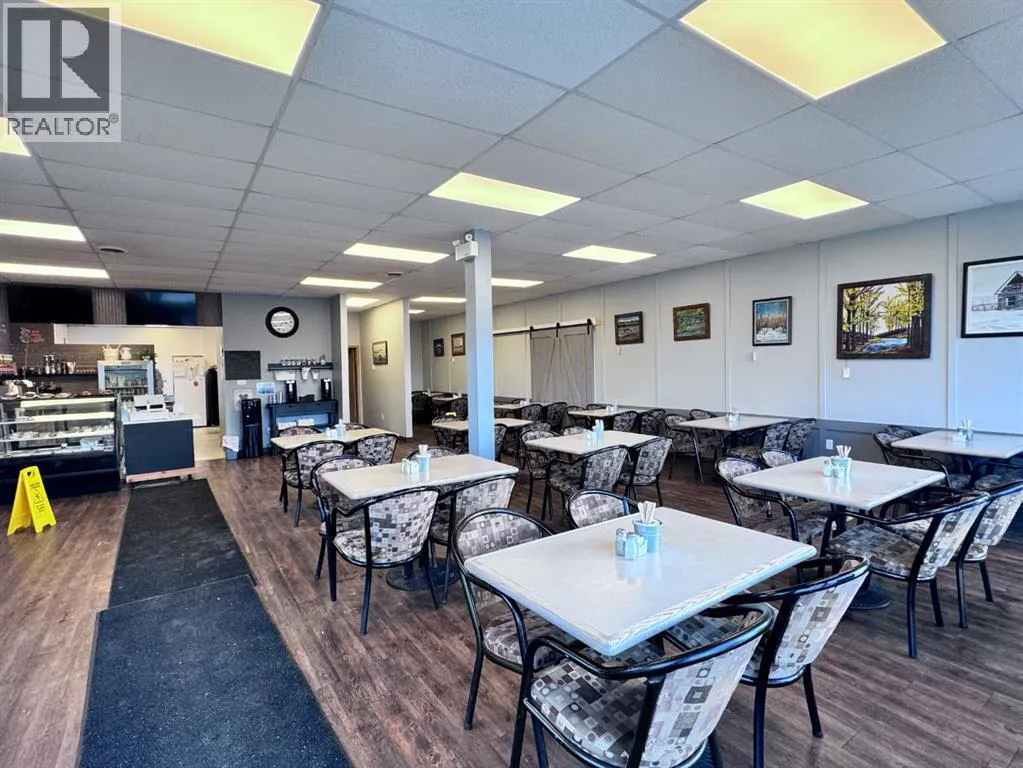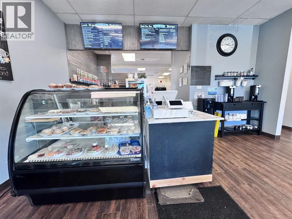 High-visibility commercial lease opportunity in the heart ofdowntown Rimbey. This well-located corner unit offers approximately 2,153 sq.ft. of usable space withexcellent street exposure and strong foot and vehicle traffic. Features include a front service area, prepspace, storage, walk-in traffic access, large display windows, and rear access. Highlights include aprime downtown corner location, flexible layout, modern interior, updated furnace, overhead heater,newer hot water tank, air conditioning, espresso station, large refrigerated display case, andprofessional kitchen equipment. A turnkey commercial space suitable for a variety of business uses.Immediate possession available (id:27476)