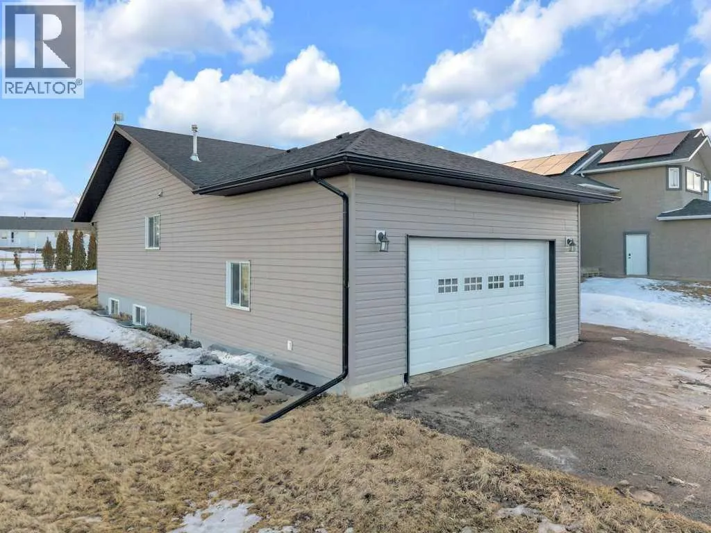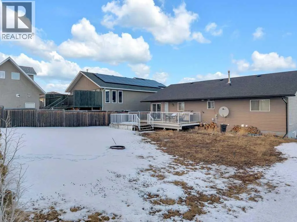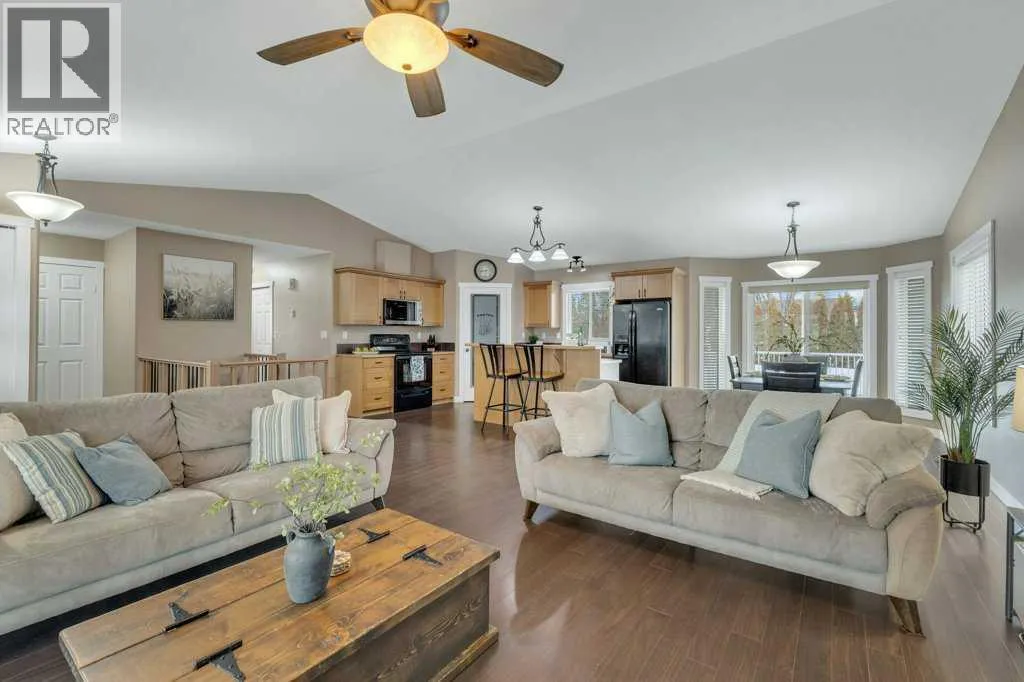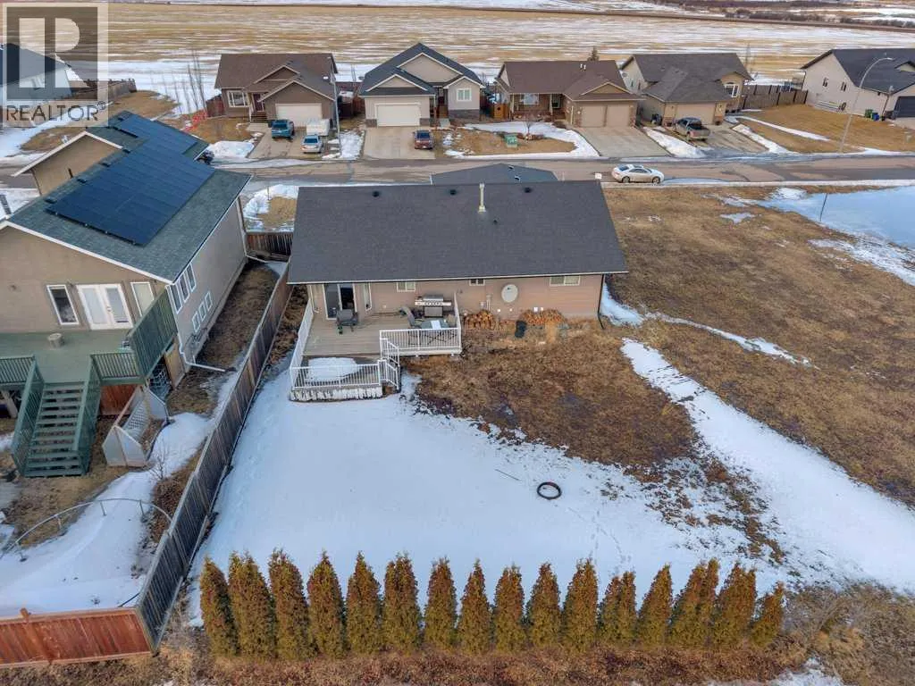 Welcome to your new home on a family-friendly avenue in Rimbey!This well-designed 4-bed, 3-bath bungalow with a heated attached garage offers space, comfort, and thoughtful layout throughout.Step inside to an open-concept kitchen, dining, and living area highlighted by vaulted ceilings that create an airy, spacious feel. From the dining area, patio doors lead to a large back deckâperfect for barbecues, entertaining, or simply relaxing in your backyard retreat.Enjoy the convenience of main-floor laundry tucked neatly behind double doors, and easy access to the main 4-piece bathroom directly from the garageâideal for busy family life. Down the hall, a generous bedroom sits opposite the expansive primary suite, complete with a luxurious ensuite featuring a large jacuzzi tub and separate shower.The fully finished basement continues to impress with two additional bedrooms, another full bathroom, a massive family or recreation room, and plenty of storage space for all your needs.This home is crafted for comfortable, everyday living in a warm, welcoming community. Discover life in Rimbeyâwhere small-town charm meets modern convenience. (id:27476)