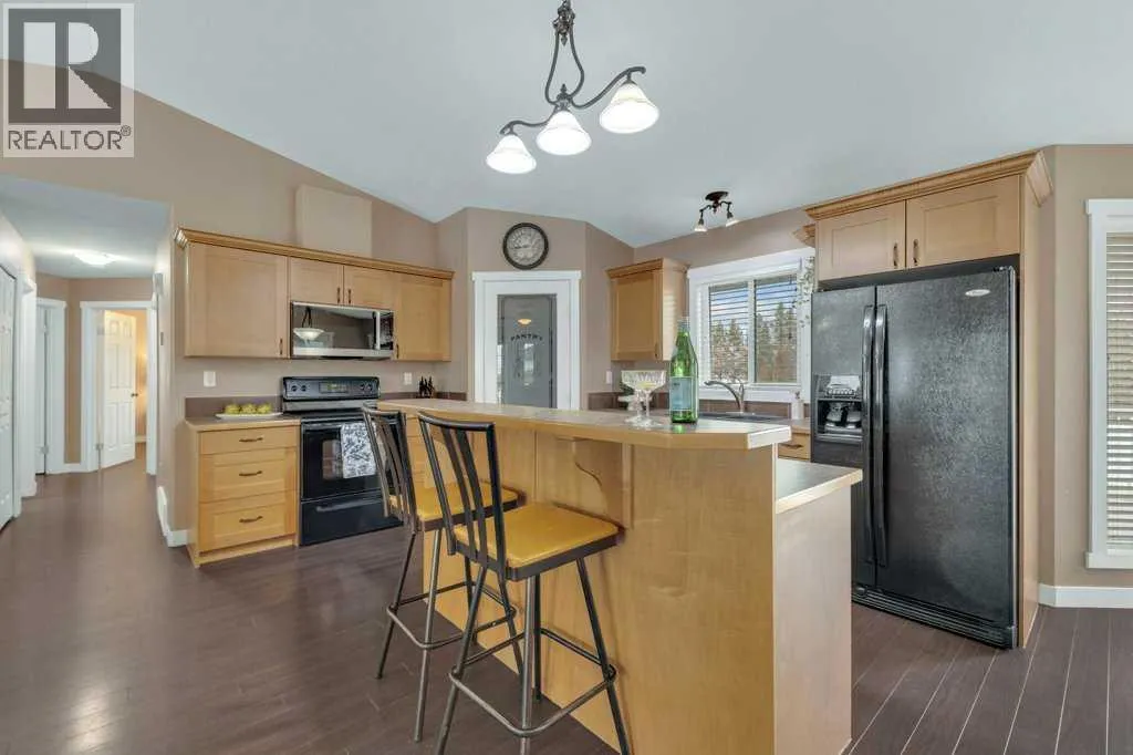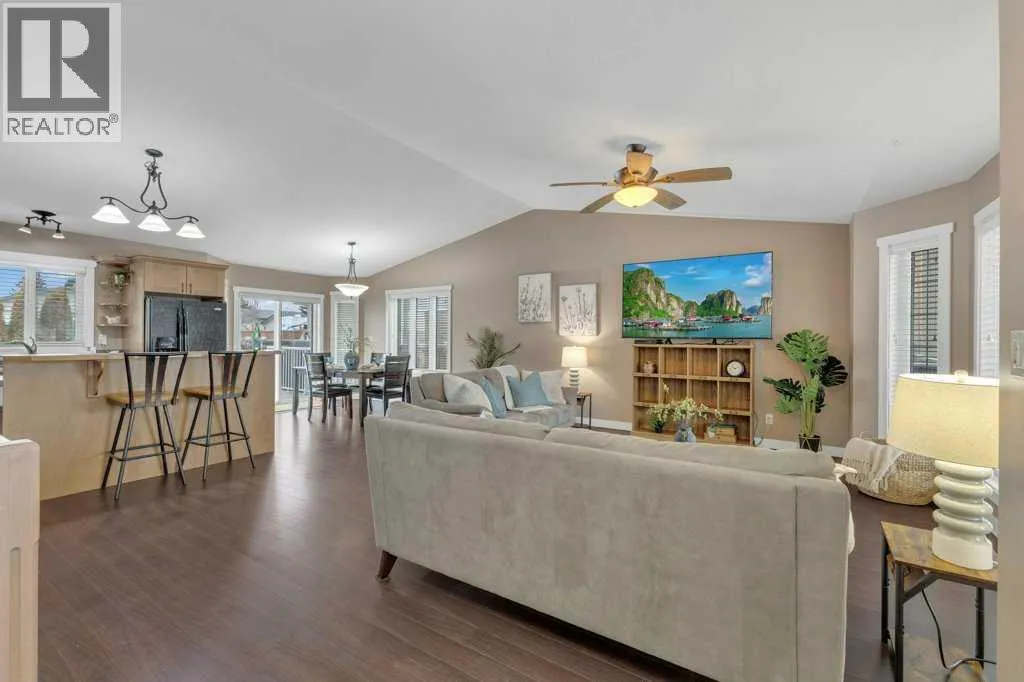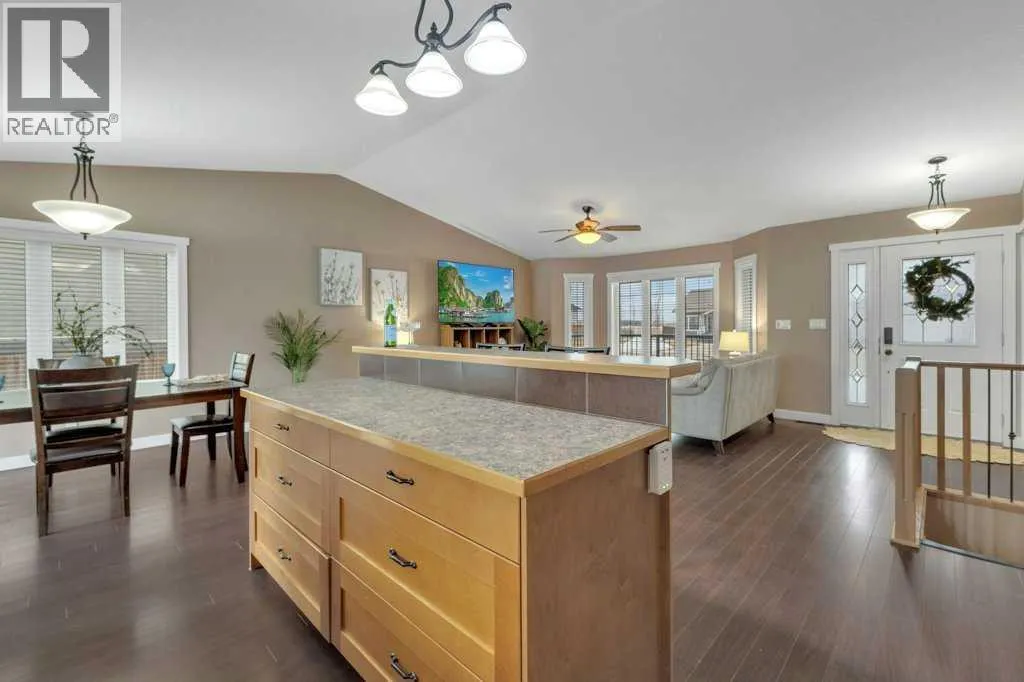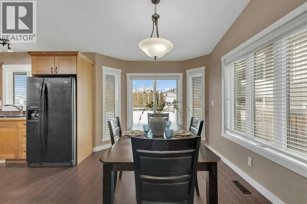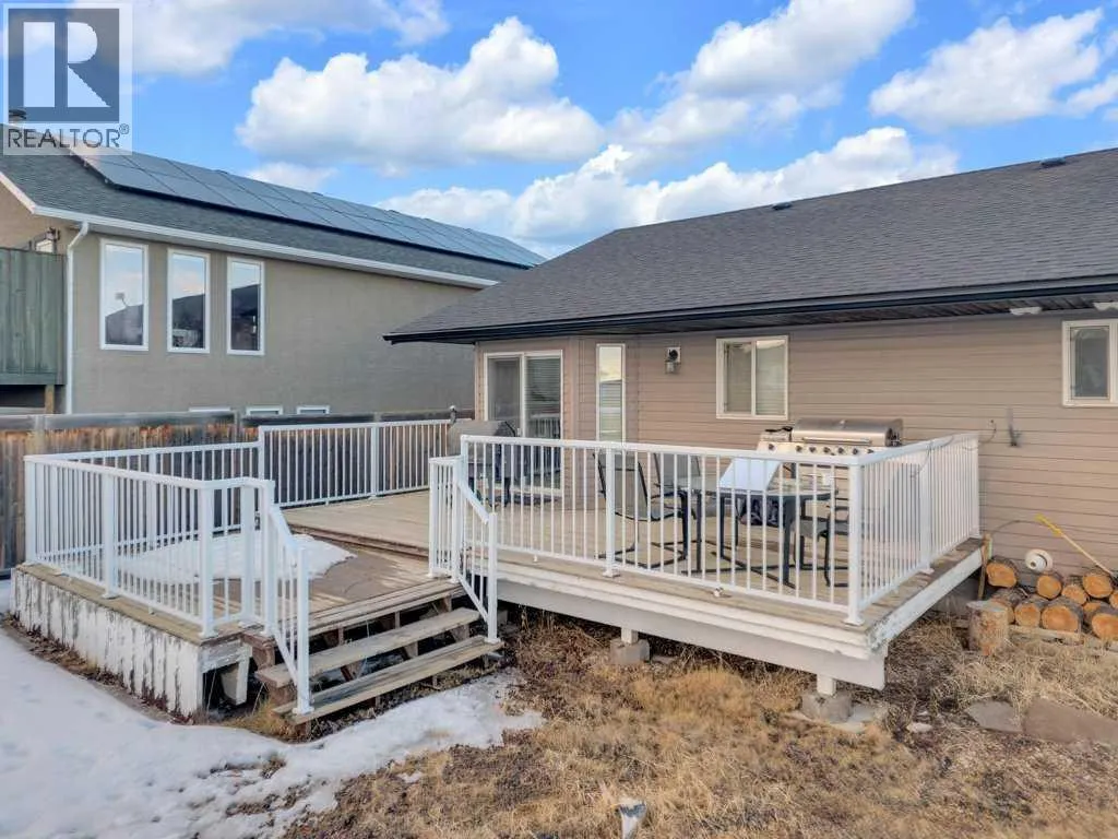 Welcome to your new home on a family-friendly avenue in Rimbey!This well-designed 4-bed, 3-bath bungalow with a heated attached garage offers space, comfort, and thoughtful layout throughout.Step inside to an open-concept kitchen, dining, and living area highlighted by vaulted ceilings that create an airy, spacious feel. From the dining area, patio doors lead to a large back deckâperfect for barbecues, entertaining, or simply relaxing in your backyard retreat.Enjoy the convenience of main-floor laundry tucked neatly behind double doors, and easy access to the main 4-piece bathroom directly from the garageâideal for busy family life. Down the hall, a generous bedroom sits opposite the expansive primary suite, complete with a luxurious ensuite featuring a large jacuzzi tub and separate shower.The fully finished basement continues to impress with two additional bedrooms, another full bathroom, a massive family or recreation room, and plenty of storage space for all your needs.This home is crafted for comfortable, everyday living in a warm, welcoming community. Discover life in Rimbeyâwhere small-town charm meets modern convenience. (id:27476)