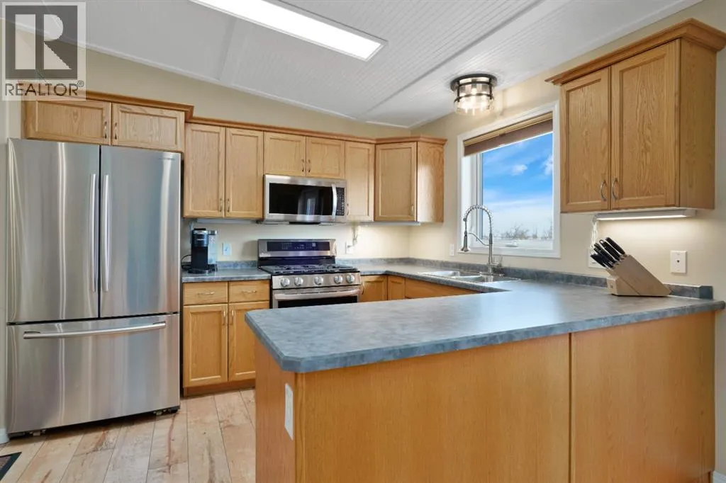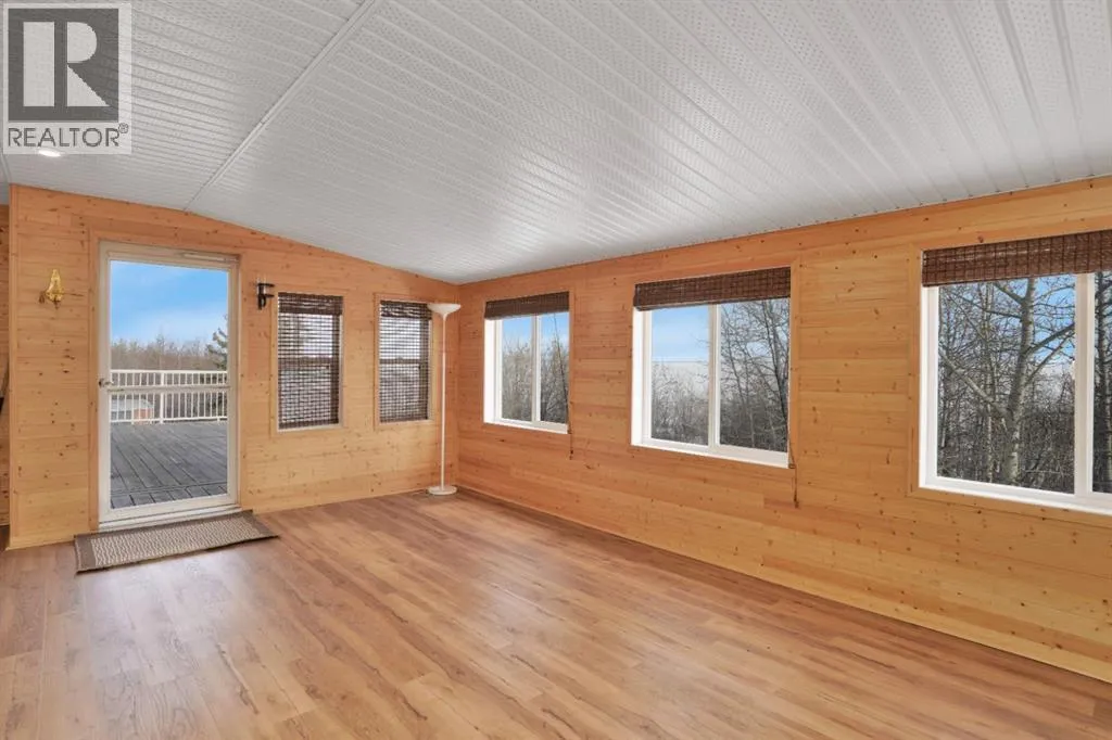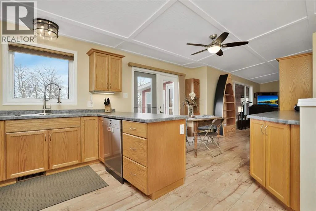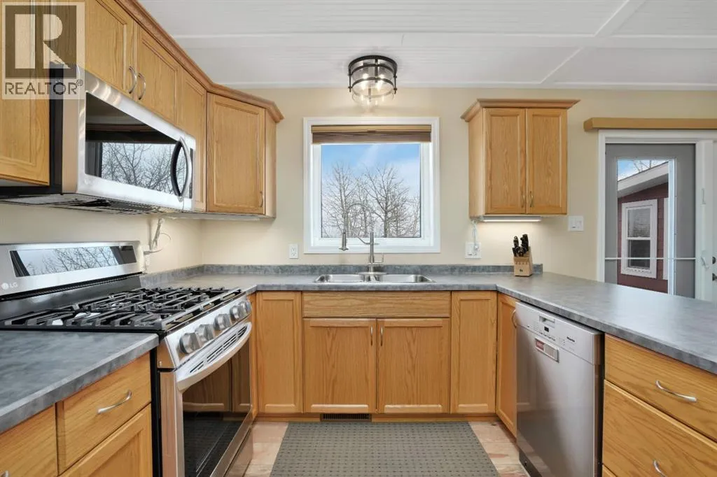 This beautifully designed 4-bedroom, 3-bathroom walkout bungalow offers the perfect balance of privacy, comfort, and lake-focused living. With over 2,000 sq ft of finished living space, the home is well suited for year-round use or as a seasonal retreat to enjoy in every season. The open-concept main floor is bright and inviting, featuring a modern kitchen with updated appliances including a gas stove, and seamless flow into the dining and living areas. The spacious primary bedroom includes a private 3-piece ensuite, while a second bedroom, full bathroom with jetted tub, and main floor laundry add everyday convenience. A standout feature of the home is the 3-season room added in 2017, offering a comfortable space to relax or entertain while staying protected from the elements. From here, step out onto the large deck ideal for outdoor dining, complete with a natural gas BBQ hookup and peaceful views of the surrounding landscape. The fully finished walkout basement completed in 2014 provides excellent guest accommodation with two additional bedrooms, a 3-piece bathroom, and a spacious family room with patio doors leading to a lower outdoor living area. In-floor heating, recessed lighting, and durable epoxy flooring enhance both comfort and durability on this level. Additional highlights include central air conditioning, a double heated garage, and a 6,500-watt Generac generator for added peace of mind. Ideally located just steps from the water and across from the village centre, residents enjoy easy access to the playground, snack shack, basketball, tennis and pickleball courts, and the community hall. The marina and boat launch are only minutes away, making lake access simple and convenient year-round. The property is approximately 20 minutes from Stettler, one hour from Red Deer, and two hours from Calgary or Edmonton. With quick possession available, this is a turnkey opportunity to enjoy everything Buffalo Lake has to offer, from boating and swimming to fishing an d winter recreation. Whether youâre searching for a full-time residence, a family getaway, or a retirement retreat, this home delivers a relaxed lake lifestyle in a well-established community. (id:27476)