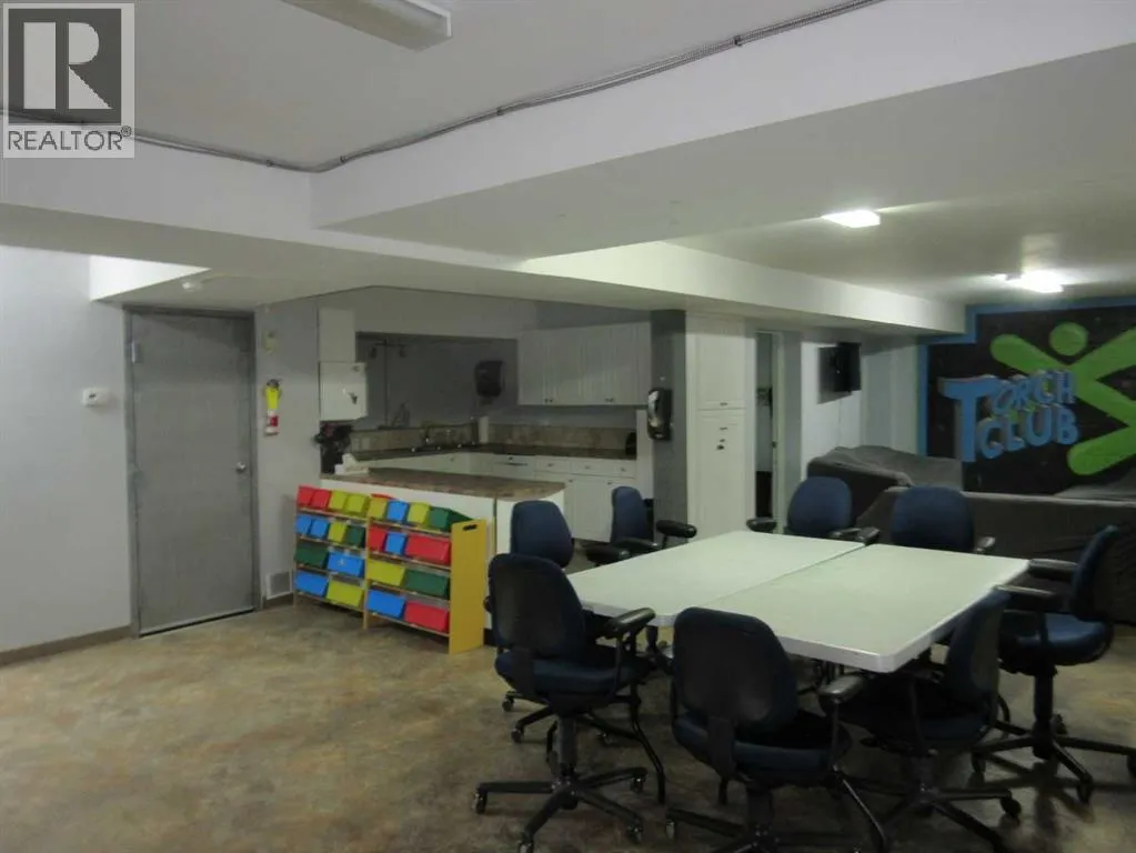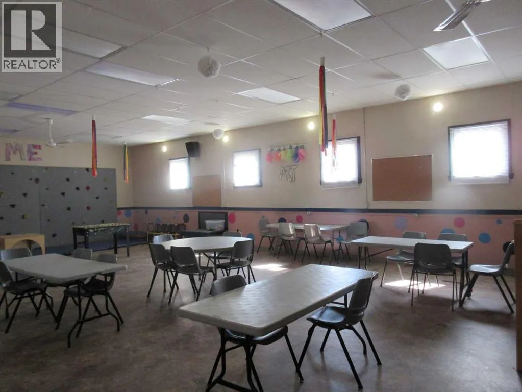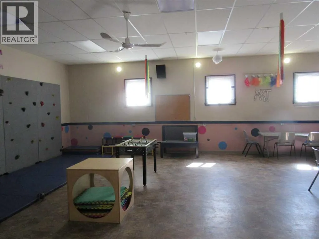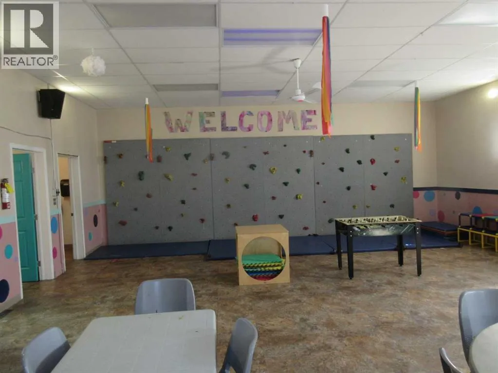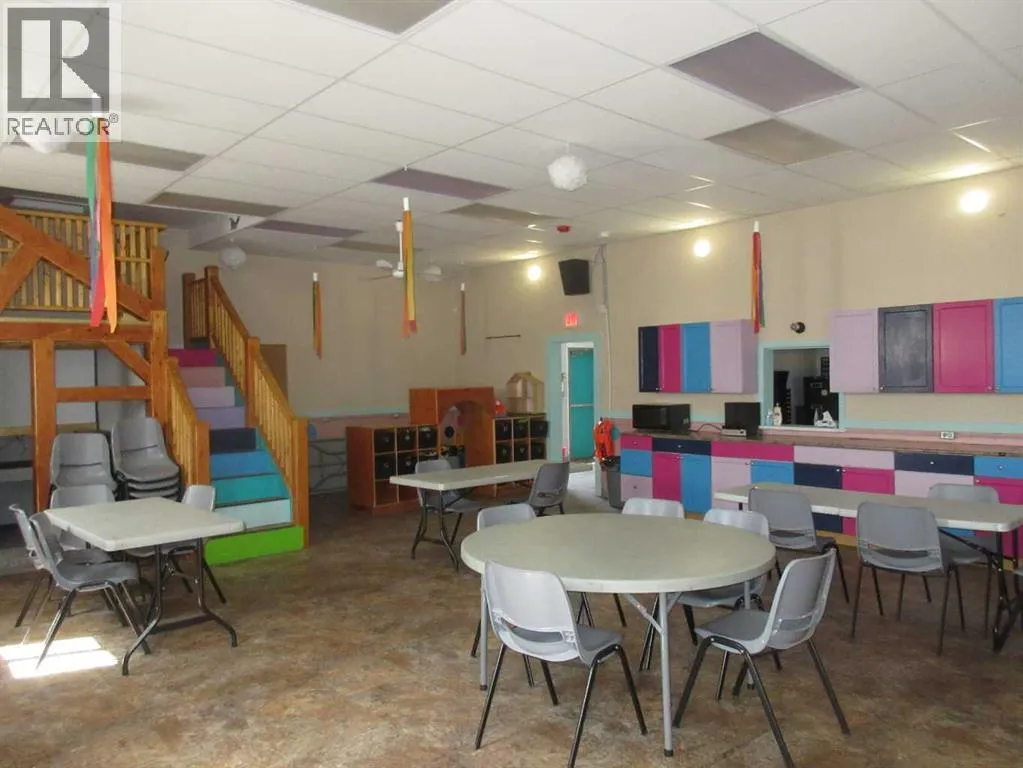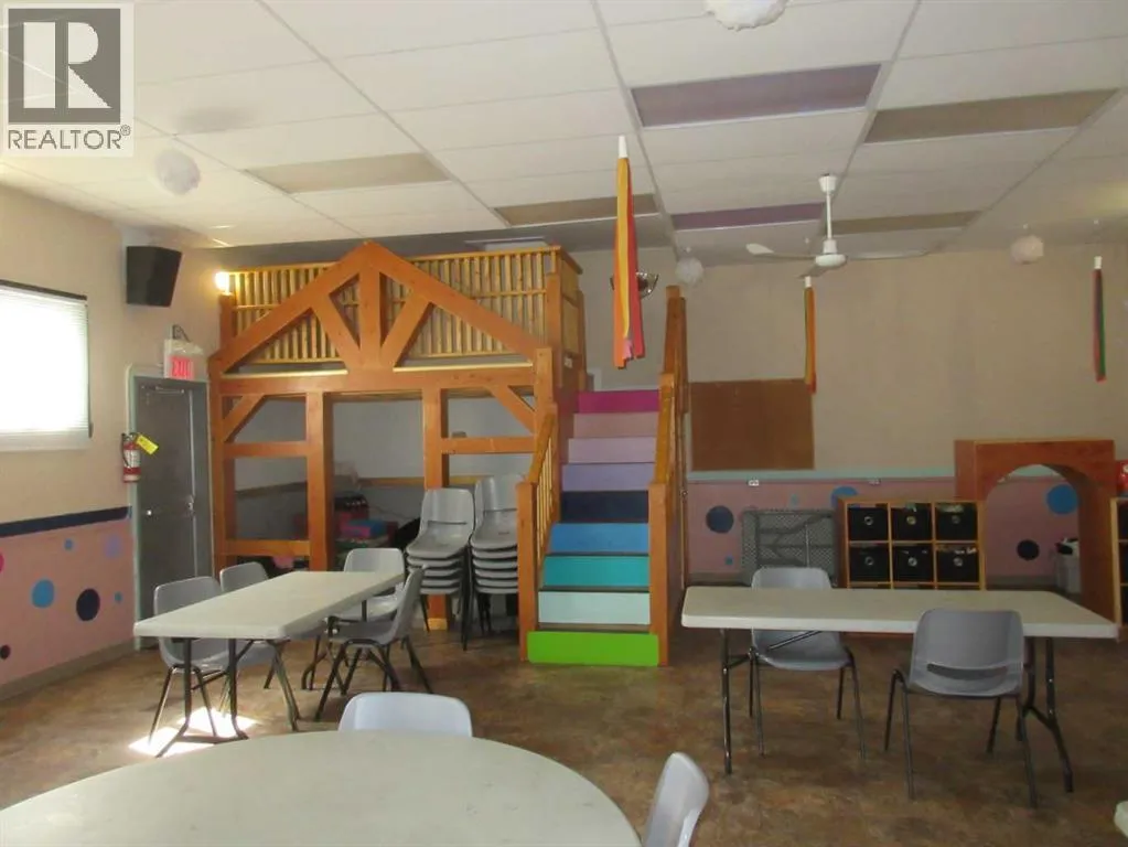 Over 1990 sq.ft. building located in the heart of downtown Rocky Mountain House. Zoned core commercial allows endless opportunities from retail, business, government services to childcare as previously used. Large open main floor lets you build your dream area. Large recreation area on main floor with two washroom facilities and small administration area. Lower level has kitchen, rec room, 2 washrooms, storage and offices. Back of the lot is fenced and includes parking pad for employees. Upgrades include newer furnace and shingles. (id:27476)