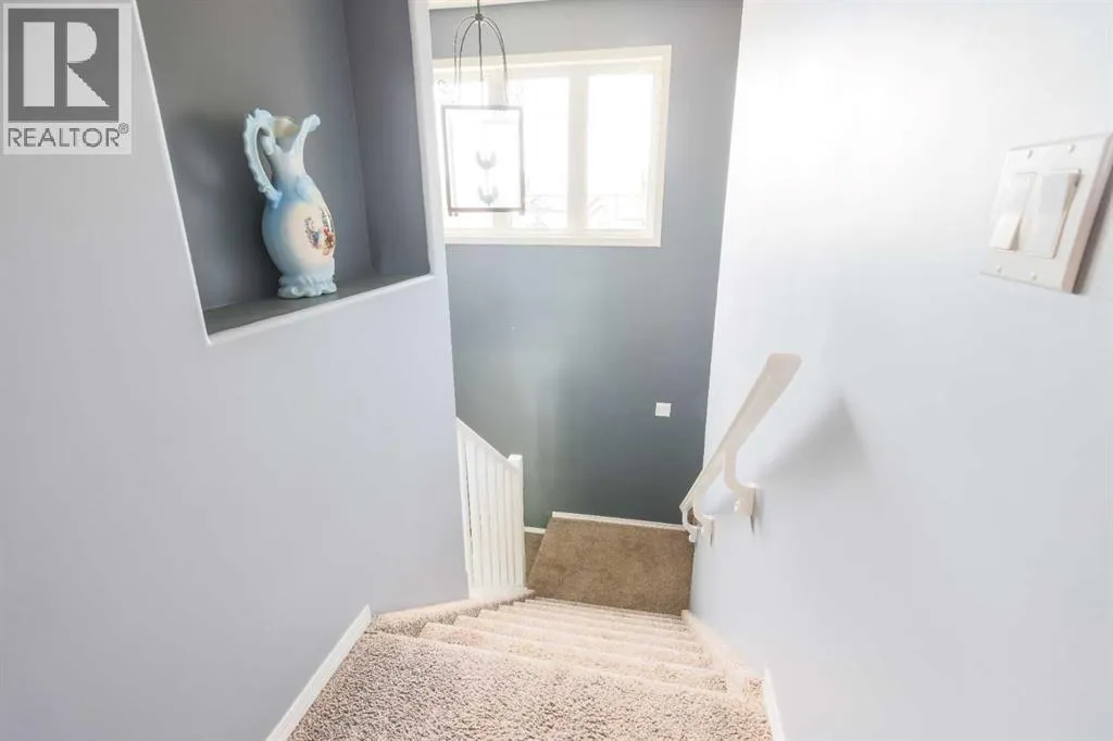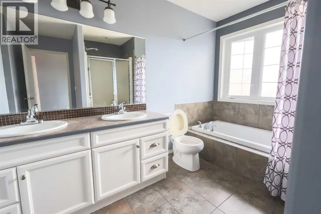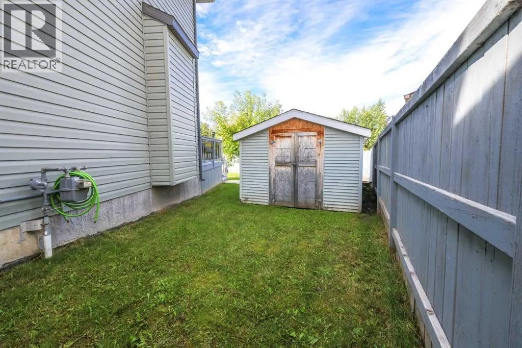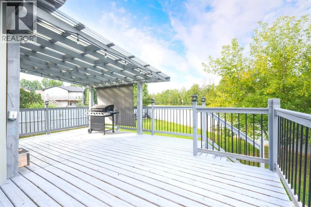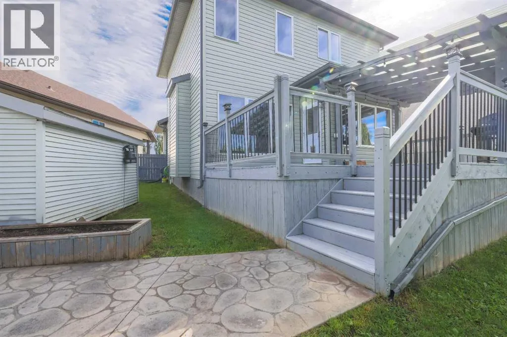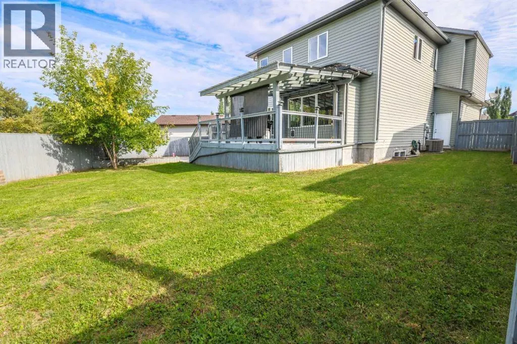 Welcome to this executive family home on the North end of town. This 2006 2 storey home with 4 bedrooms all on the second level, including a five piece main bath and a large 5 piece ensuite in the master bedroom with vaulted ceilings and double closets. On the main floor you will find a large kitchen with granite counter tops, stainless steel appliances, an island, a corner pantry, and large windows to let that natural light in. Plus garden doors lead out to your West facing deck and large fenced back yard. The living room boast of hardwood flooring and a beautiful feature wall. The developed basement provides a large family room, a den/office space and a full bathroom. Outside you will find a large RV pad, concrete patio and a storage shed, plus a heated double attached garage. (id:27476)