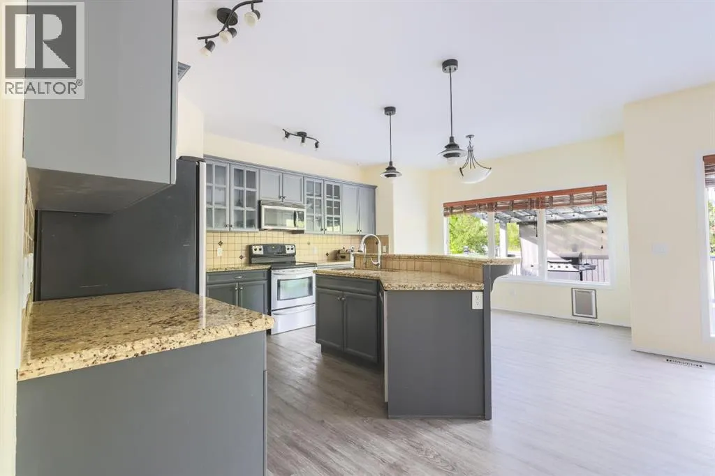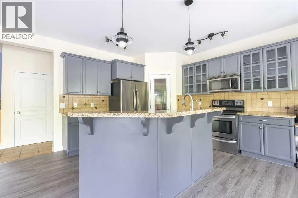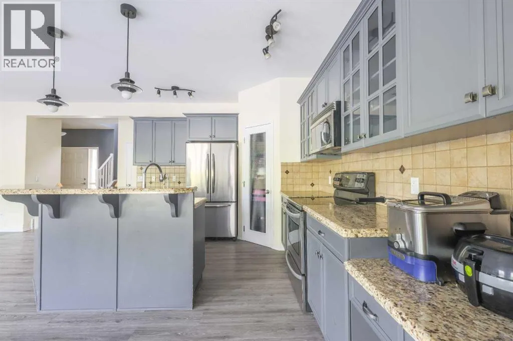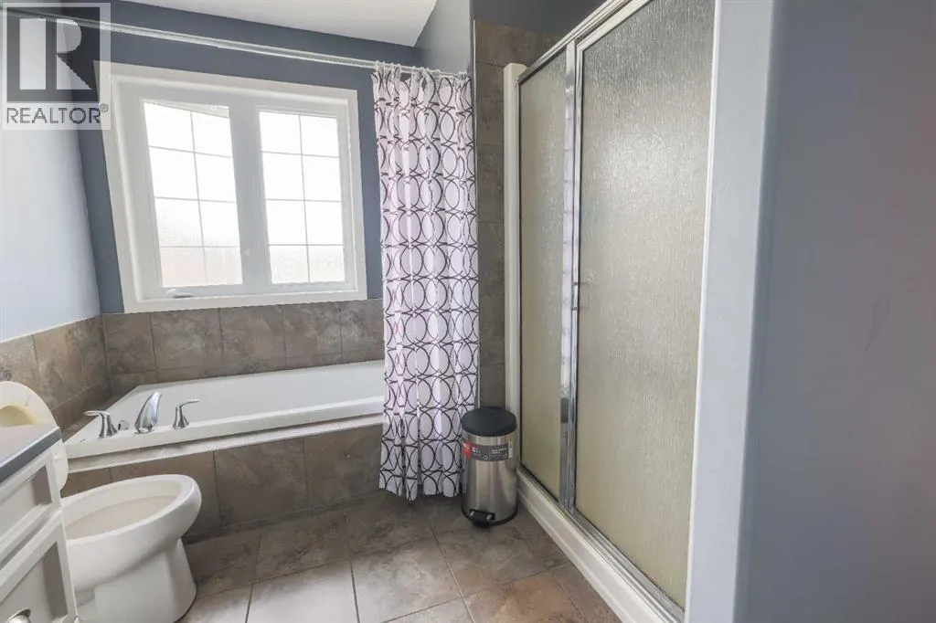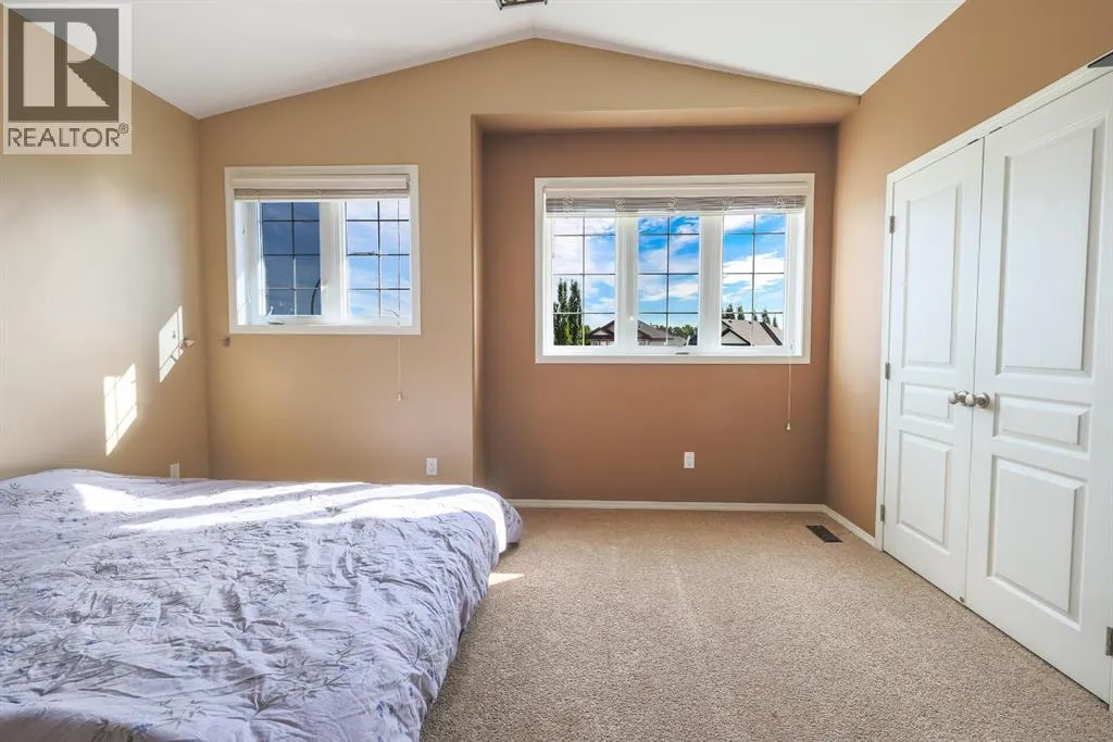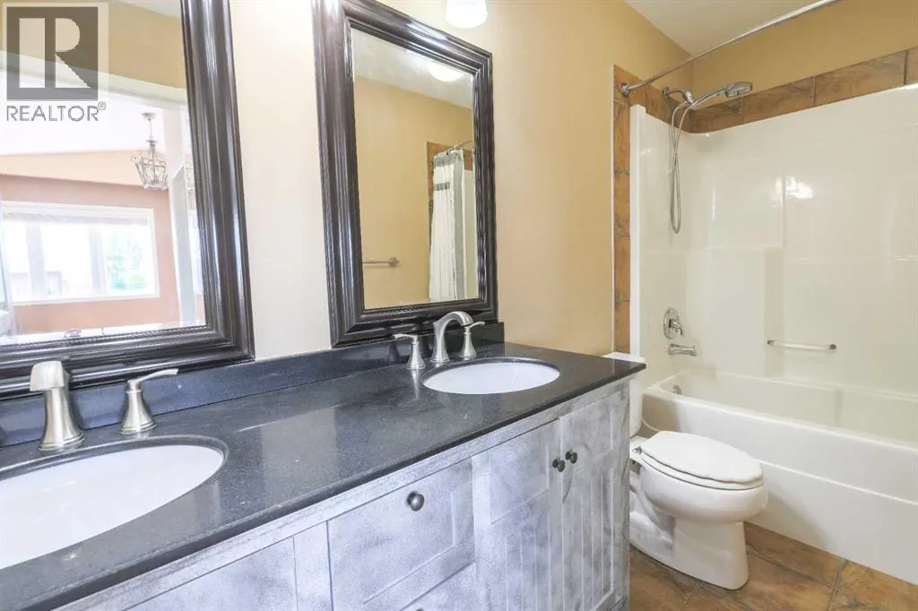 Welcome to this executive family home on the North end of town. This 2006 2 storey home with 4 bedrooms all on the second level, including a five piece main bath and a large 5 piece ensuite in the master bedroom with vaulted ceilings and double closets. On the main floor you will find a large kitchen with granite counter tops, stainless steel appliances, an island, a corner pantry, and large windows to let that natural light in. Plus garden doors lead out to your West facing deck and large fenced back yard. The living room boast of hardwood flooring and a beautiful feature wall. The developed basement provides a large family room, a den/office space and a full bathroom. Outside you will find a large RV pad, concrete patio and a storage shed, plus a heated double attached garage. (id:27476)