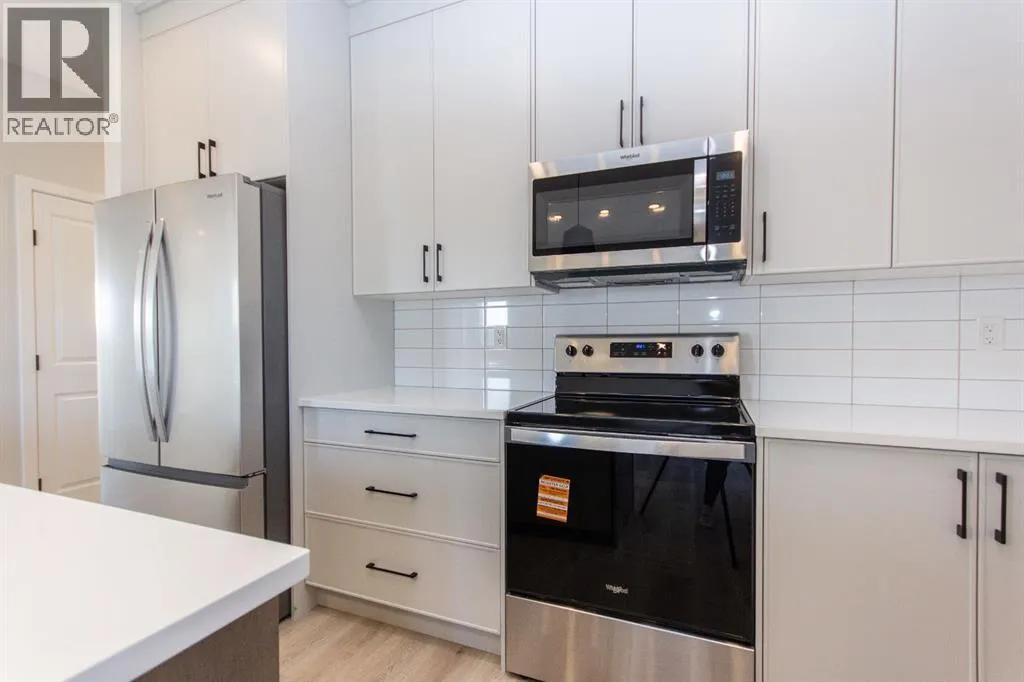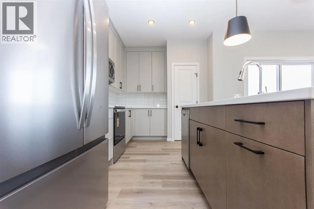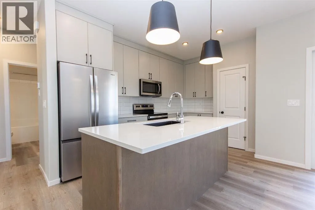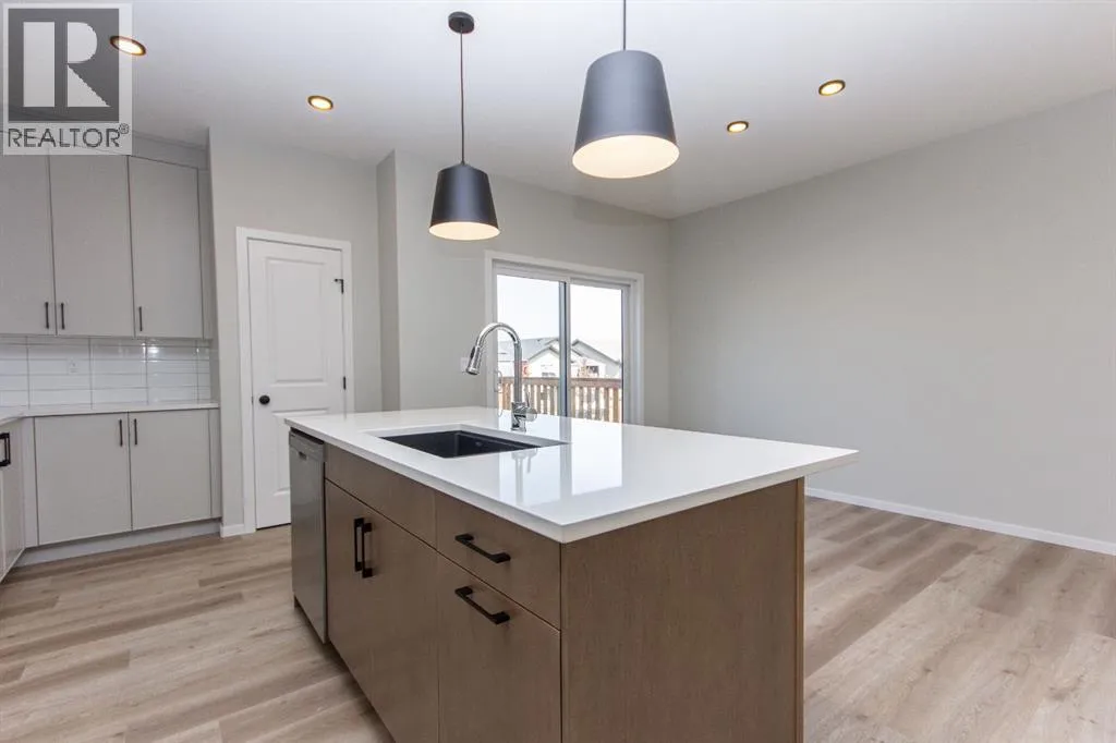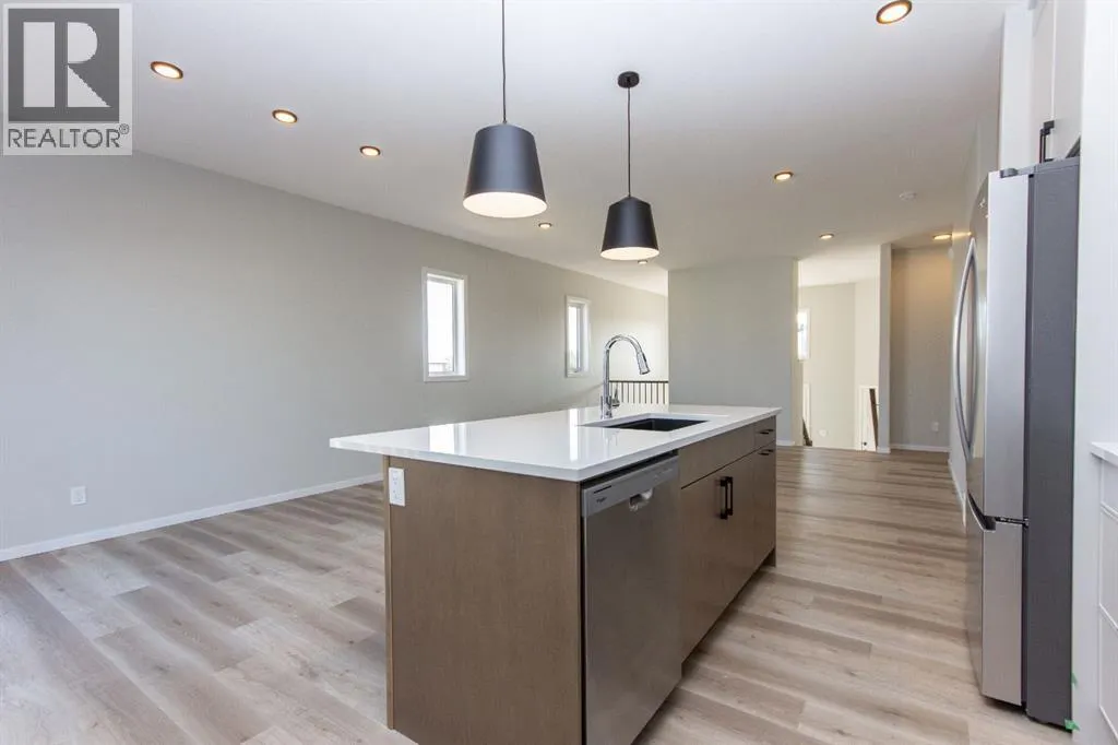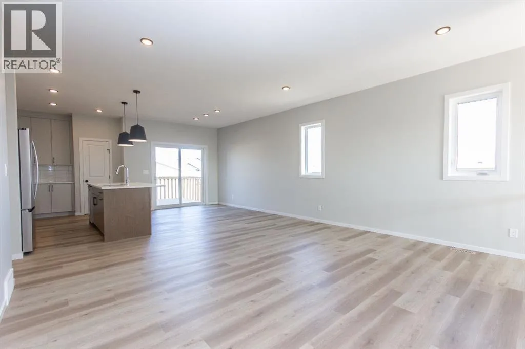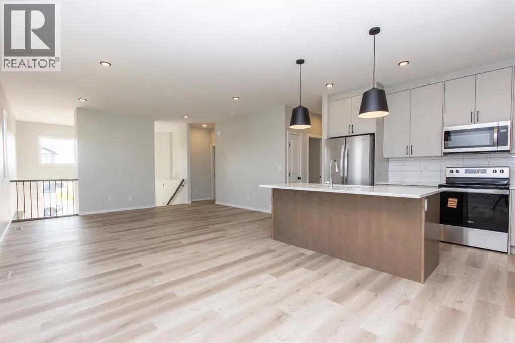Be the first owner of this beautiful brand new build by Laebon Homes in Creekside! This 1,358 sq ft Montego floor plan offers 9â main floor ceilings, low maintenance vinyl plank flooring, and modern finishes throughout. A spacious living and dining room area are open to a modern kitchen with raised cabinetry, quartz counter tops, stainless steel appliances, pantry, and an island with eating bar. The master suite features a private 4 pce ensuite and walk in closet, while two more nicely sized kidsâ bedrooms share a 4 pce bathroom that completes the main floor. The attached garage is insulated, drywalled, and taped. If you need more space, the builder can complete the basement development for you, and allowances can also be provided for blinds, and a washer and dryer to make this a completely move in ready package. Front sod and rear topsoil are included in the price and will be completed as weather permits. 1 year builder warranty and 10 year Alberta New Home Warranty are included. Taxes have yet to be assessed. Immediate possession is available! (id:27476)