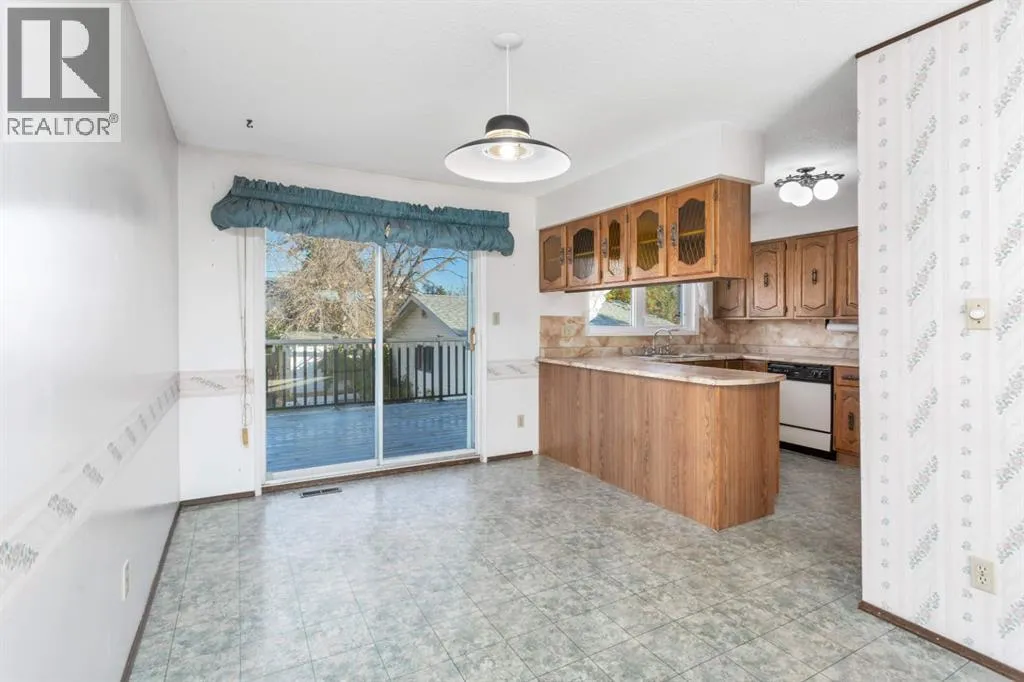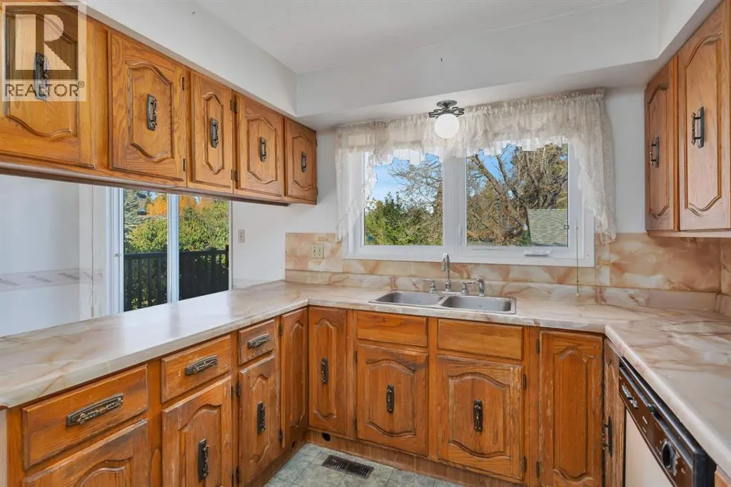 Bi-level family home in a quiet North End cul-de-sac, close to schools, parks, and playgrounds. The main floor has a bright living room with a big south-facing window, a functional kitchen, and patio doors off the dining room that lead to an updated back deck, great for BBQs and relaxing outside. There are 3 bedrooms upstairs, including the primary with its own 3-piece ensuite, plus a full 4-piece main bath. Downstairs is finished with a large family room featuring a cozy gas fireplace, two more bedrooms, a 2-piece bathroom, and a laundry area with a new dryer. There's also handy walk-up access to the backyard. Most windows have been updated, and all the carpets were just professionally cleaned. The fenced yard includes a double detached garage with new shingles and a good-sized storage shed. Quick possession available...move in before the snow flies! (id:27476)