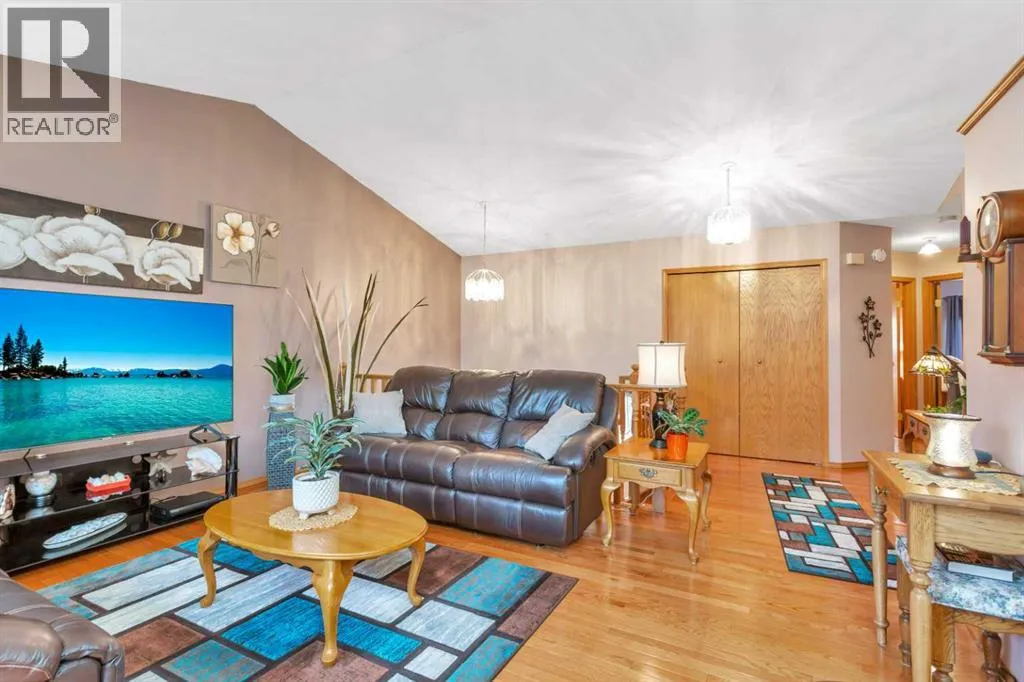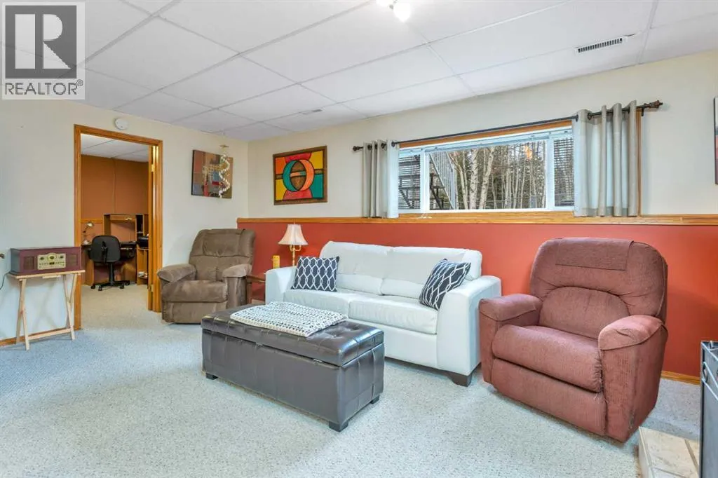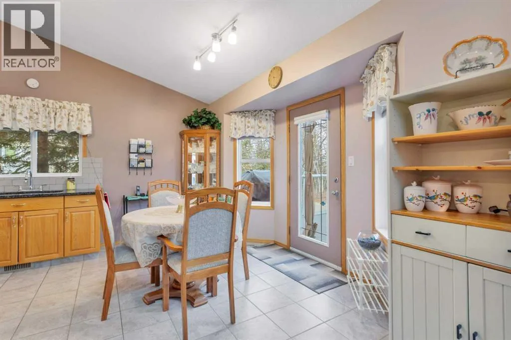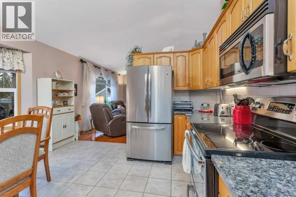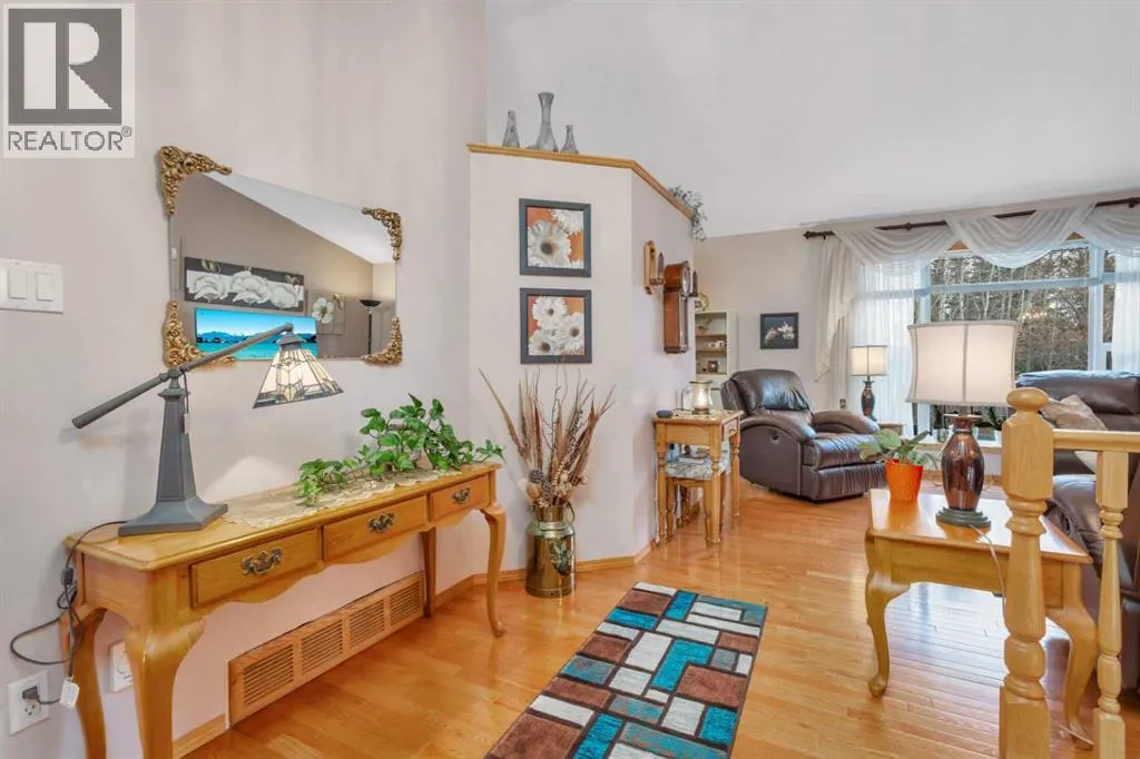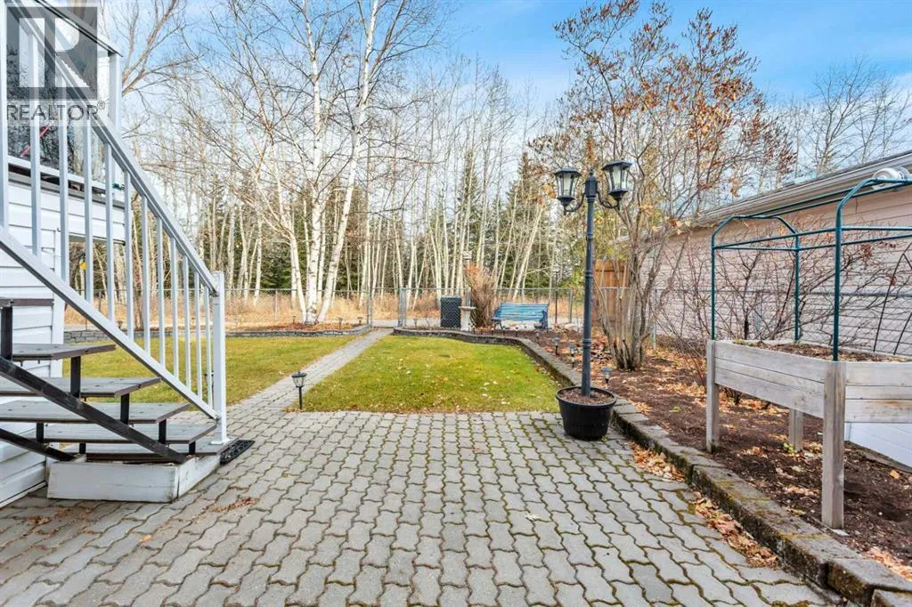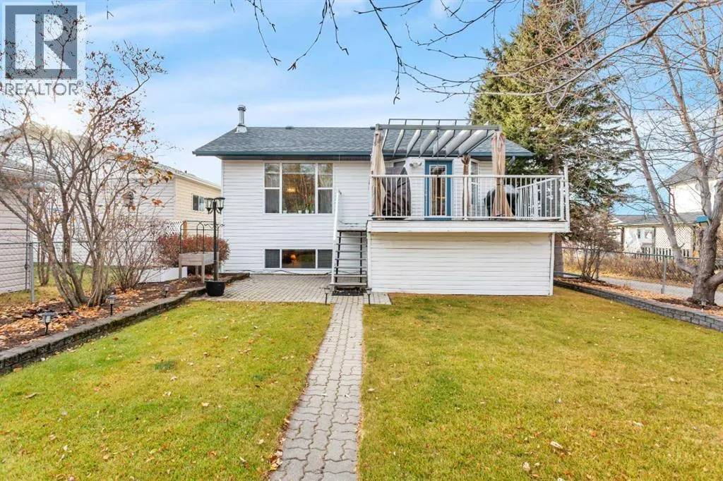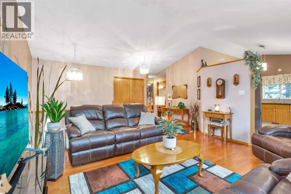 Welcome to the delightful bi-level home at the north end of Rocky Mountain House. This home brings out the cozy everywhere through out the home. Cozy yet open concept style that flows from the Dining room into the Living room and to the front entry all with the overhead vaulted ceiling. Here is a home that has been pristinely kept by still the original owners, non pet, non smoking or children raised in this home. Very well maintained inside and outside the home.. Large vinyl windows through out the main floor and basement level. Main floor has the Primary bedroom with 2 pcs. en-suite, 2 other bedrooms, full sized bathroom, large kitchen- dining combo. Dining and living room offer full view of the back yard with no neighbors behind or on the one side of the home. The Living room with its hardwood floors that flow down the staircase of the front entry.. Basement presents walk out to the garage, 3 pcs. bathroom/laundry room, 1 bedroom, , cozy family room with wood burning insert fireplace, and the ceiling is suspended ceiling. Siding, roof shingles replace 10-12 yrs ago, hot water tank replaced April 2021, all flooring on main floor replaced in 2008. The dining room flows out to a 8' by 14 ft composite deck with a gazebo on it. Truly a home to enjoy. Right by walking path and close to parks. (id:27476)