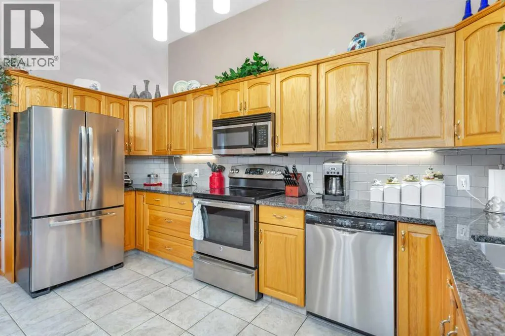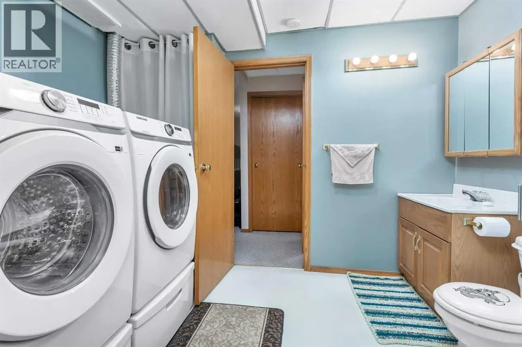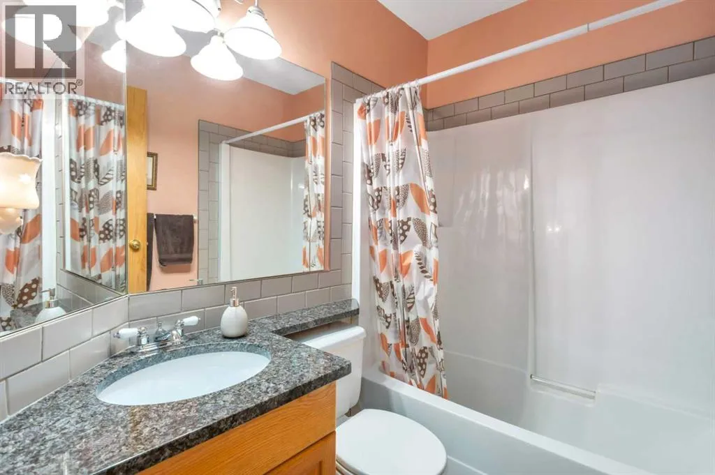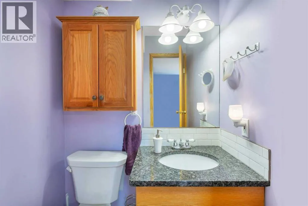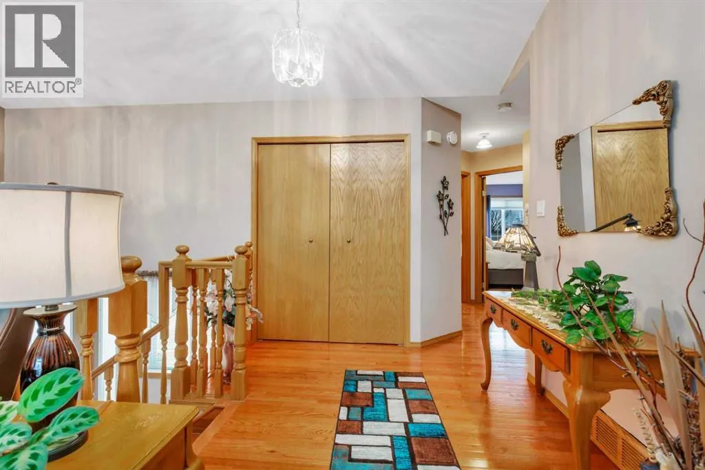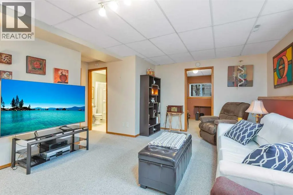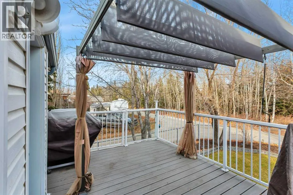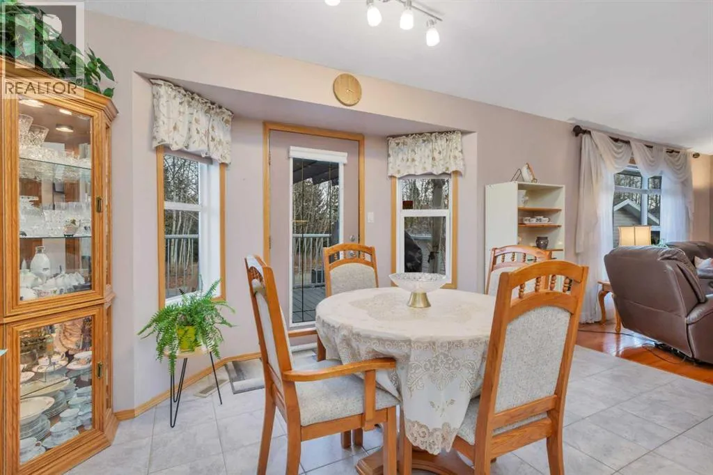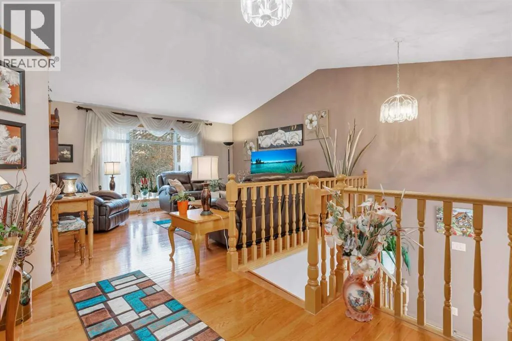 Welcome to the delightful bi-level home at the north end of Rocky Mountain House. This home brings out the cozy everywhere through out the home. Cozy yet open concept style that flows from the Dining room into the Living room and to the front entry all with the overhead vaulted ceiling. Here is a home that has been pristinely kept by still the original owners, non pet, non smoking or children raised in this home. Very well maintained inside and outside the home.. Large vinyl windows through out the main floor and basement level. Main floor has the Primary bedroom with 2 pcs. en-suite, 2 other bedrooms, full sized bathroom, large kitchen- dining combo. Dining and living room offer full view of the back yard with no neighbors behind or on the one side of the home. The Living room with its hardwood floors that flow down the staircase of the front entry.. Basement presents walk out to the garage, 3 pcs. bathroom/laundry room, 1 bedroom, , cozy family room with wood burning insert fireplace, and the ceiling is suspended ceiling. Siding, roof shingles replace 10-12 yrs ago, hot water tank replaced April 2021, all flooring on main floor replaced in 2008. The dining room flows out to a 8' by 14 ft composite deck with a gazebo on it. Truly a home to enjoy. Right by walking path and close to parks. (id:27476)