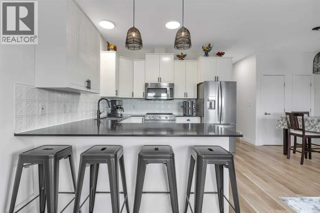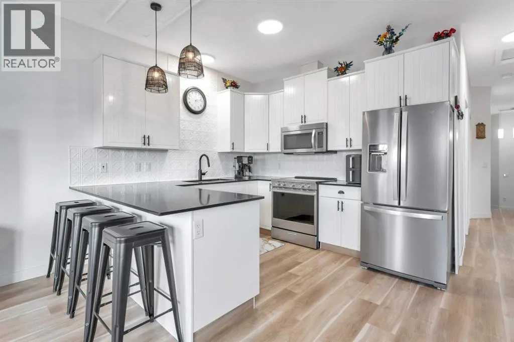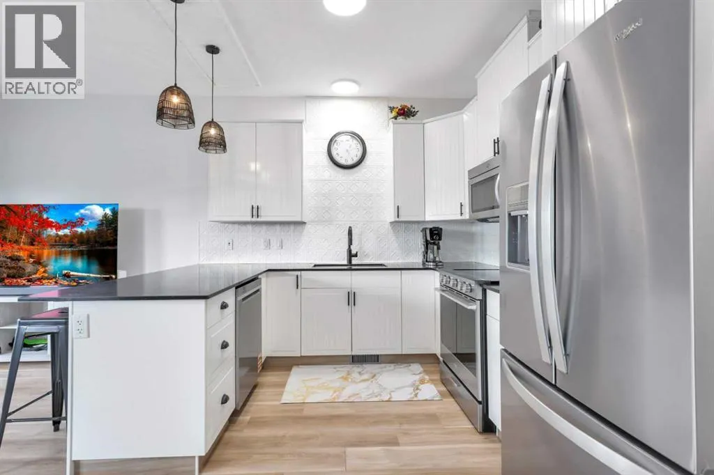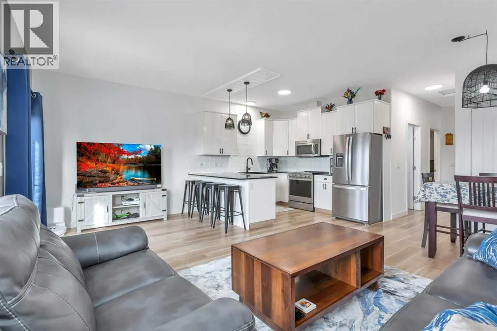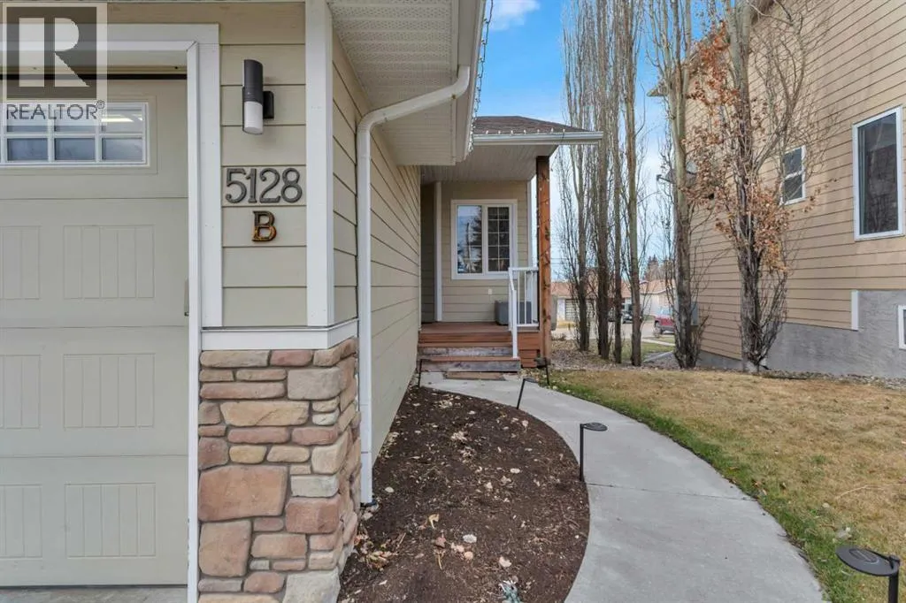 Welcome to this immaculate 2014 half-duplex located at 5128B 52 Street in Rocky Mountain House. Perfectly positioned with an east-facing front and west-facing backyard, this home offers beautiful panoramic mountain views from the main levelâincluding the living room, dining room, kitchen, and private balcony. Large windows throughout provide an abundance of natural light.This well-designed **bungalow** features a bright and open main floor with one spacious bedroom, a 4-piece bathroom with direct ensuite access, and an inviting open-concept living, dining, and kitchen area oriented to capture the stunning views. The main floor also includes laundry and convenient access to a single attached heated garage, which enters directly into the home.The fully developed walkout basement includes in-floor heating, a generous second living area, one additional bedroom, and an officeâideal for guests, hobbies, or remote work.Additional highlights include air conditioning, new stainless steel kitchen appliances, a new washer and dryer set, this property is in true turn-key conditionâready for you to move in and enjoy.A rare combination of comfort, low-maintenance living, and breathtaking sceneryâthis home is a must-see! (id:27476)