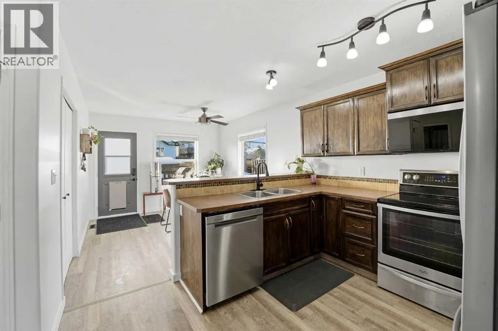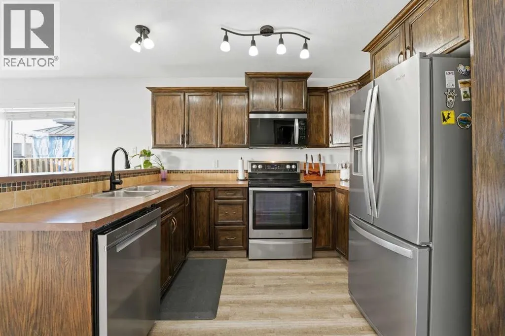 Welcome to this well-cared-for bilevel home located in a prominent, family oriented subdivision in Rocky Mountain House. Pride of ownership is evident throughout this 4 bedroom /2 bathroom home which is filled with natural light thanks to the large main floor windows. Recent updates include new vinyl plank flooring , baseboards and paint throughout all levels and rooms, along with newer high-end Whirlpool kitchen appliances. The shingles were replaced approximately 5 years ago, hot water tank in 2018 and the furnace had new thermostat, blower motor, and circuit board installed. The large fully fenced back yard offers plenty of space and features a built in dog house - perfect for your furry companions. There is plenty of room to build your dream garage in the back as there is parking for 3 + vehicles. Located close to parks, playgrounds, school bus service and all the amenities families need this move in ready home is an excellent opportunity for first time buyers looking to put down root in a welcoming community. (id:27476)