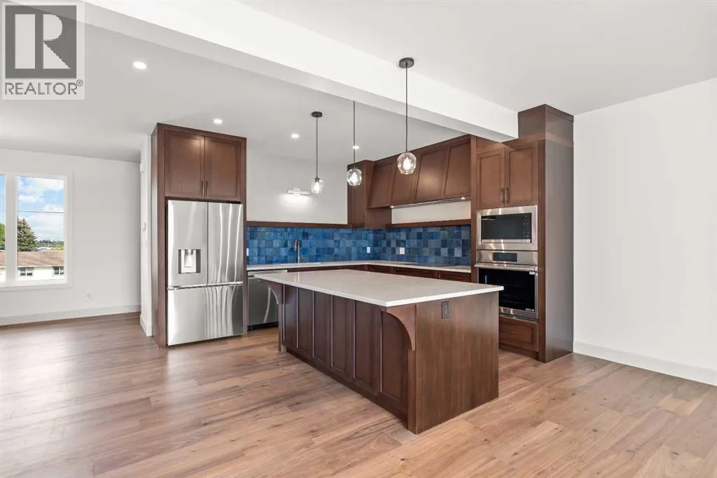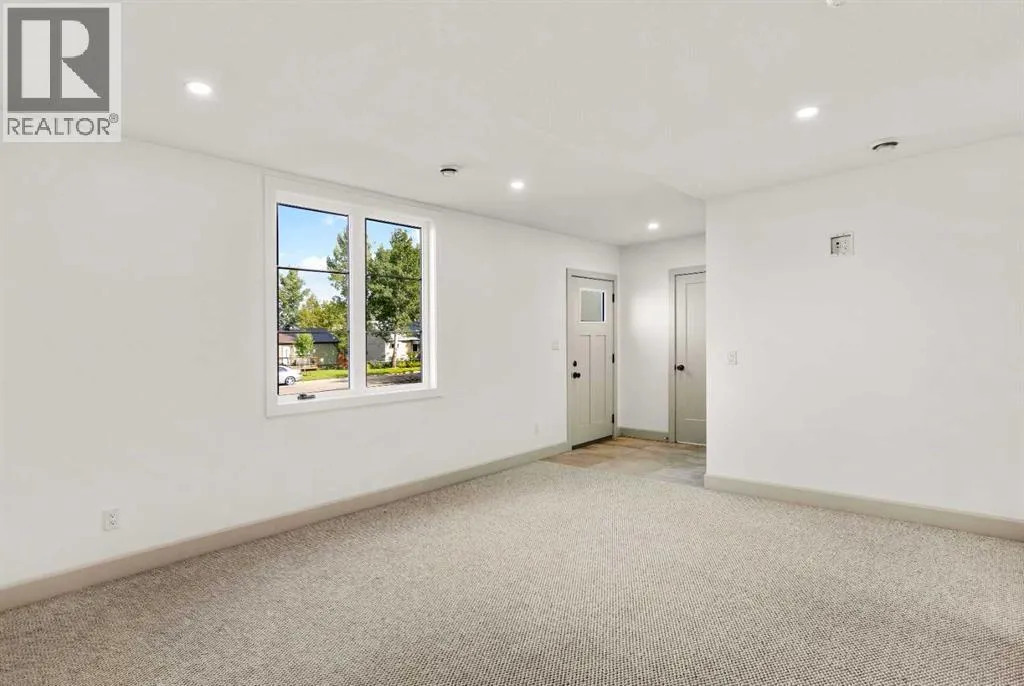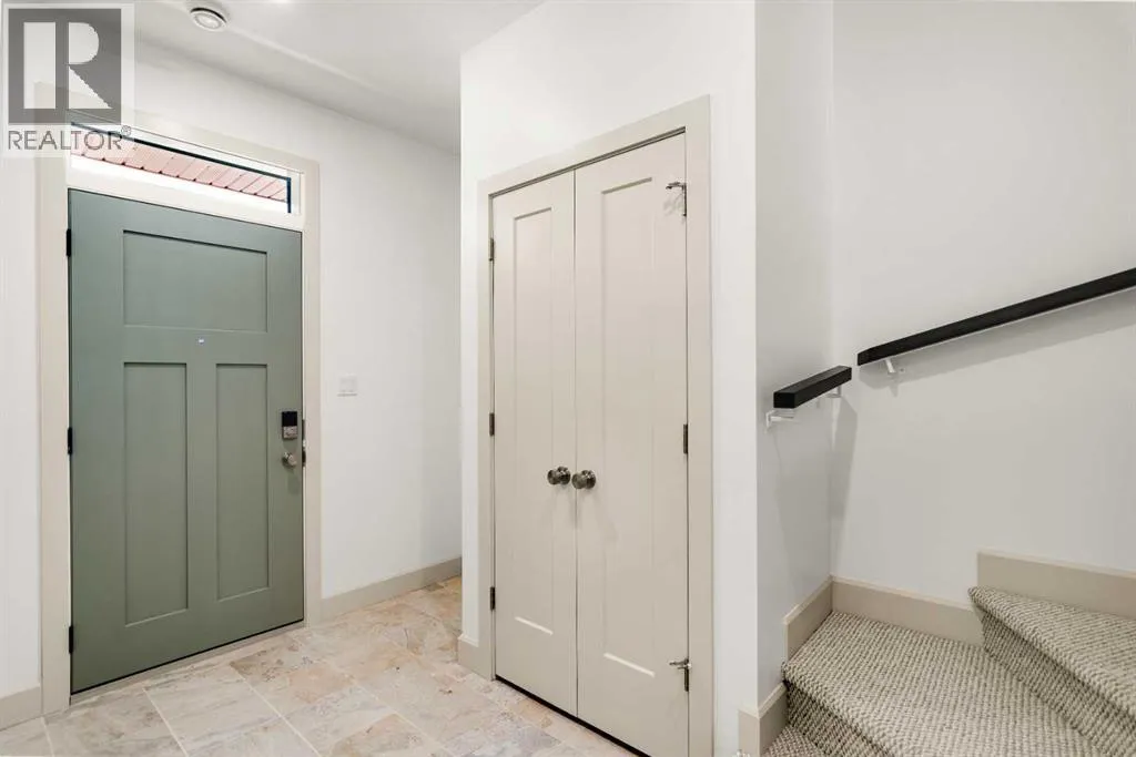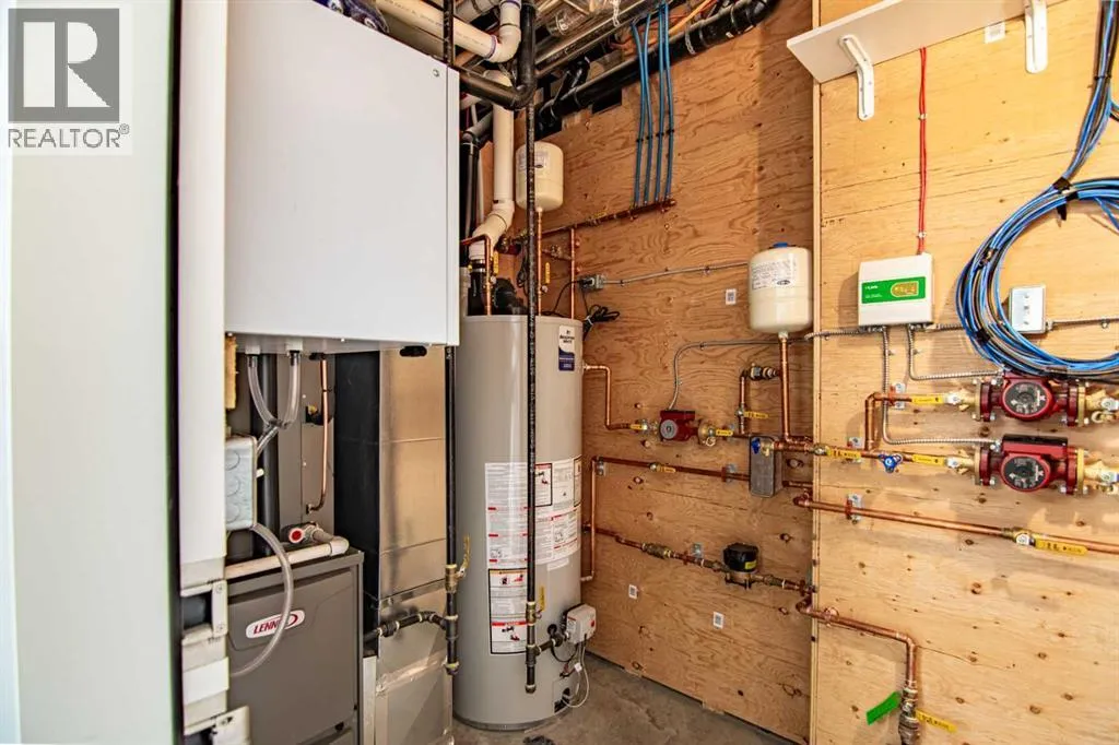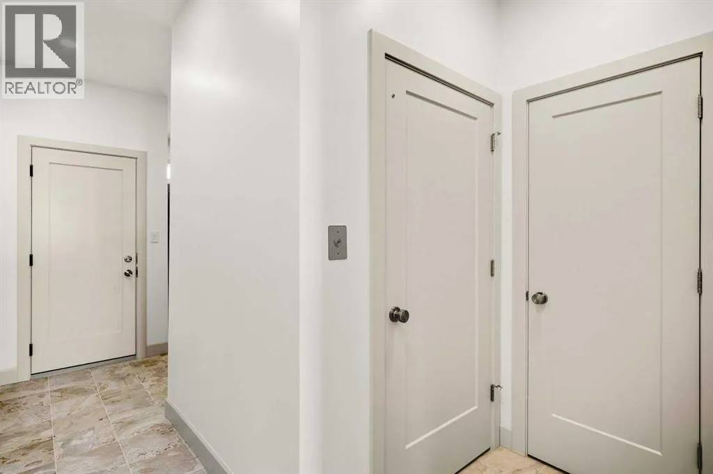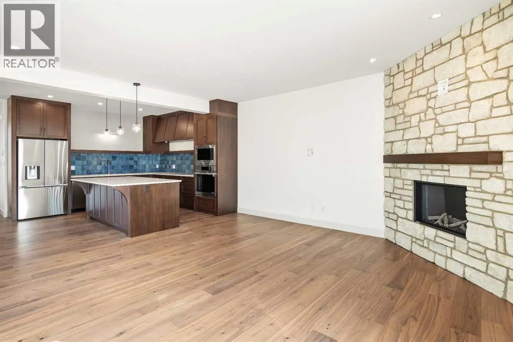 â¢Welcome to Edgerton Place, where comfort meets convenience in the heart of Rocky Mountain House. Nestled in the stunning foothills of the Rocky Mountains this executive new build townhome offers a modern, low-maintenance lifestyle in a prime central locationâjust steps from brand-new pickleball courts and within walking distance to local shops, restaurants, and everyday amenities. Step through the front door into a welcoming foyer adorned with almond slate tile, setting the tone for the refined finishes found throughout. This level features a spacious recreation room, ideal for a home office, fitness studio, or lounge, a heated-floor garage providing comfort year-round including 220V electrical, and a stylish 2-piece bath completes this flexible space. Up stairs we go to the heart of the home, where rich walnut hardwood floors flow throughout a bright and airy open-concept kitchen, dining, and living area. At the center of the living room is a gas fireplace framed in floor-to-ceiling tumbled stone, accented by a dark wood mantel â a stunning focal point and cozy gathering space. To your left, the chef-inspired kitchen features: A generous quartz island with seating and creative storage, high-end modern appliances, blue artisan tile backsplash for a bold touch, a spacious pantry and a convenient 2-piece guest bath tucked away nearby. Step outside onto your balcony, perfect for outdoor dining, relaxing evenings, or entertaining guests. The upper level is home to two luxurious bedroom suites. The primary boasts a walk-in closet and an elegant, accessible 4-piece ensuite with a roll-in shower, combining style and thoughtful design. A well-placed laundry area leads to the second bedroom, which features its own 3-piece ensuite and walk-in closet â ideal for guests or family. With a sleek modern elevator system serving all three levels, this home offers both convenience and accessibility, making it ideal for a variety of lifestyles. This thoughtfully designed townhome co mbines style, functionality, and locationâoffering the best of Rocky Mountain House living. Whether you're downsizing, or investing, Edgerton Place offers unmatched value and convenience. (id:27476)
