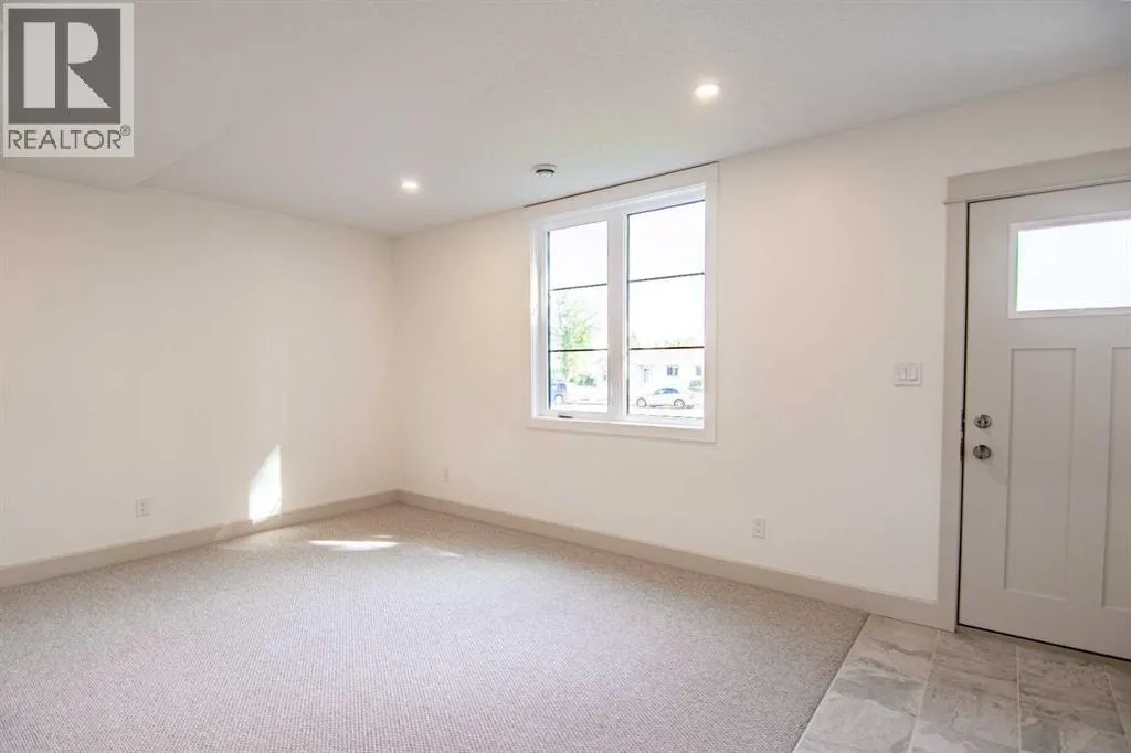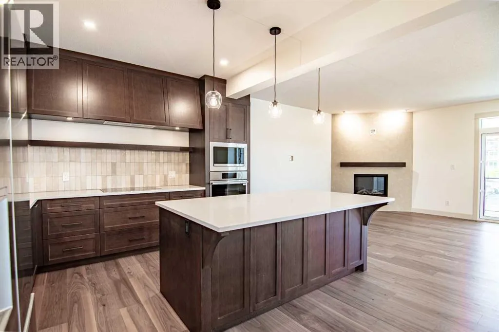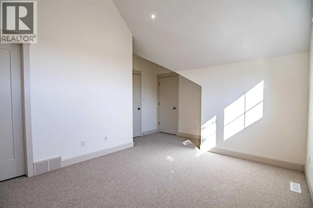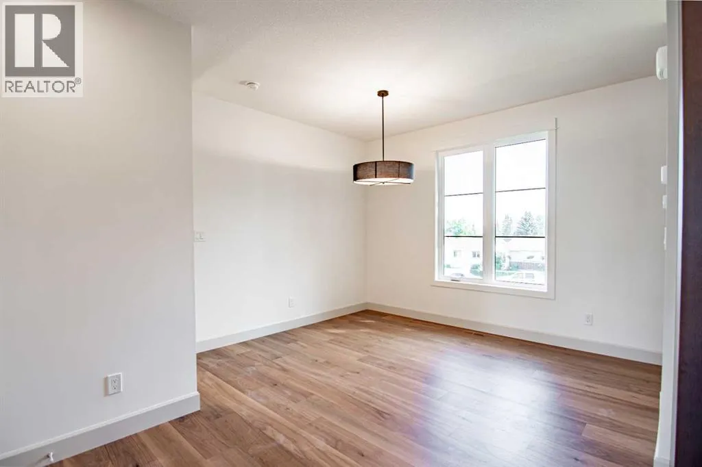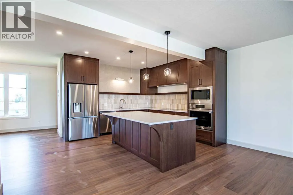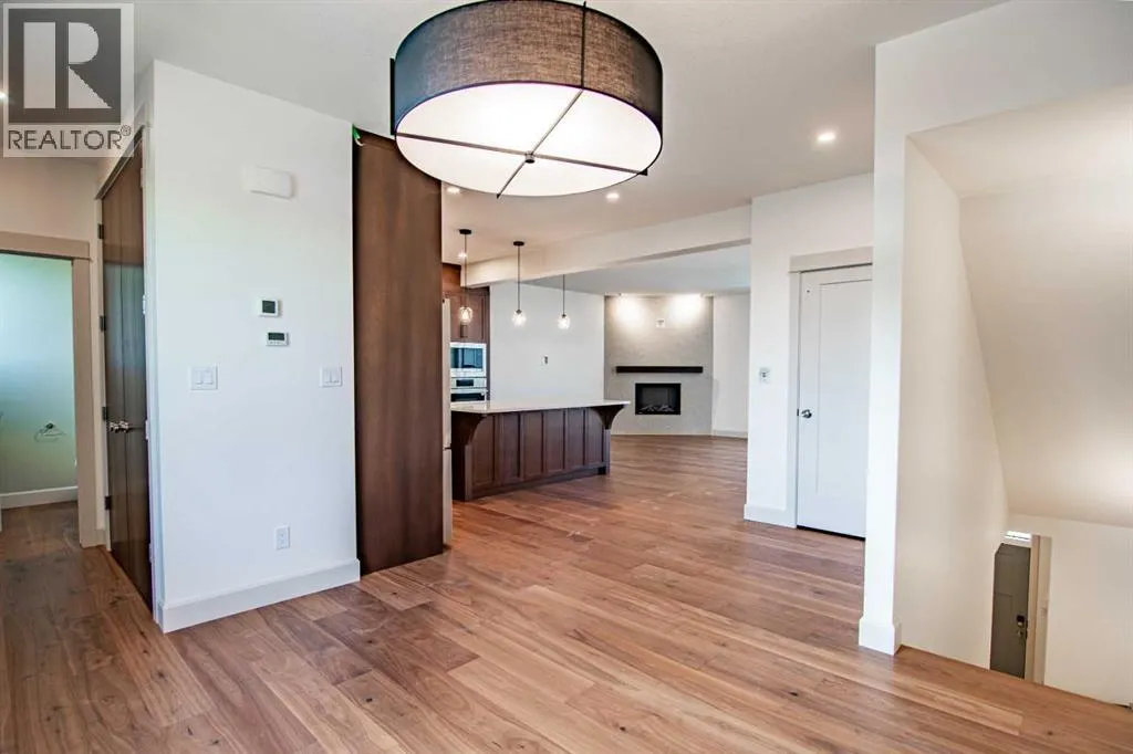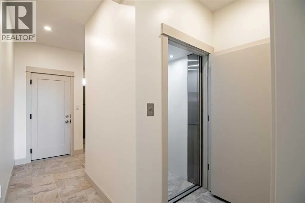 Welcome to Edgerton Place, where comfort meets convenience in the heart of Rocky Mountain House. Nestled in the stunning foothills of the Rocky Mountains this executive new build townhome offers a modern, low-maintenance lifestyle in a prime central locationâjust steps from brand-new pickleball courts and within walking distance to local shops, restaurants, and everyday amenities. The main level welcomes you with a spacious family room, ideal for hosting guests or enjoying quiet evenings, complete with a stylish three-piece bath. A wide hallway, adorned with rich cream-colored slate tile, leads to an open foyer that sets the tone for the rest of the home. Just off the foyer, the heated garage is ready for both comfort and function, equipped with 220-volt wiring for electric vehicles or workshop use. A separate utility room adds convenience, while the elevator provides effortless access to every level of the home, making it ideal for those seeking long-term accessibility. Up the beautifully crafted stairway, finished in deep-toned hardwood and lit by elegant gallery lighting, the second level opens to a bright and airy dining room perfect for entertaining. A discreet two-piece powder room and a walk-in pantry sit just off the dining area, adding both style and storage. The heart of the home is the expansive kitchen, where an oversized island invites gatherings and casual meals. Light quartz countertops pair perfectly with custom dark wood cabinetry, all accented by a cream-toned tile backsplash that adds warmth and texture. Adjacent to the kitchen, the living room is anchored by a sleek floor-to-ceiling fireplace that brings both visual impact and cozy ambiance. From here, step out onto your private balcony, finished with modern glass and aluminum railings â a low-maintenance space perfect for outdoor entertaining or quiet morning coffee. The third floor is dedicated to rest and retreat. The primary bedroom is a true sanctuary, featuring vaulted ceilings, abundant na tural light, a walk-in closet, and a luxurious four-piece ensuite bath with accessible shower. A spacious secondary bedroom also offers its own large closet and a private three-piece ensuite, providing comfort and privacy for family or guests. Conveniently located between the bedrooms, the laundry area ensures maximum efficiency without sacrificing space or design. From top to bottom, this home is a rare find â offering upscale finishes, smart functionality, and timeless design, all wrapped in an accessible, thoughtfully crafted layout. Whether you're looking for luxury, flexibility, or a forever home, this townhome delivers on every level. (id:27476)
