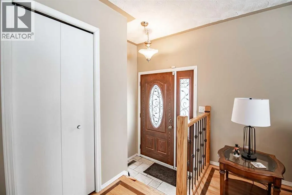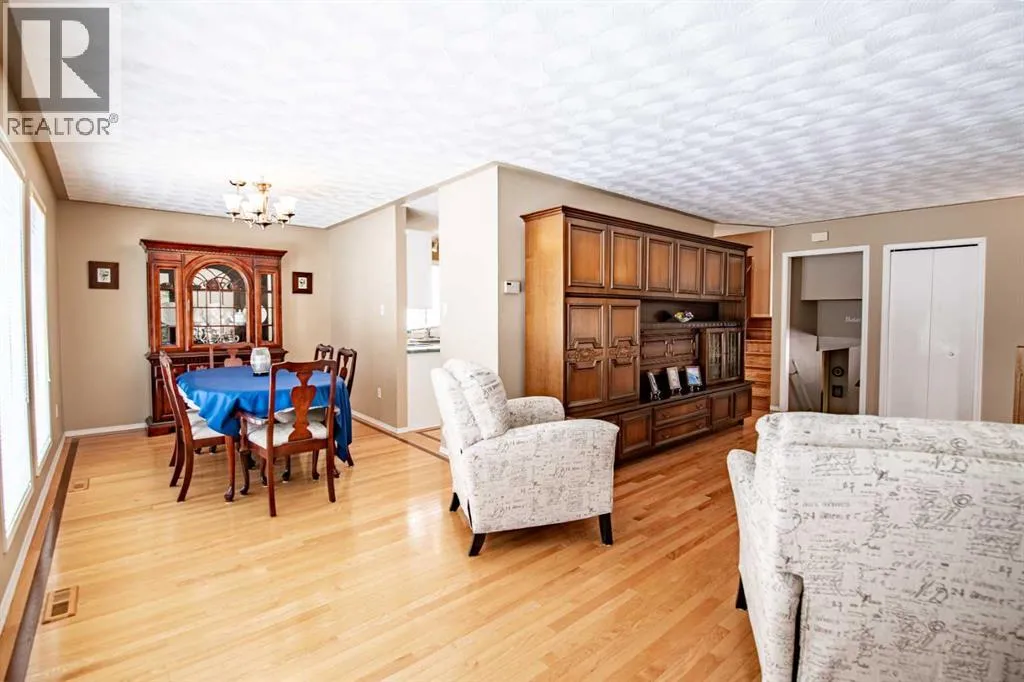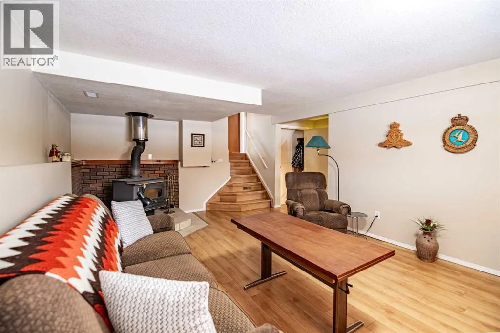 Welcome to a lovingly cared for and beautifully maintained home that shows more than the pride of ownership. Located in a well-established neighborhood in an ideal location for all schools with quick Hwy access to shopping, plus walking distance to the central community recreation center and walking trails. The community of Rocky Mountain House is well known for its small-town charm and access to the great outdoors of the West Country. Step inside to this 4 level spit with its spacious and inviting living room , creating a warm and welcoming first impression that moves you seamlessly into the bright and formal dining area, stunning hardwood floors flow throughout, adding timeless elegance that continuity throughout the main living spaces on both the main and leading through to the 2nd level hallway. The galley-style kitchen is thoughtfully designed for both function and style, featuring built-in appliances, abundant cabinetry, a convenient breakfast bar, 2 pantries with plenty of storage and an eat in kitchen area perfect for busy mornings or casual family meals. The tall ceilings open up the living space. Upstairs, youâll find 2 comfortable bedrooms, a four-piece main bathroom, along with the generous primary suite complete with a three-piece ensuite and walk-in closet, offering a private retreat at the end of the day. The lower 3rd level boasts the 4th bedroom/office and cozy family room highlighted by a charming wood-burning stove, ideal for relaxing evenings, along with direct access to the attached garage. The basement provides even more versatility with ample storage space, a cold room, a laundry area complete with sink and work space, plus an additional 3-piece bathroom. Outside, enjoy the benefits of the attached garage, with tall ceilings for added space and 220V wiring making it a handman's dream. A spacious, fenced backyard â perfect for kids, pets, entertaining, or simply unwinding outdoors with access from the home through the garage or a convenient gated walkway from the west side of the drive. As an added bonus, this home is a turnkey with select furniture and house hold items included in the sale, making this truly move-in ready and an easy transition for its next owners. This is a wonderful opportunity to own a turnkey home for any buyer who is a cross country relocation or a first time buyer. Combining comfort, functionality, and value makes this home an easy transition. (id:27476)