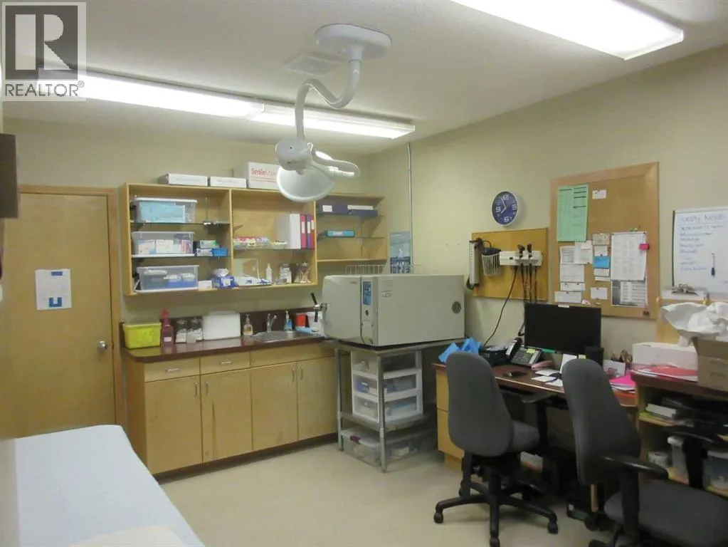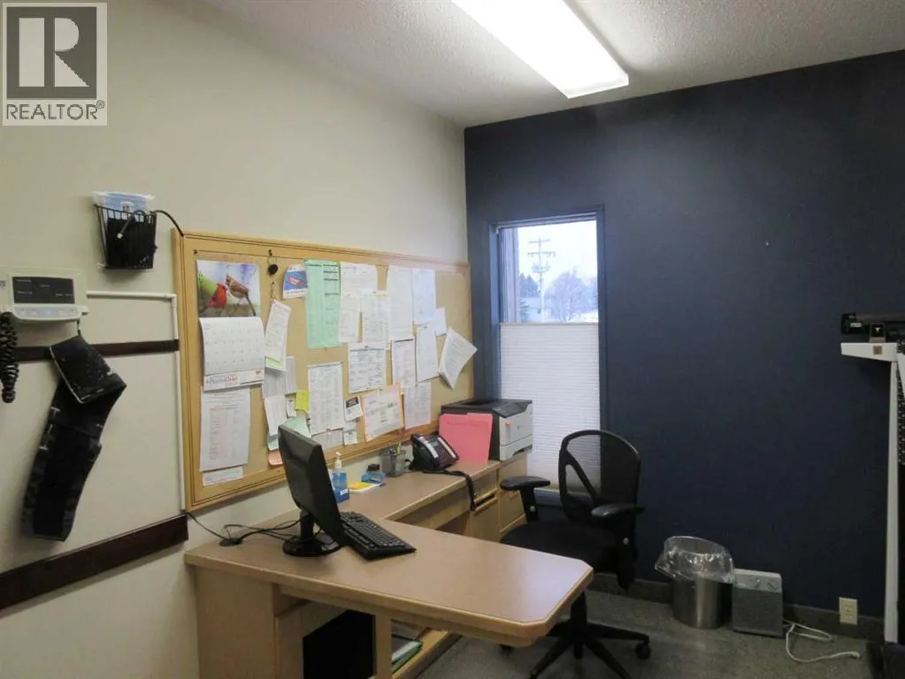 Are you looking for a commercial building? This propertyâs central location, functional design, and good condition make it a great opportunity within the local commercial market. Its use as a medical or professional office supports stable tenancy and income potential with good access and visibility in the commercial area. The site is fully serviced and zoned for commercial use, allowing office and retail operations with a functional layout that includes offices, reception, and support areas. The land parcel is modest in size, typical for central business locations, and offers paved access with parking along the south side and at the back of the building as well as another separately titled parking lot to the south. This is a modern, functional commercial property in a prime town-centre location, just a block off main street. (id:27476)