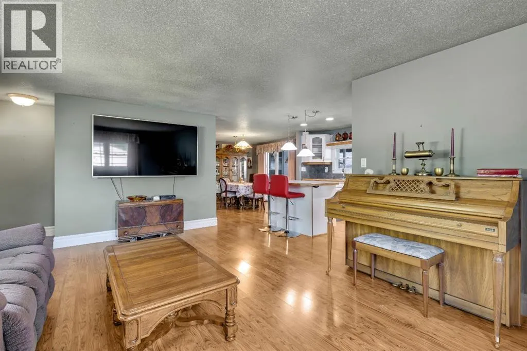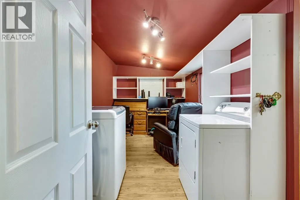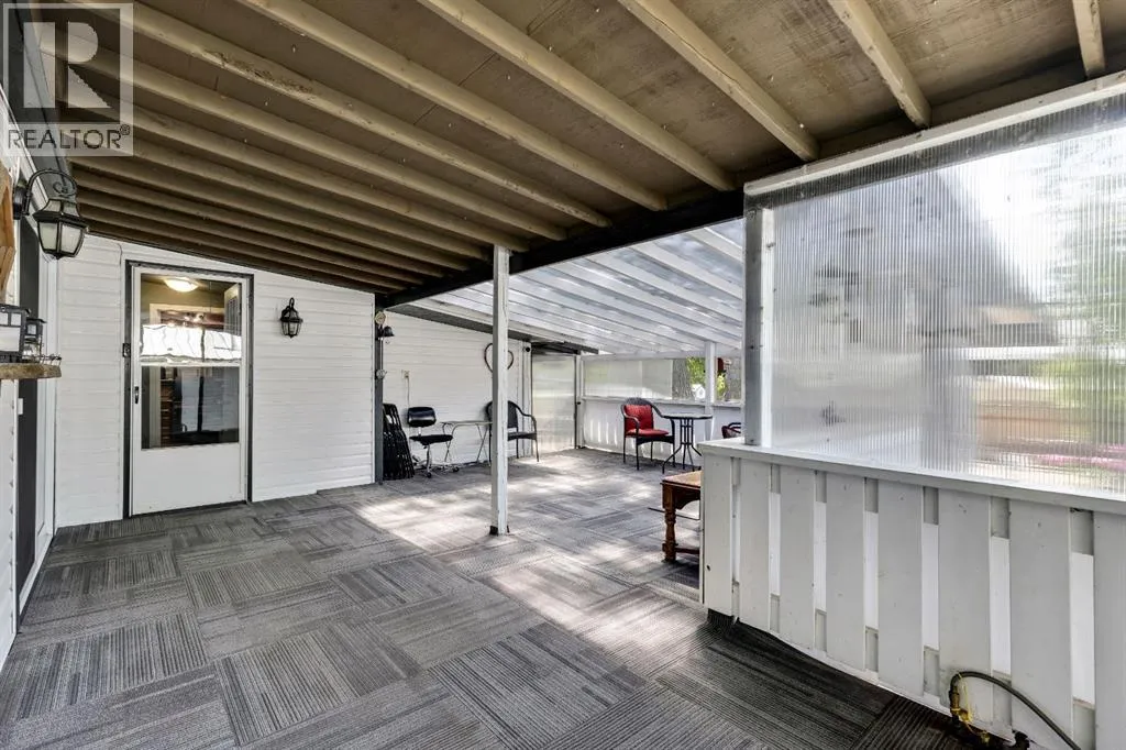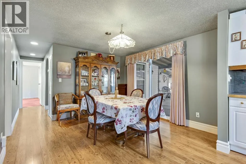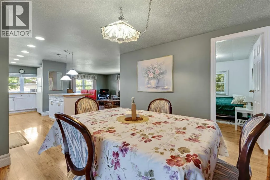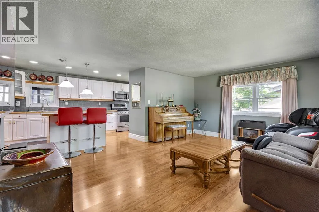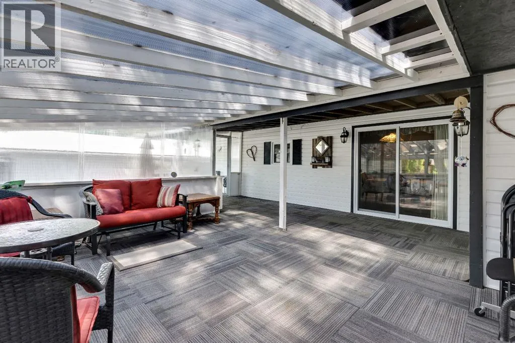 Welcome to your new home in the heart of Rockyford! This updated 3-bedroom, 2-bathroom residence offers comfort, style, and space â perfect for families or anyone seeking small-town charm with modern amenities. The 3 spacious bedrooms are perfect for families with 2 updated bathrooms, the ensuite includes a walk-in shower/tub. The renovated galley kitchen provides tonâs of cupboards and an island to enjoy with a great sized dining room to have everyone over for family dinners. The living room has a gas stove to keep you cozy in the winter months. The laundry room is a great size and includes a den area, off this is a storage/pantry area. The property has newer siding ,upgraded windows (they open both ways!), electrical panel, hot water tank and a new durable metal roof(2023) for worry-free living. Donât worry about the heat in the summer months as this home has CENTRAL AIR. NEW FURNACE INSTALLED SEPT 2025The Oversized single garage with attached workshop/storage area is perfect to tinker in. The front driveway boasts tonâs of parking and has been conveniently repaved. The back parking also fits 2-3 vehicles, RV Parking allow you to store all your toys on your own property.Step out onto the covered deck and outside to your private backyard oasis, complete with mature trees, blooming flowers, a tranquil pond, and a brand-new fence. Whether you're hosting summer BBQs or enjoying a quiet morning coffee this property has it all. Call your favourite Realtor today to book your private viewing. (id:27476)