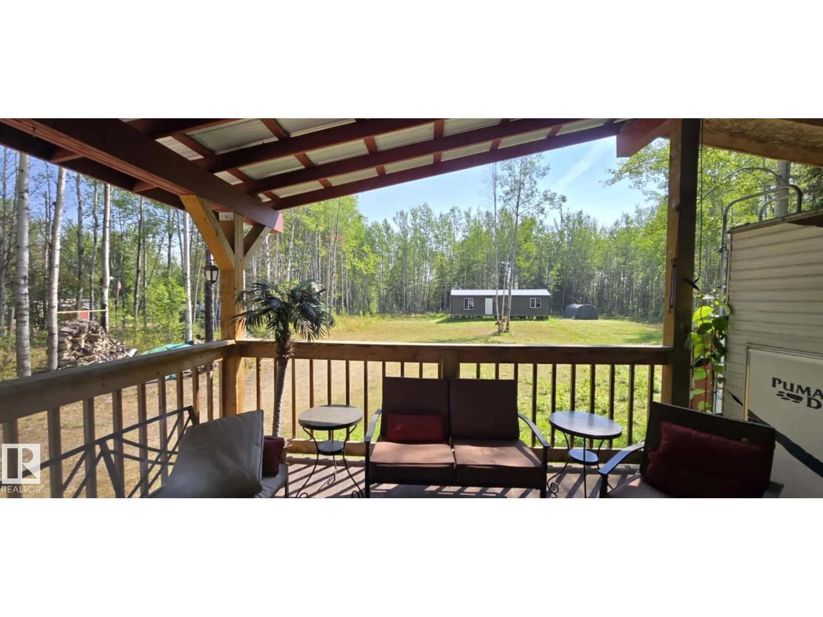 ELLSCOTT 2.86 ACRES with services! nestled in the trees, in East Park Estates. Perfect getaway or future dream home location. Fenced, gated entrance w/solid gravel. INCLUDED is a new 40x14 unfinished cabin with power in & wood stove installed, 24x12 powered guest cabin/storage, huge solid cover overtop a 30.5x14' deck & 2009 31BHSS PUMA RV (included) w/power, another storage shed, large tarp shed, firepit privacy fence & more! Potable water tank inside a shed, sewer holding tank in the ground. RV & convenience plugs. Land has groomed trails & plenty of trees. Excellent neighbours here! A mixture of recreational getaways & fully completed beautiful homes within the community. On school bus route (k-12 school). Ellscott is just 15km to Boyle, 113km to Edm. Long Lake & Skeleton Lake are a short drive for recreation, golf & ski hill. Outdoor enthusiasts delight, w/ endless quad trails & crownland nearby. Tons of room to host guests. Don't miss out! (id:27476)