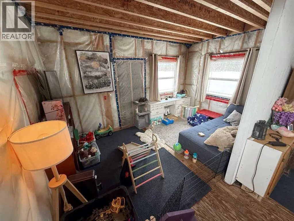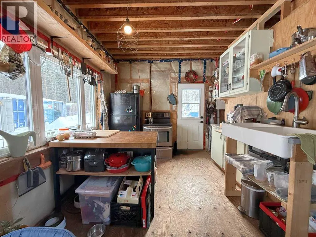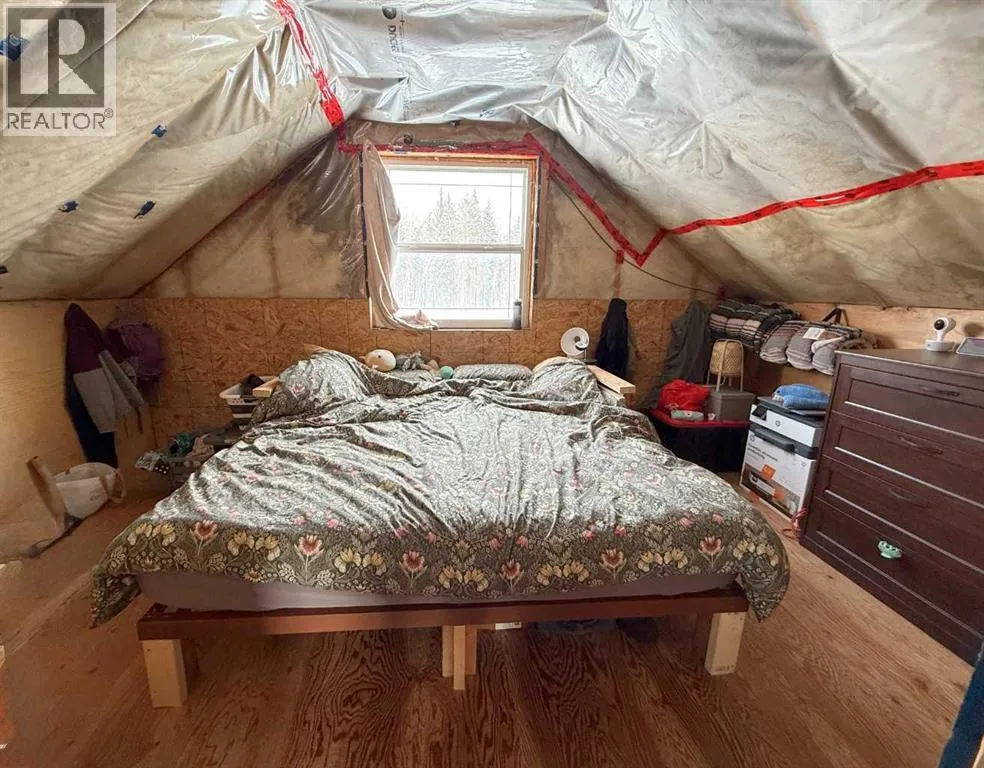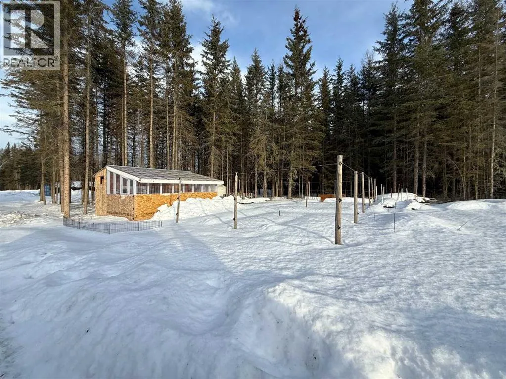 76.94 acres with 937 sq ft, 1 and a half storey home. Currently lived in year round, but would also make an amazing cabin retreat. Main level is 505 sq ft with kitchen, living room and roughed in bathroom with tub. Upper level is 432 sq ft with 2 bedrooms and flex space. 4 â 20 ft seacans for secure storage, one with power. Chicken coop and greenhouse. Land is mostly bush with approximately 3-4 acres recently cleared, plus open yard site. Access to an old well site with lease revenue $1500/yr, reclamation in process and is scheduled for completion by 2030. Excellent location if you enjoy the outdoors, with direct access to crown land bordering the north and east sides of the property. Just over 1 mile to the north is a staging area for the Peace River Trail. (id:27476)