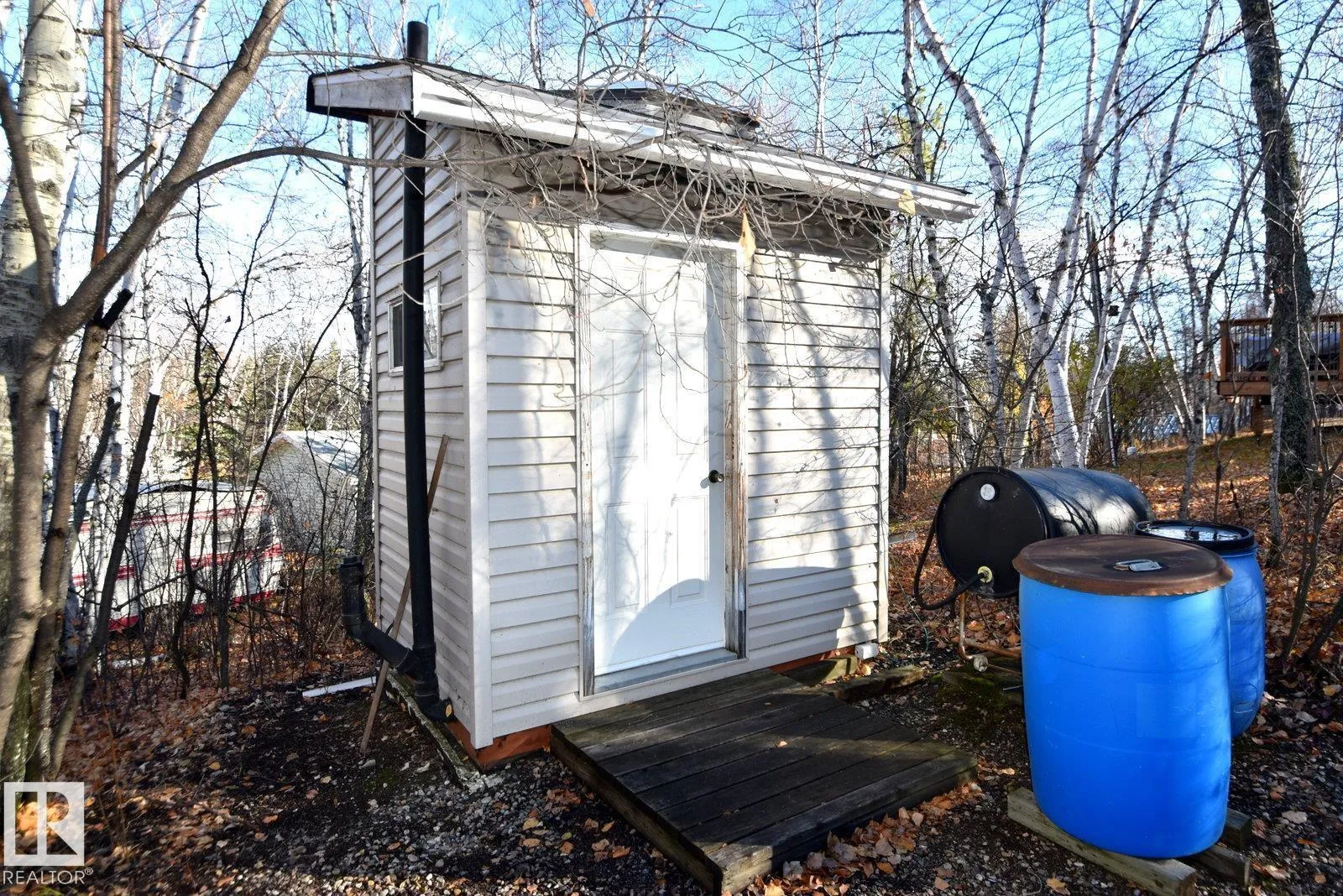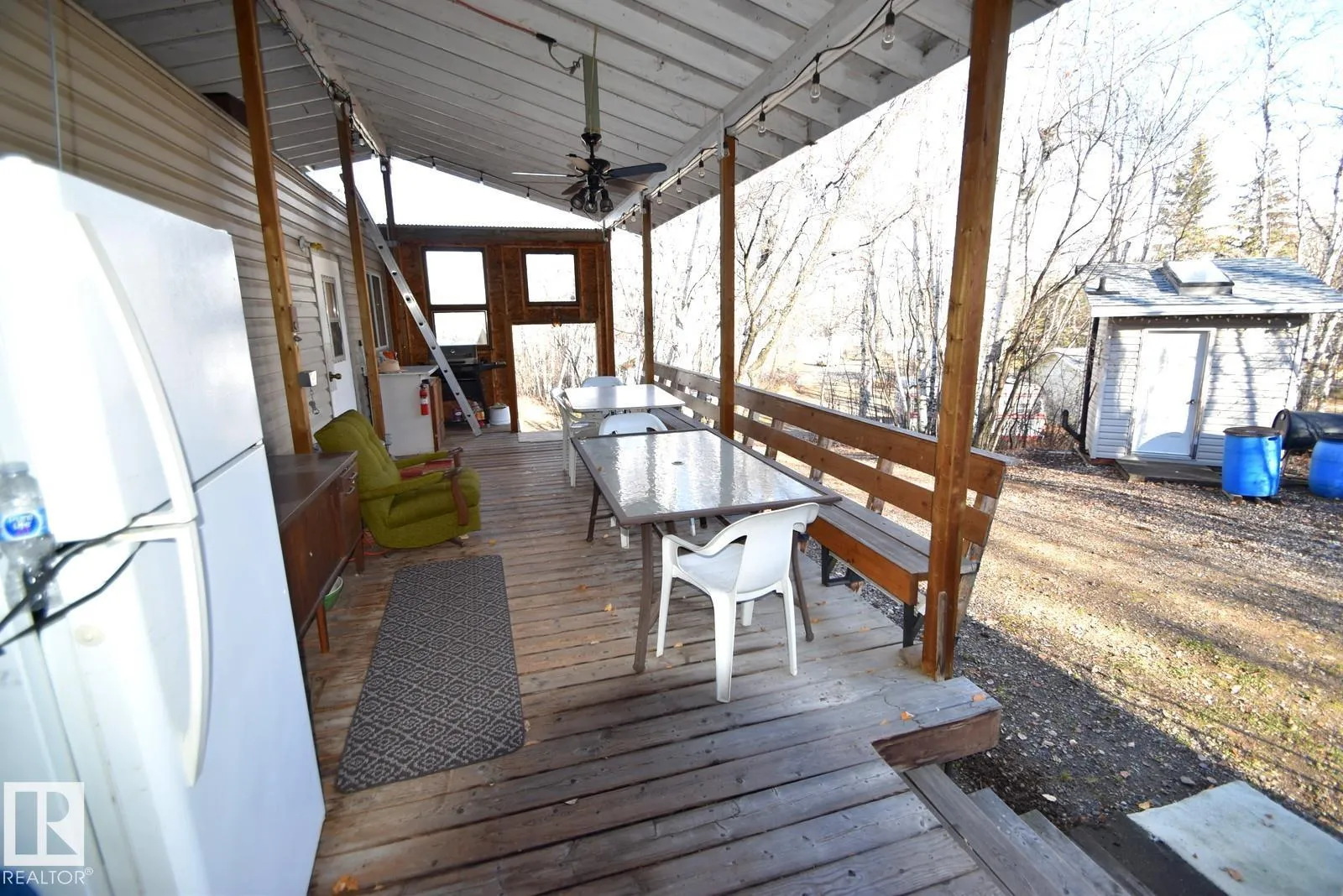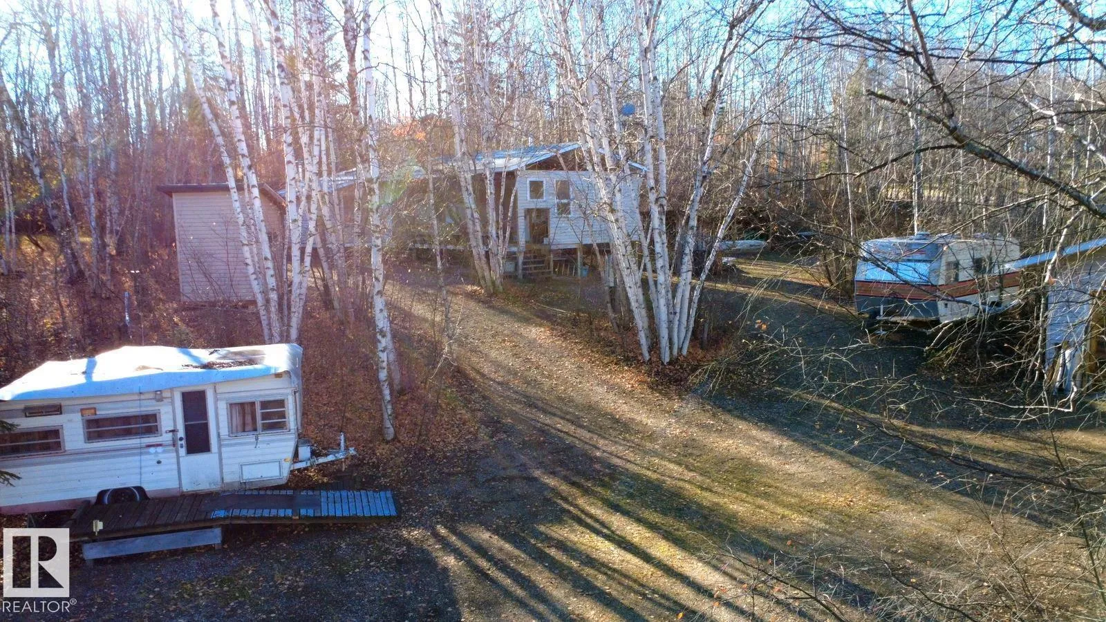 NORTH BUCK LAKE - GOLDEN NODDING! Enjoy lake life on this beautiful 0.5+ acre property just steps from North Buck Lake beach & boatlaunch! Manufactured home serves as a 3season cabin w/ large addition & covered deck *NEW ROOF*. Can all be moved out if youâd like to build your dream lake retreat on the hillside. Featuring 2 bedrooms + loft bed, large living room w/ wood stove, kitchen area, enclosed porch, and outdoor bathroom with shower & sink. Outside offers a covered deck, nice brickfirepit area w/ shelter, wood sheds, a huge double garage w/concrete floor, and 2 campers w/ power hookups for guests. Underground power to all, with a power pedestal for future projects. Public beach, boat launch & park in summer. This is a great area for recreation, quadding, hunting and more.. you can start the wood stove and have a great day of sledding, and come back to the warm cozy cabin for a drink. Don't miss out on your opportunity to own lake getaway that offers versatility for your future (id:27476)