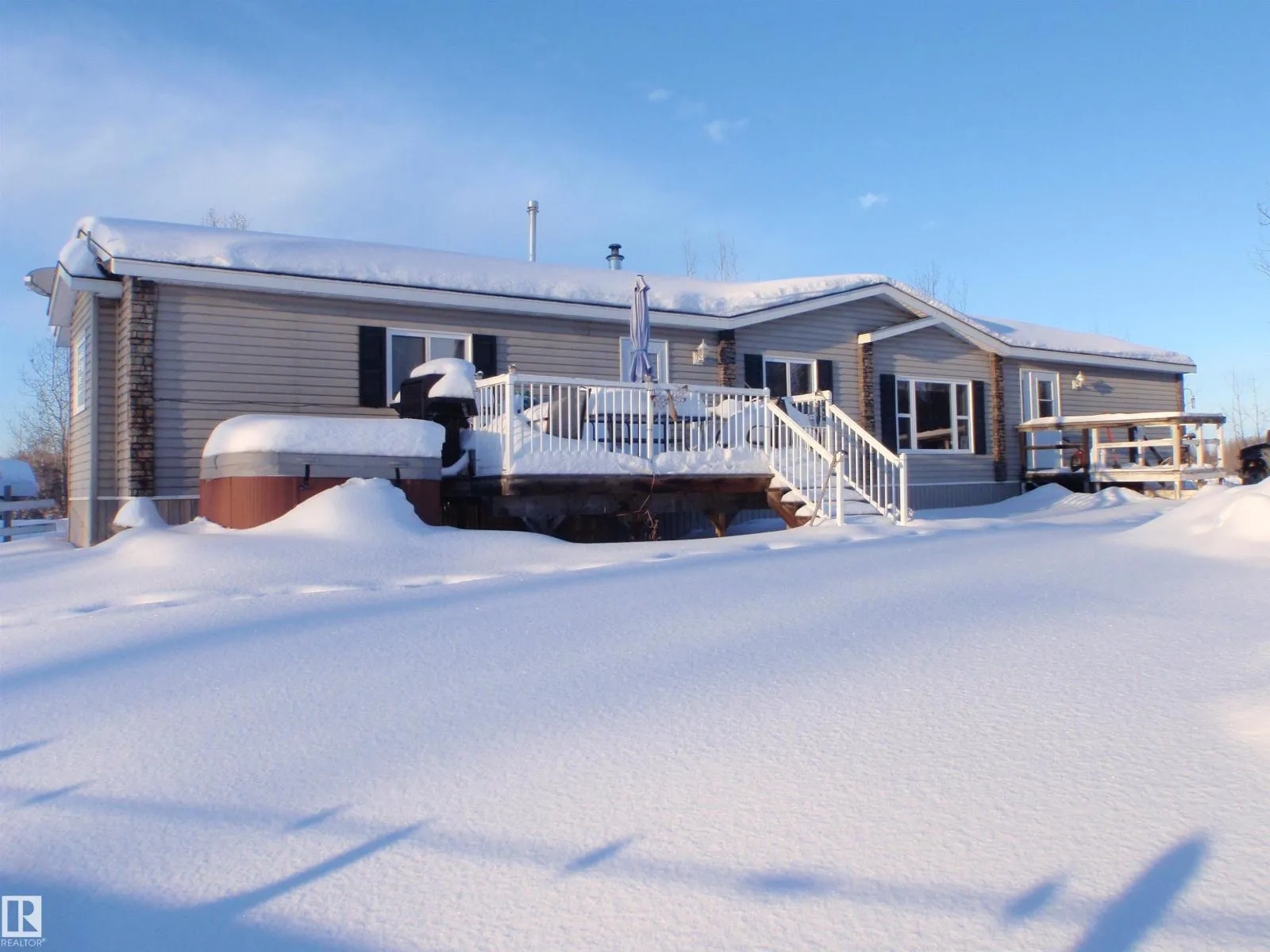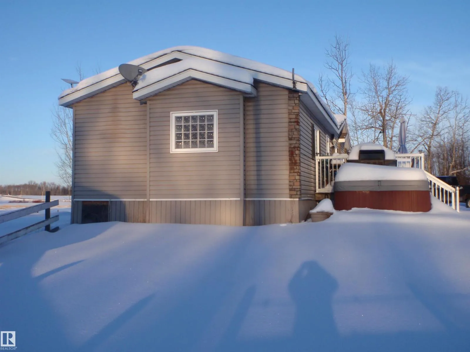 This could be the little piece of Paradise you are looking for. Situated on pavement 21 miles SW of Barrhead, this 2.87 acres with a 1520 sqft spacious 3-Brdm 2008 Modular home has all the room you will need to get away from it all. The yard is nicely landscaped with firepit area and a circular driveway. FEATURES include: Vaulted Ceiling, 2-Oven Stove, Oak Kitchen & Trim, Walk-in Pantry, Two Decks, Canvas Shed (approx. 28x30), Underground Power, Hot Tub, and several Sheds. UPGRADES: Well pump (2019), Heater in pump house (2025), Microwave hood fan (2020), Dishwasher (2020), Central ac. The structure sits on 6-inch drilled concrete pilings each with 12x12 concrete section on top, with insulated skirting. There is an old site just to the east of the current home (includes water line, septic line, power) which would be a great place for a future garage. The all-freezer (2020) and older fridge in the laundry room are both included too. Title Insurance in lieu of RPR-compliance. (id:27476)