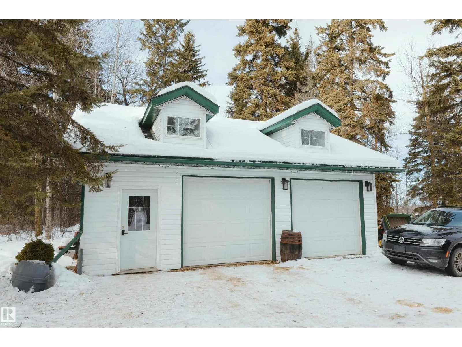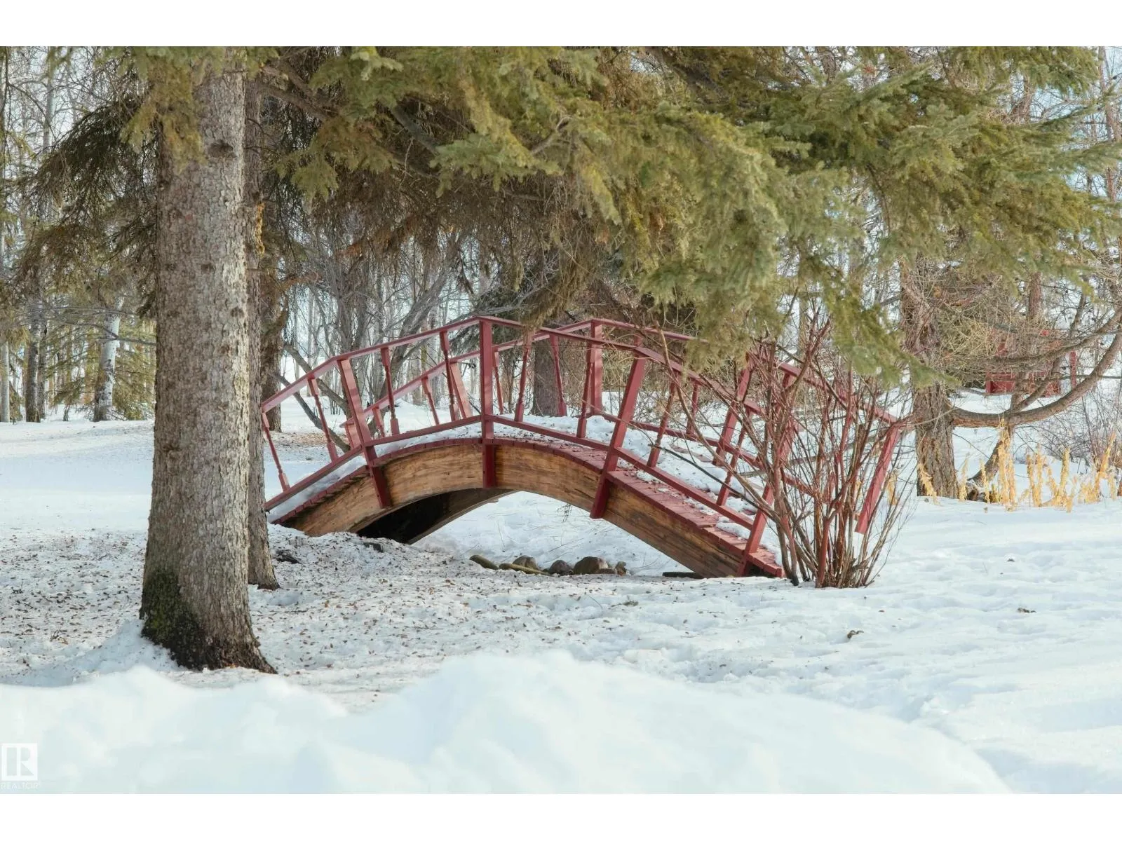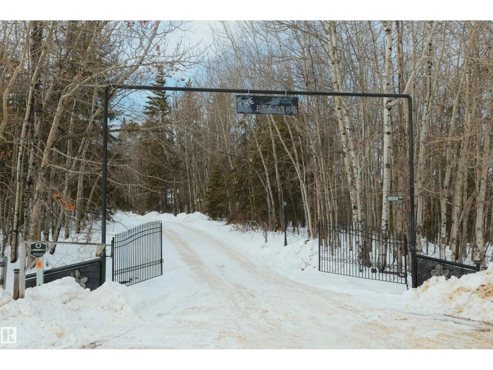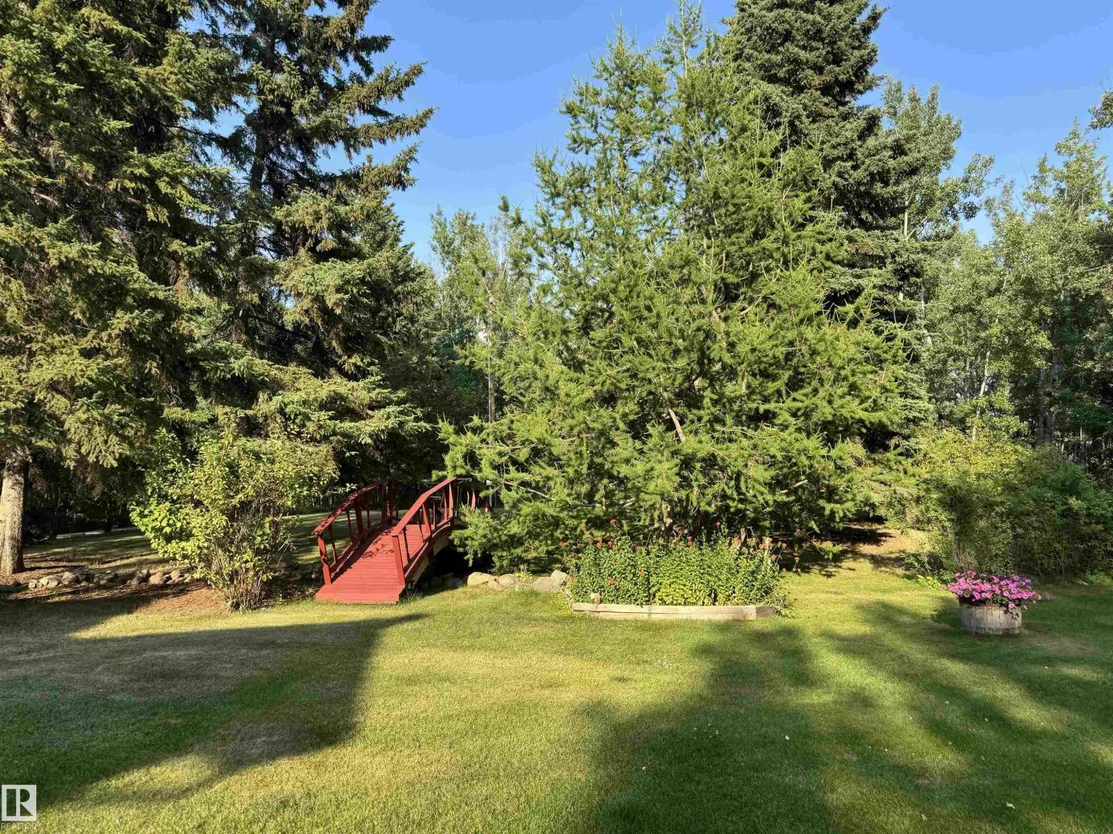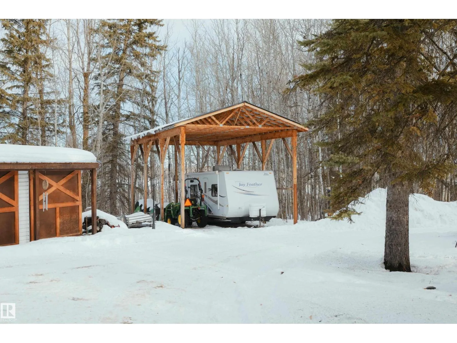 Remarkable 21.5 acre property only minutes North of Barrhead along hard top roads but privately situated amongst beautifully mature sheltering trees & bush cover. 1995 Story book 2 storey home features extensive style & upgrades including rich custom cabinetry & quartz countertops, plush bdrm carpeting, wood burning & infinity gas fireplaces & AC. Plan includes 4 bdrms pus flexible main floor office, 3.5 baths (exquisite ensuite), convenient main floor laundry & amazing basement family room w/ must be seen one of a kind entertainment bar. Gorgeous yard site provides a personal paradise full of atmosphere setting highlights. Seasonal creek w/ bridge, garden plot, dugout, fire pit entertainment area, back deck hot tub & covered gazebo. Quality double car attached garage along w/ oversized detached heated work shop, timber framed yard & rec storage plus high wall R.V shelter. An absolute lifetime find of a property w/ the size of acres, quality of home, magical atmosphere & unparralleled location. Must See! (id:27476)