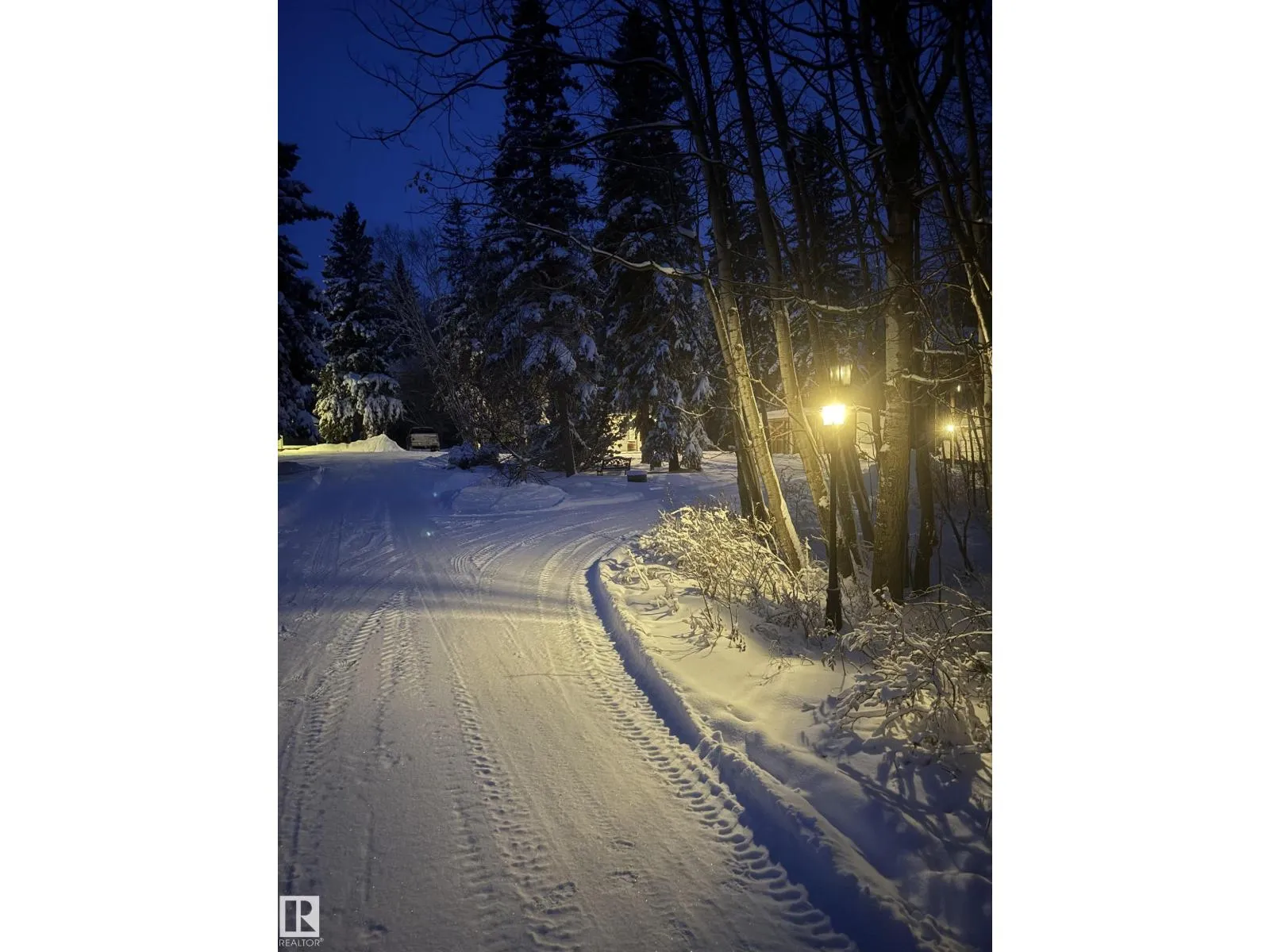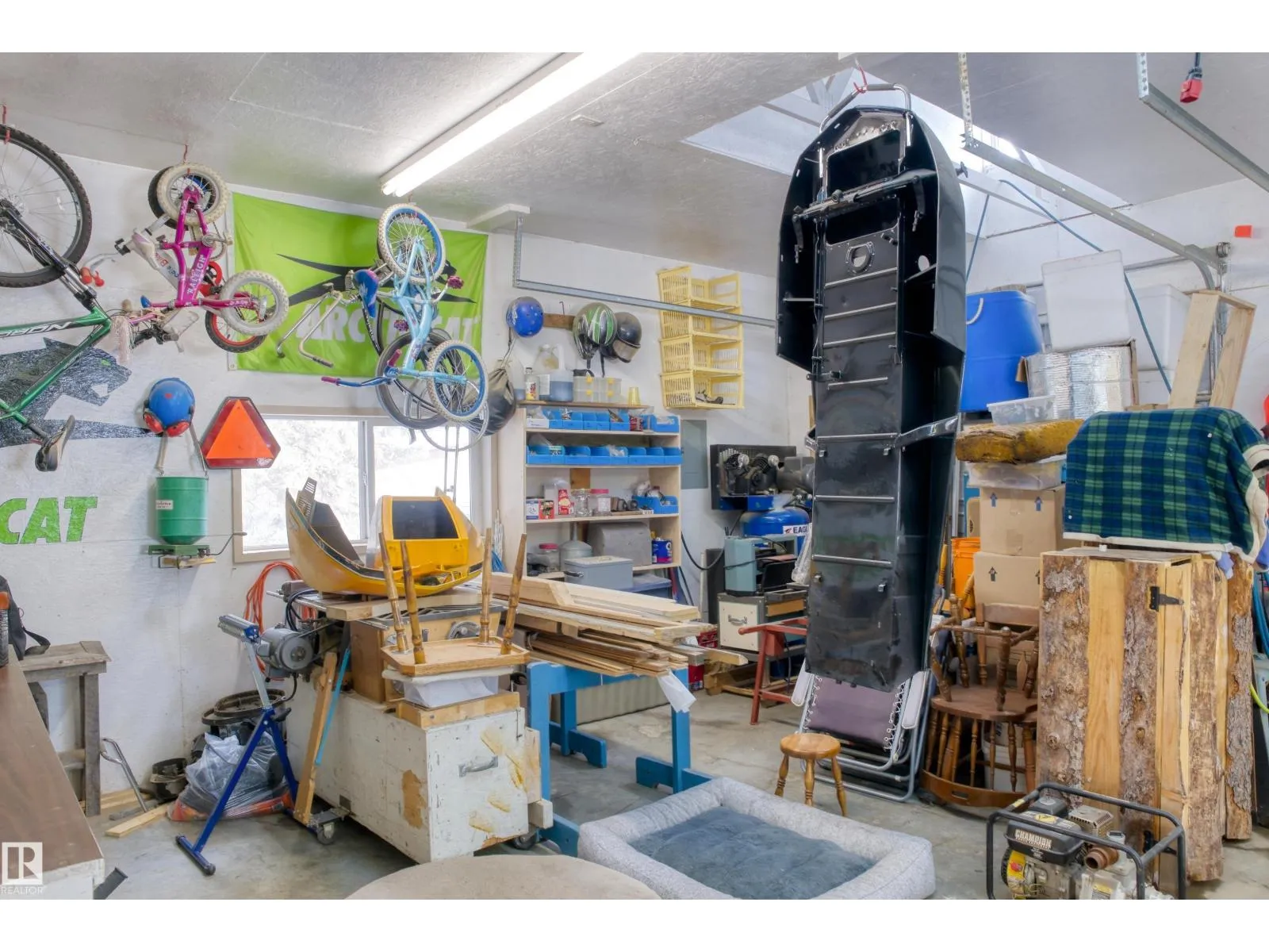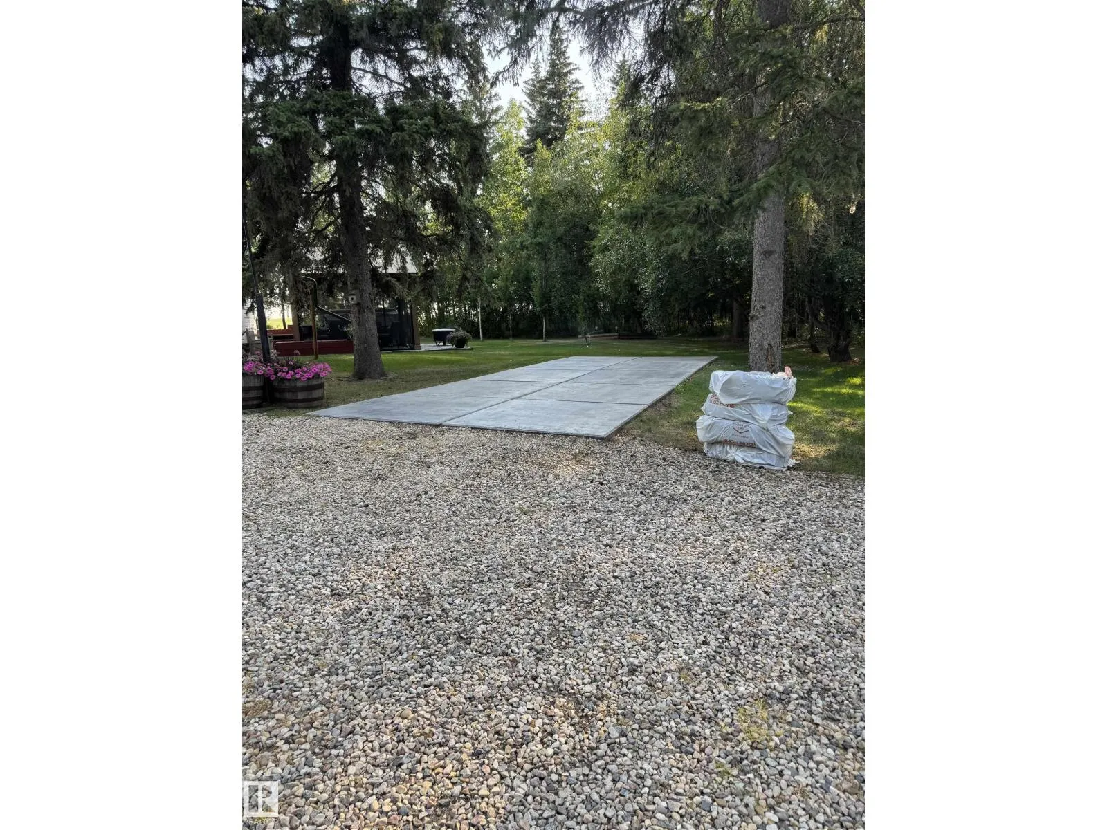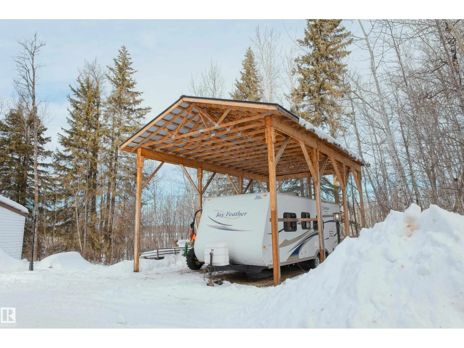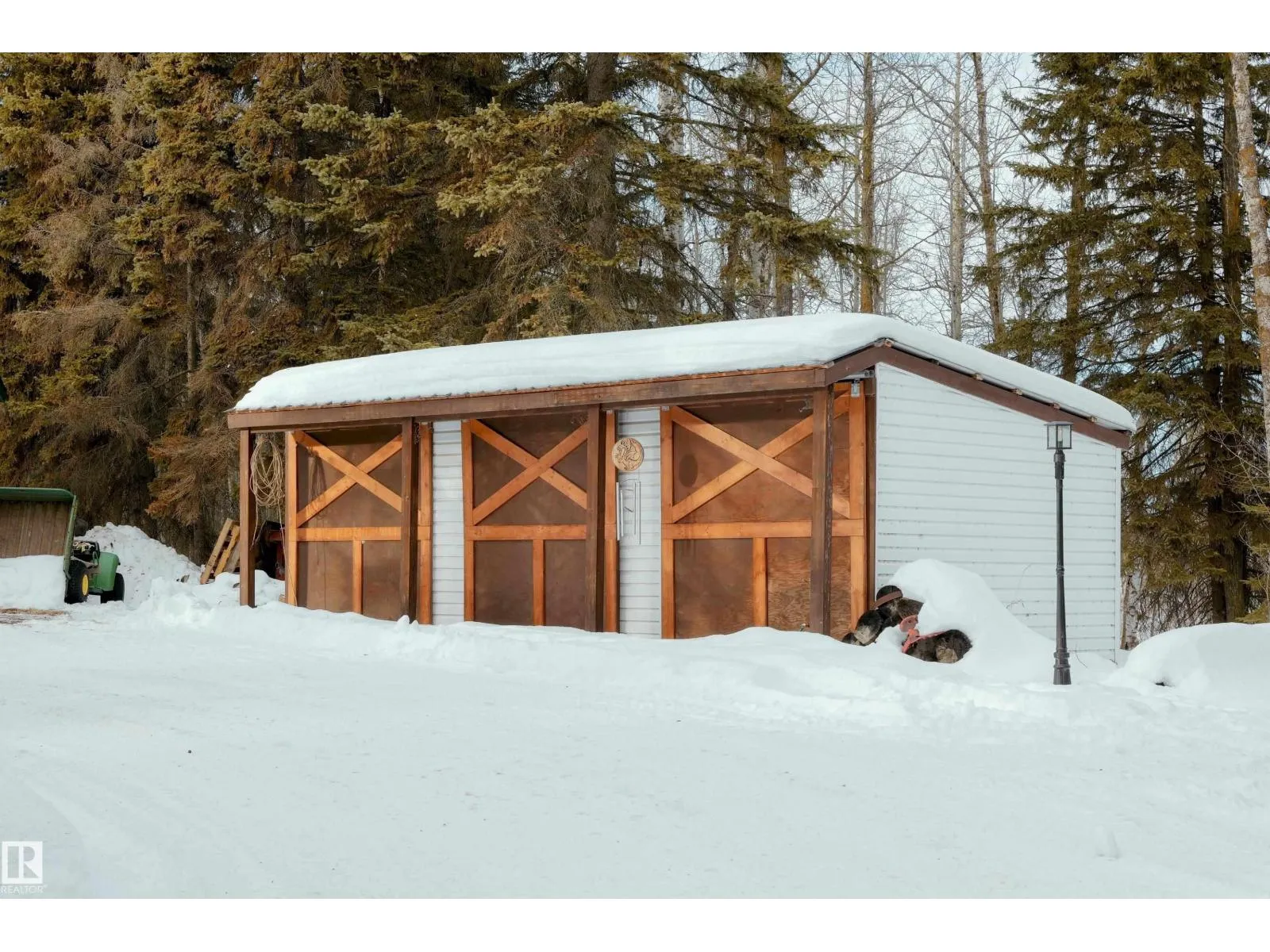 Remarkable 21.5 acre property only minutes North of Barrhead along hard top roads but privately situated amongst beautifully mature sheltering trees & bush cover. 1995 Story book 2 storey home features extensive style & upgrades including rich custom cabinetry & quartz countertops, plush bdrm carpeting, wood burning & infinity gas fireplaces & AC. Plan includes 4 bdrms pus flexible main floor office, 3.5 baths (exquisite ensuite), convenient main floor laundry & amazing basement family room w/ must be seen one of a kind entertainment bar. Gorgeous yard site provides a personal paradise full of atmosphere setting highlights. Seasonal creek w/ bridge, garden plot, dugout, fire pit entertainment area, back deck hot tub & covered gazebo. Quality double car attached garage along w/ oversized detached heated work shop, timber framed yard & rec storage plus high wall R.V shelter. An absolute lifetime find of a property w/ the size of acres, quality of home, magical atmosphere & unparralleled location. Must See! (id:27476)