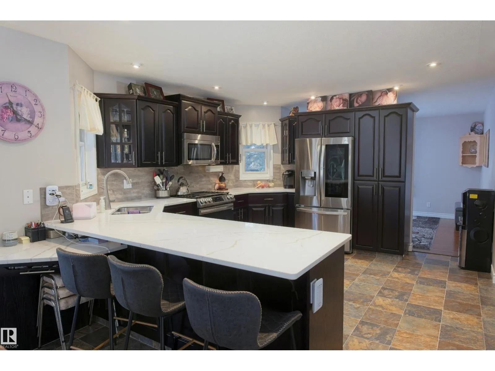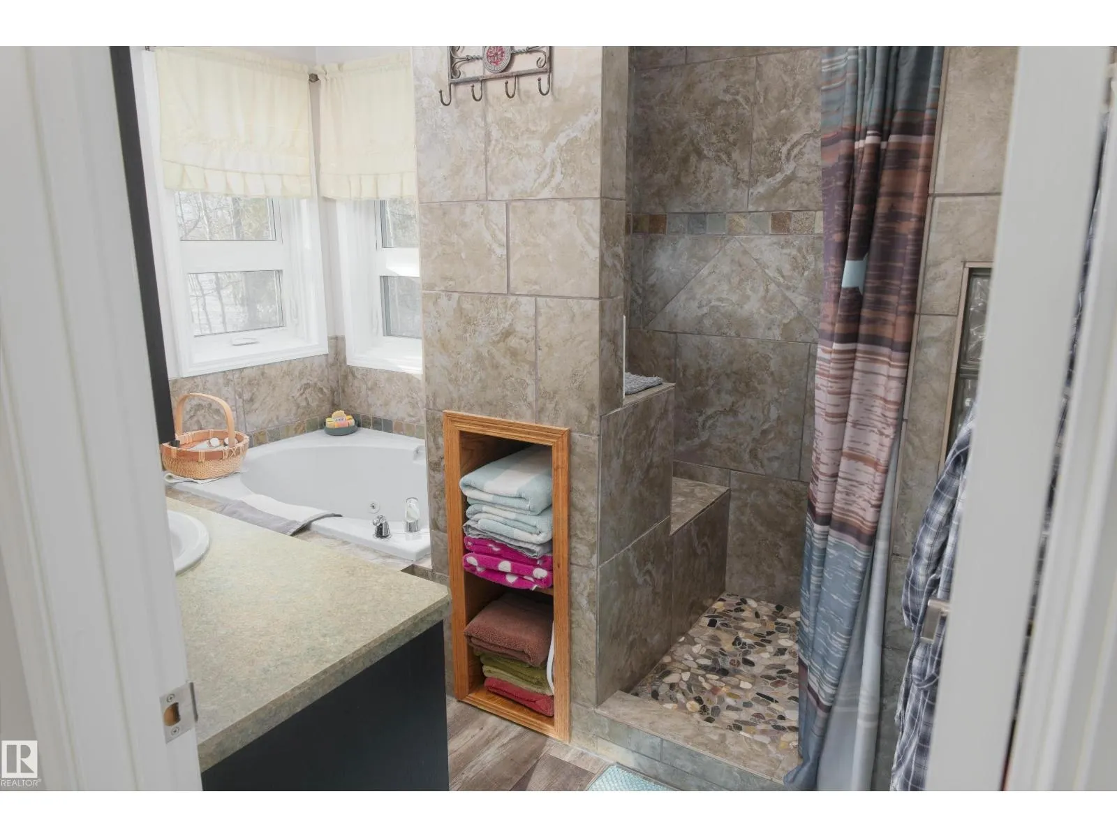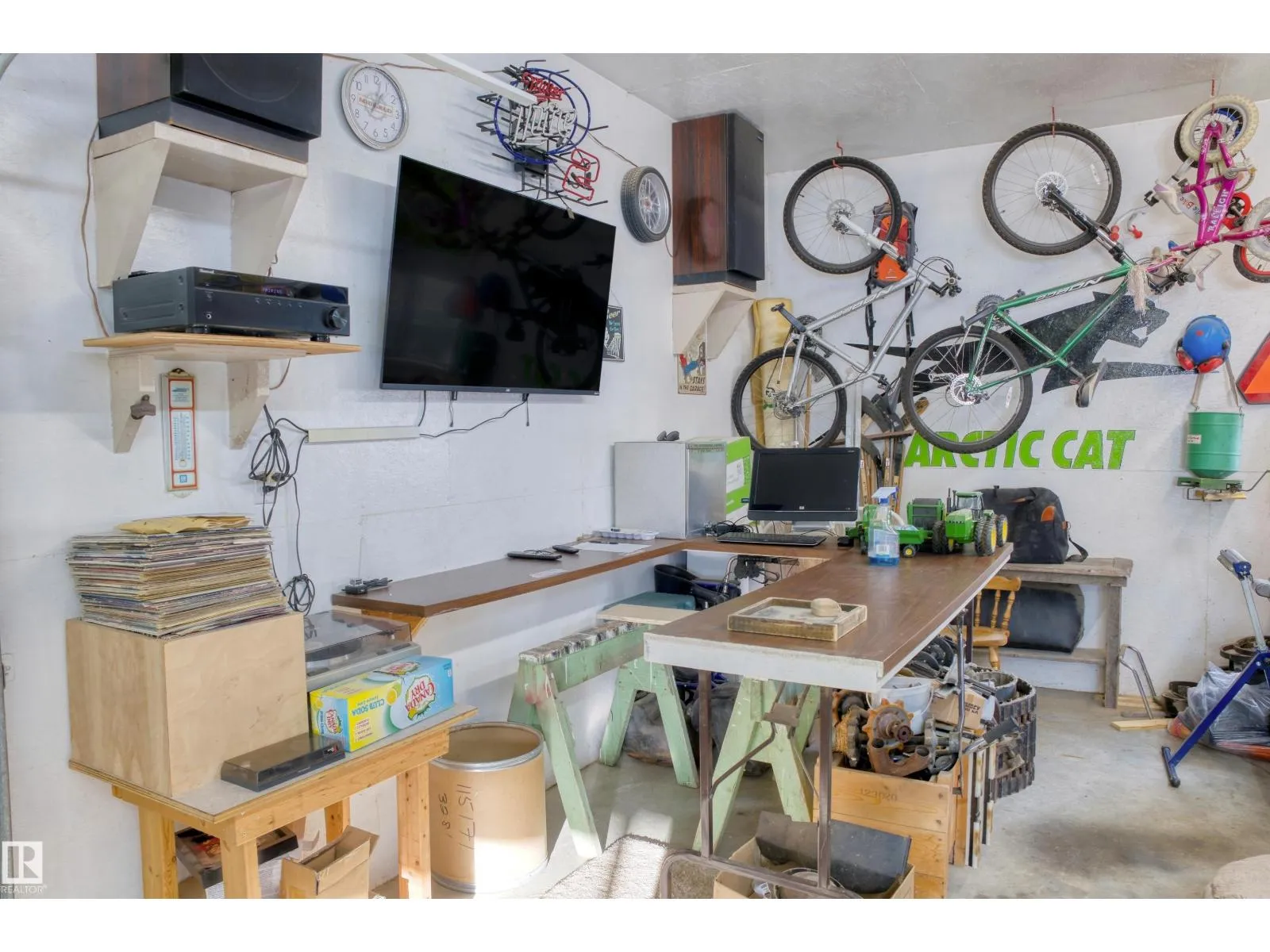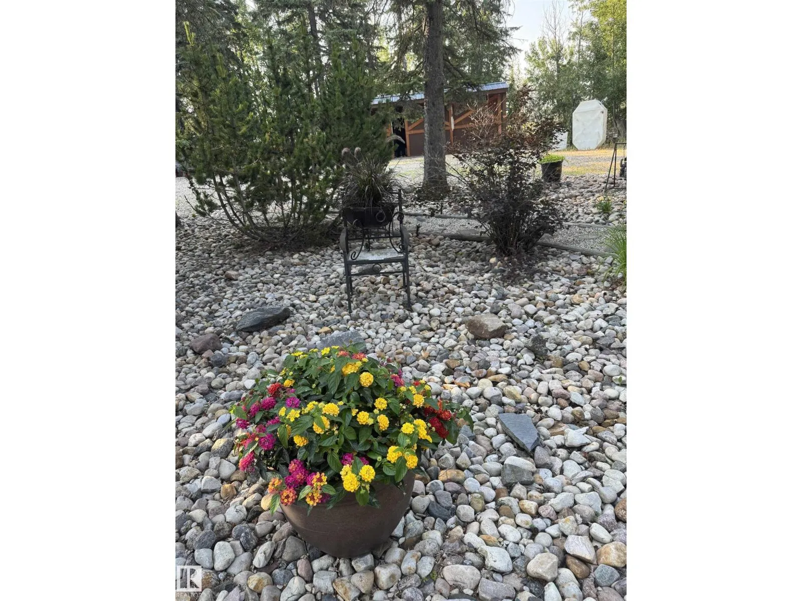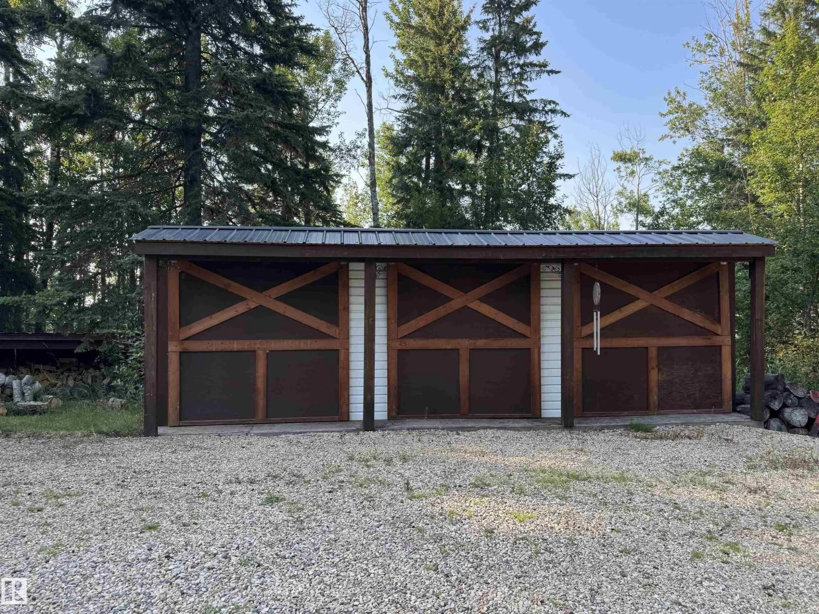 Remarkable 21.5 acre property only minutes North of Barrhead along hard top roads but privately situated amongst beautifully mature sheltering trees & bush cover. 1995 Story book 2 storey home features extensive style & upgrades including rich custom cabinetry & quartz countertops, plush bdrm carpeting, wood burning & infinity gas fireplaces & AC. Plan includes 4 bdrms pus flexible main floor office, 3.5 baths (exquisite ensuite), convenient main floor laundry & amazing basement family room w/ must be seen one of a kind entertainment bar. Gorgeous yard site provides a personal paradise full of atmosphere setting highlights. Seasonal creek w/ bridge, garden plot, dugout, fire pit entertainment area, back deck hot tub & covered gazebo. Quality double car attached garage along w/ oversized detached heated work shop, timber framed yard & rec storage plus high wall R.V shelter. An absolute lifetime find of a property w/ the size of acres, quality of home, magical atmosphere & unparralleled location. Must See! (id:27476)