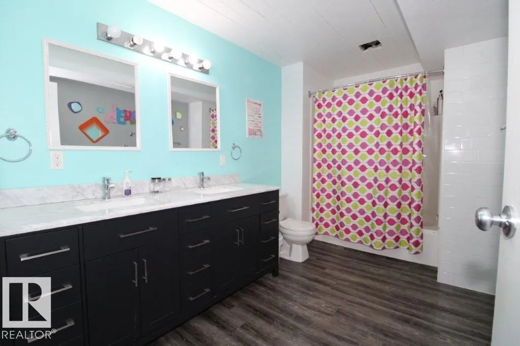 Check out this great 2 story on 11 acres located minutes from Neerlandia and 23 kms from Barrhead. There are 3 bedrooms on the 2nd level, 2 in the basement and 3.5 bathrooms. Lots of space for a growing family. Plenty of cupboards and counters in the kitchen along side the large dining room. There is a large rear deck off the dining room perfect for family and entertaining. The laundry is on the main level and leads to the heated attached garage. Outside has a great yard for kids well off the road with room for whatever you wish to add to make it your own. (id:27476)