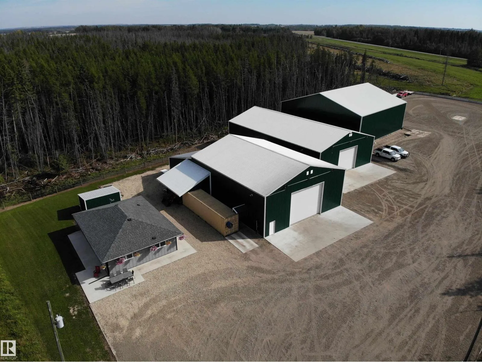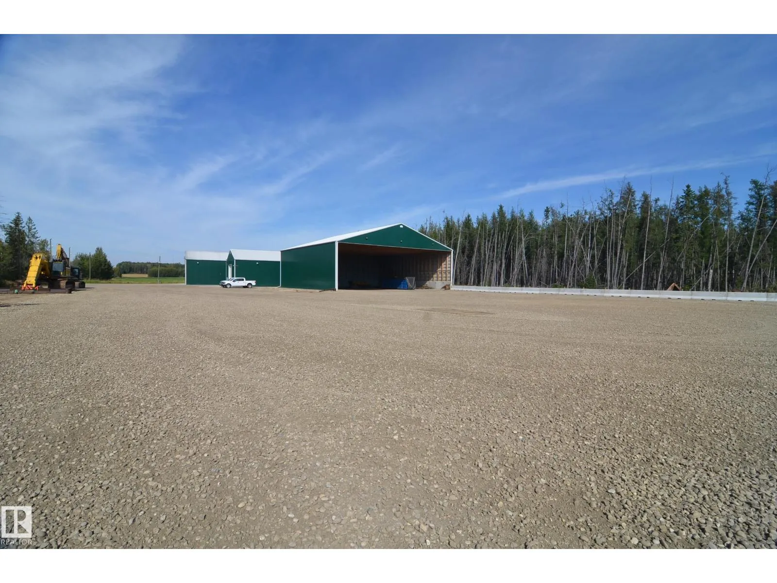 Exceptional Buildings & Structure capable of high capacity commercial applications & exposure on 80 acres along high exposure paved Highway 33 only 12 mi NW of Barrhead w/ quality Living Residence which could easily be converted to an office or base of operations as well. Modern Heated Shops include 54'x95' & 54'x96' plus 24' high wall 80'x80' Machine Shed (Seller Enclosing 4th Wall w/ OH Doors in 2026). Shops are high quality w/ excellent concrete, lined interior's, extensive power & electrical work along w/ bright lighting & flexible usage potential. 2 bedroom home features easy access, bright airy space & complete upgrades. 2.5 acres of heavily gravelled yard space features close to 100 truck loads of gravel, sloped drainage & underground water capture creating a yard capable of extra heavy equipment traffic & uninhibited usage. The 77 acres has been livestock fenced w/ pasturable lands freshly cleared, drained & seeded. Balance featuring mature old growth trees. Current Revenue Return. Must see!! (id:27476)