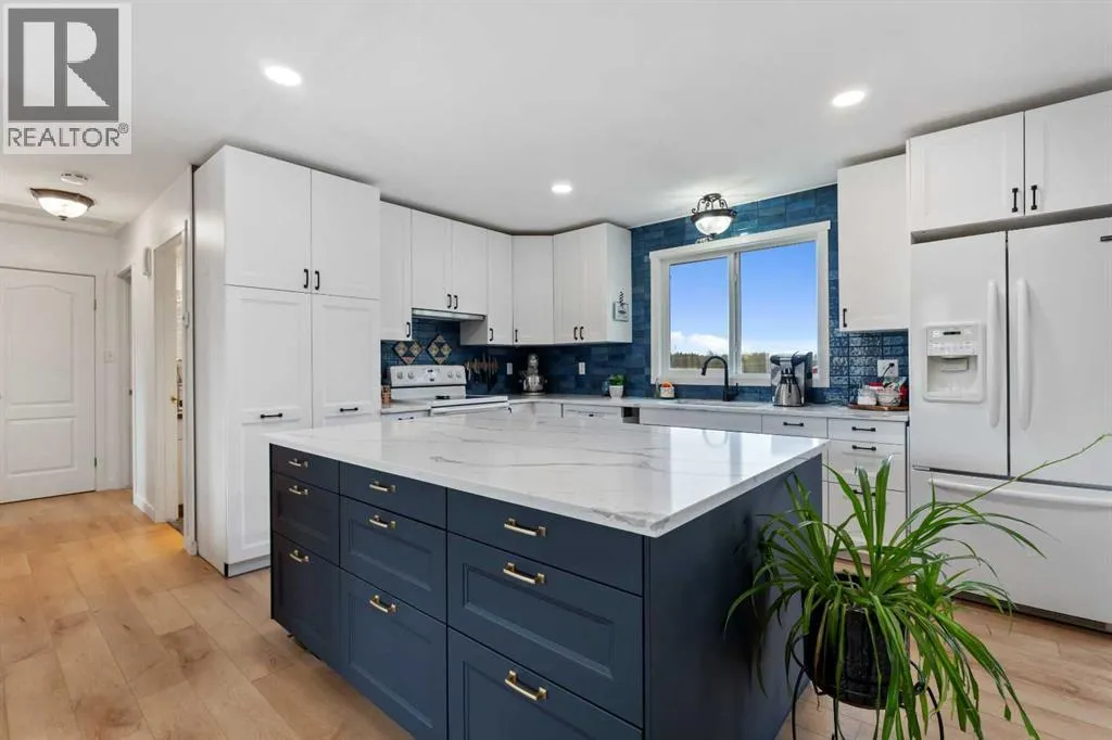 A large parcel of land to enjoy as a hobby and recreational opportunity. The original land, by this owner, was set up for farming opportunities. This 1350 sq' (above grade) bungalow is on a full basement with 4 bedrooms. It was a custom stick-built home by a local builder and was recently renovated upstairs. An open floor plan is perfect for enjoying the bright windows and the new kitchen. Handy storage surrounds the large island. There is also room for a large table. The front living room includes a gas fireplace and tall ceilings. Downstairs is a large family room, bedroom, or craft room, and great storage. Shingles were replaced in 2020, flooring in 2024, and windows and siding in 2023. The shop is 30' x 40' heated with in-floor heat or an optional wood stove. It has great concrete, plus a den or office. A cold lean-to on the side for additional large storage. An outdoor kitchen is adjacent to the greenhouse. A great gardening spot is out back. Waterlines are still available to the back (formerly for watering bowls). Utility revenue is included. The area is abundant with natural wildlife and privacy. Leave plenty of time to visit this one. (id:27476)