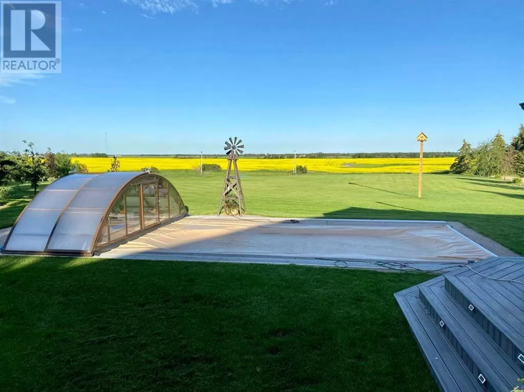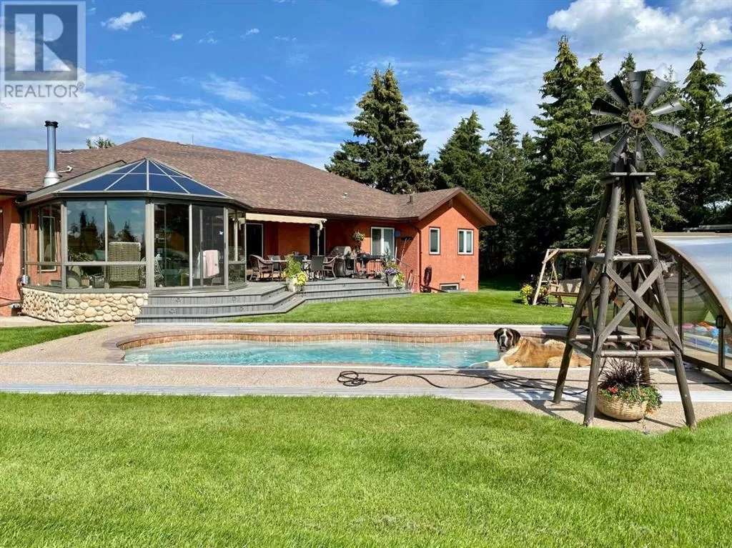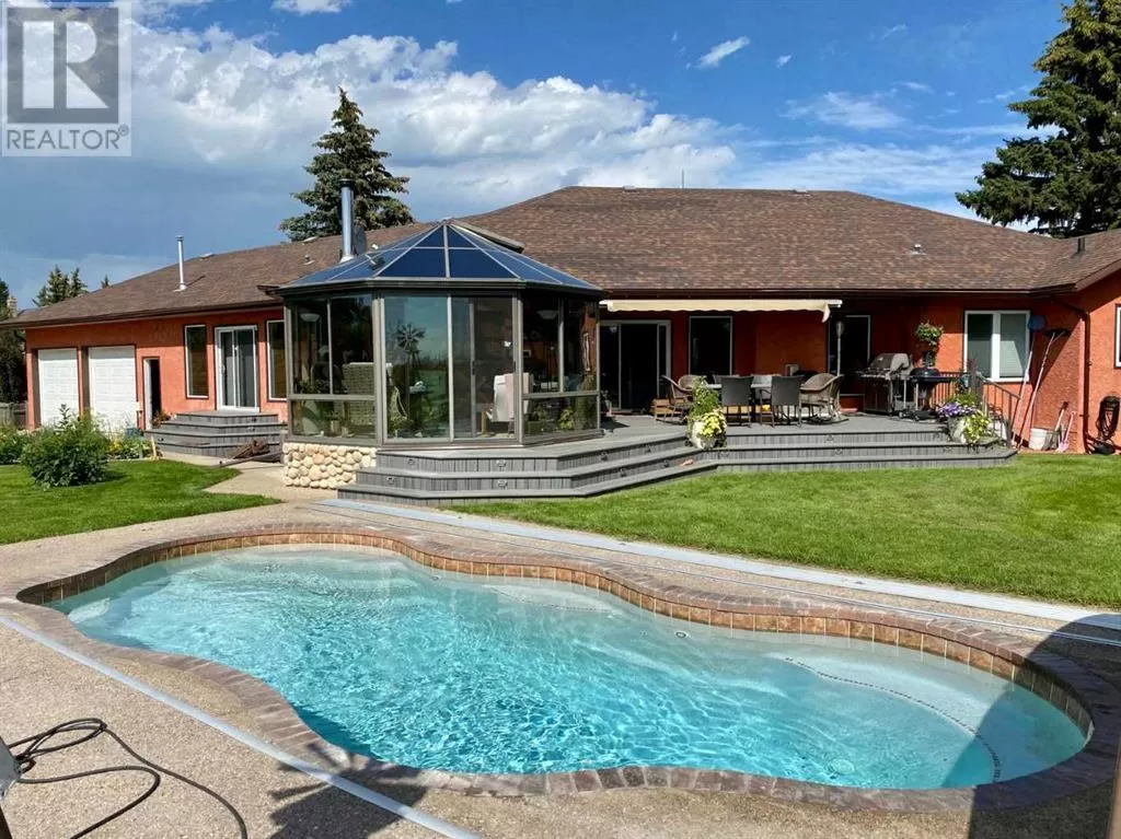 Stunning Acreage Retreat in Beaver County â Luxury Meets Country Living! A truly exceptional 11.5-acre property offering the perfect harmony of upscale comfort and peaceful rural living. Located just minutes from Viking, this custom-built home is ideal for those seeking space, privacy, and an elevated lifestyle surrounded by nature.As you enter through the private electronic gate, youâre greeted by a beautifully landscaped yard filled with mature trees, vibrant gardens, and a tranquil sense of seclusion. Thoughtfully designed for both relaxation and function, the property includes cross-fenced pasture, ideal for horses or other animals. A large heated quonset provides ample space for a workshop, storage, or hobby space, while a heated greenhouse with its own water supply extends the growing season well into Albertaâs cooler months. The outdoor living space is truly spectacular. An expansive composite deck features a natural gas hookup and a 16-foot electric retractable awning, making it the perfect setting for outdoor dining and entertaining. Gather with friends and family around the stunning stone-surrounded outdoor fireplace, or stroll through the irrigated vegetable and herb gardens, flowerbeds. Inside the home, you'll find over 2,450 square feet on the main level, plus a fully developed basement and a beautiful 250 sq ft four-season sunroom. The open-concept floor plan is ideal for modern family living, featuring a chefâs kitchen with stainless steel appliances that flows into a spacious dining area and cozy living room. With five bedrooms and three and a half bathrooms, thereâs room for everyone. The generous primary suite includes a walk-in closet and a spa-like ensuite with a jetted tub. The basement is built for entertainment and comfort, with a home theatre complete with a 120â projector screen â perfect for movie nights or sports fans â as well as a cold room, storage area, and dedicated home office. Comfort and practicality continue throughout the hom e with forced-air heating on the main floor, in-floor heating in the basement, central air conditioning. The attached two-car heated garage with a central drain is complemented by an additional two-vehicle carport. One of the crown jewels of this home is the high-end, four-season sunroom â 225 square feet of in-floor-heated space with a wood-burning fireplace, offering a cozy, light-filled retreat year-round. Just steps outside, enjoy your very own inground, heated saltwater pool complete with an automated cover, retractable dome, and insulated lines â allowing for all-season enjoyment and minimal maintenance. Property also features a secondary residence, with very minimal work this could be a great space for a nanny or caregiver. This one-of-a-kind property offers a rare opportunity to live the acreage lifestyle without compromising on quality or convenience. Whether youâre raising a family, entertaining guests, or simply seeking serenity in nature, this home truly has it all. (id:27476)