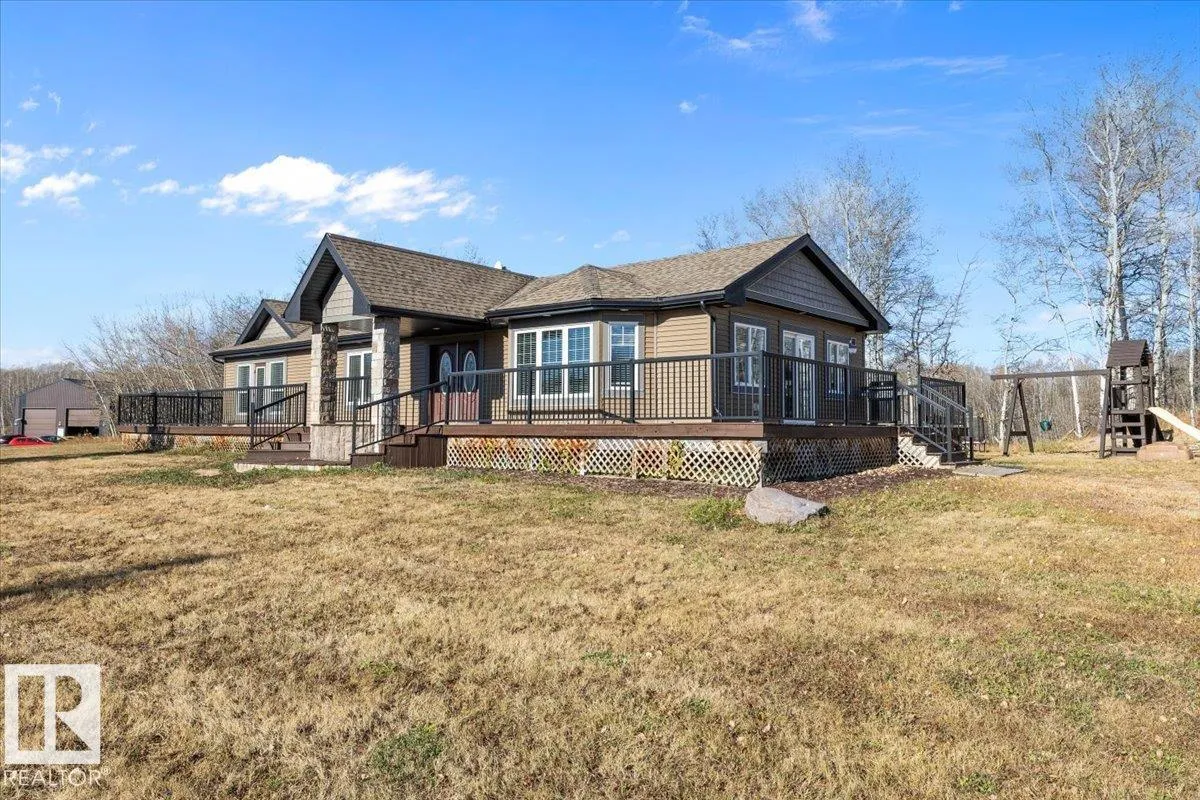 Welcome to 121-50514 Range Road 202 in the rural community of Beaver Creek Estates in Beaver County! Substantially upgraded 1560 sq/ft manufactured home with double detached garage on 2.84 acres! Open concept design of living room, dining area, and kitchen greets you upon entering this lovely home. Kitchen features: granite countertops with bar seating, corner pantry, and stainless steel appliances. Primary bedroom with 5pc ensuite, 2nd & 3rd bedrooms, 4pc bathroom, and laundry/utility room completes the main floor. Huge wrap around deck to enjoy those peaceful country evenings. Landscaped with large green space, firepit area, and play structure. Come enjoy the pride of ownership this acreage has to offer! (id:27476)
