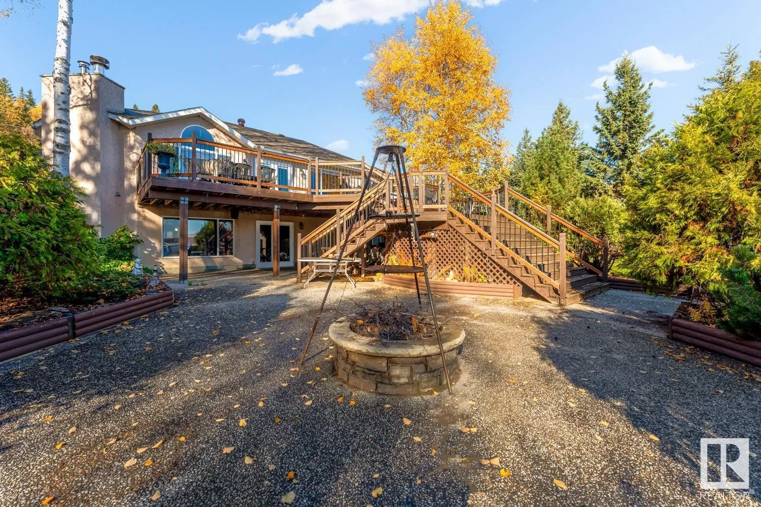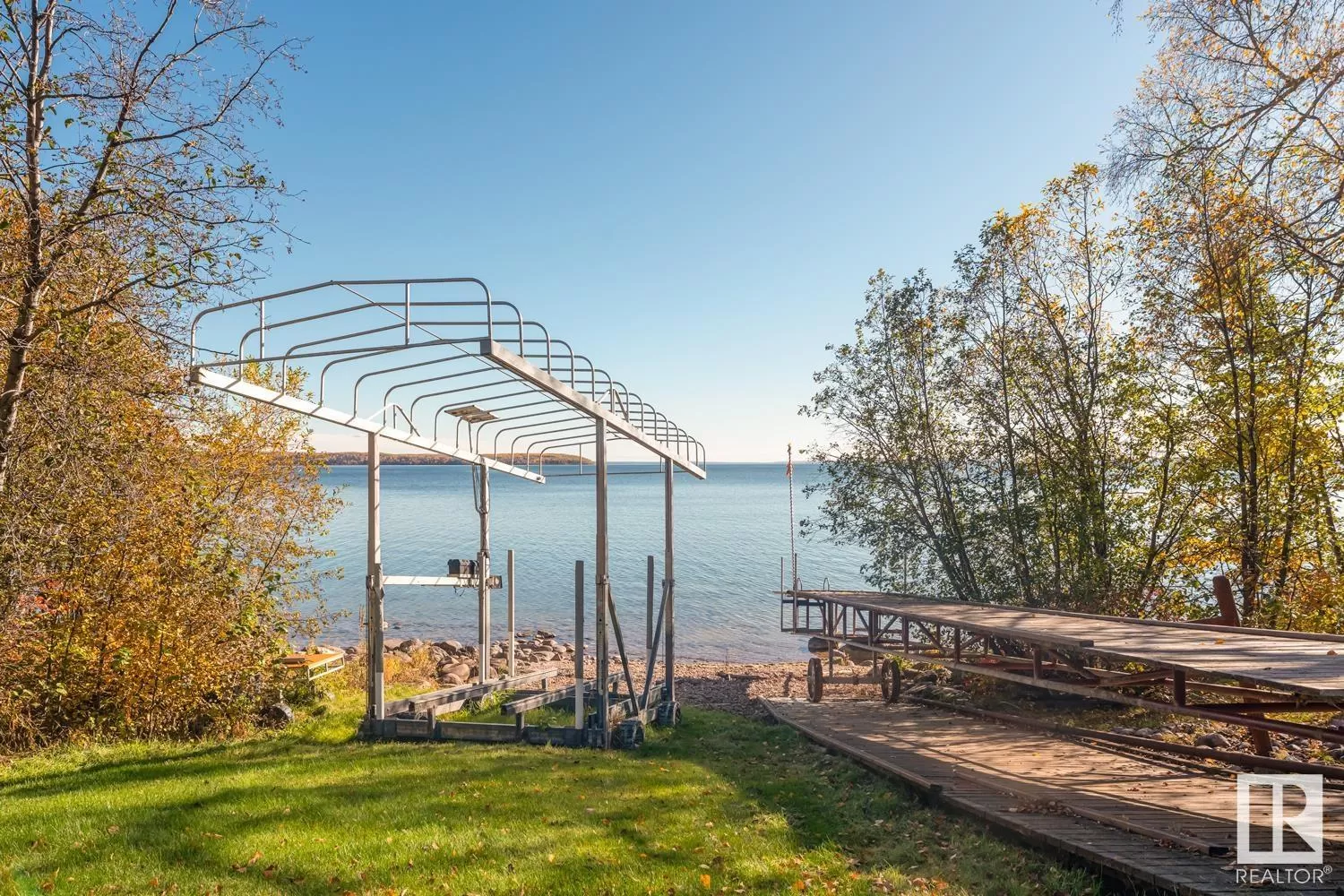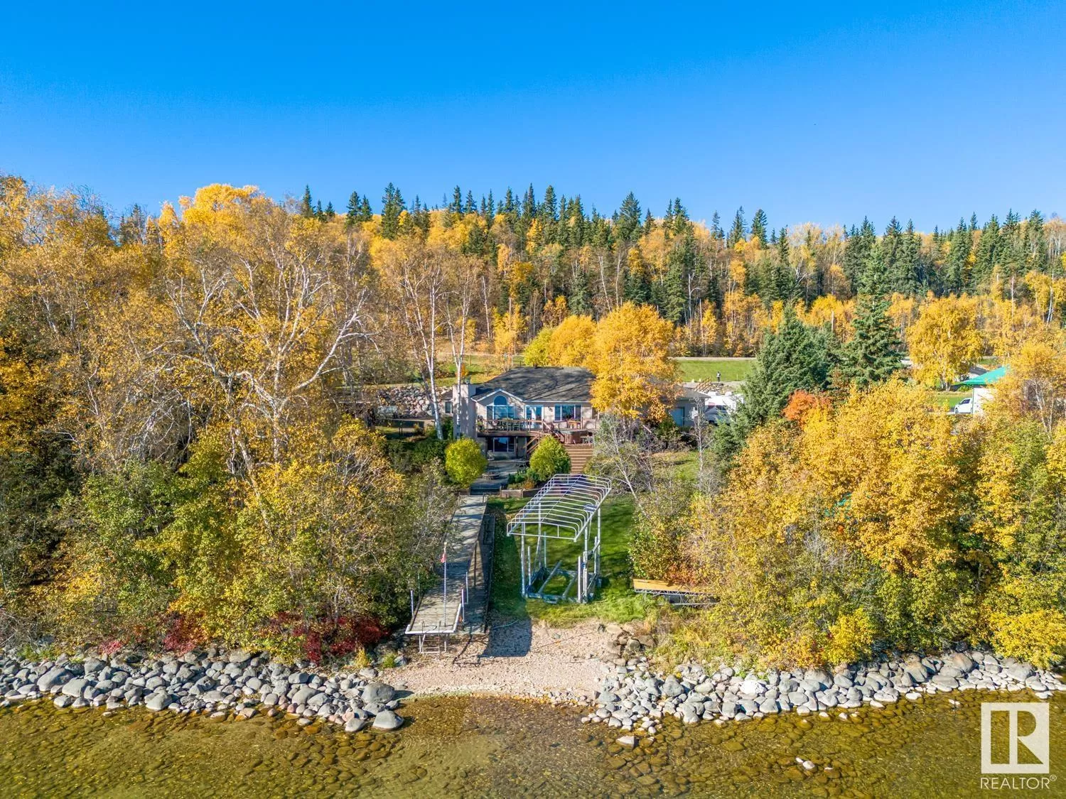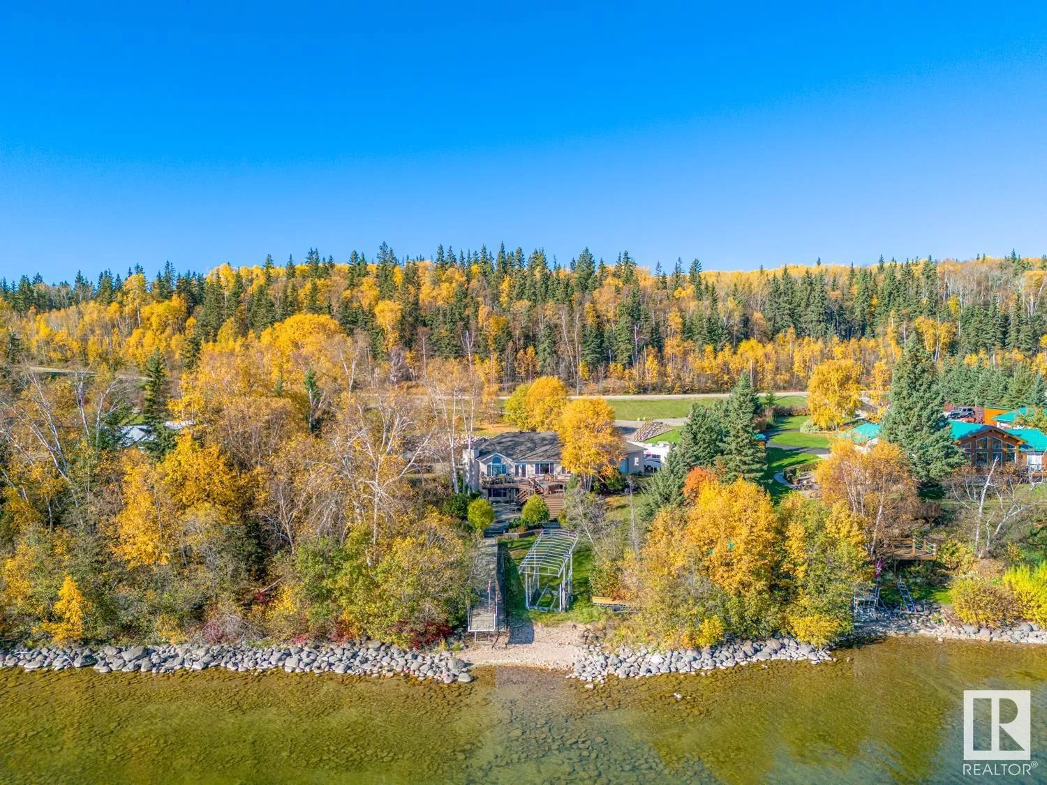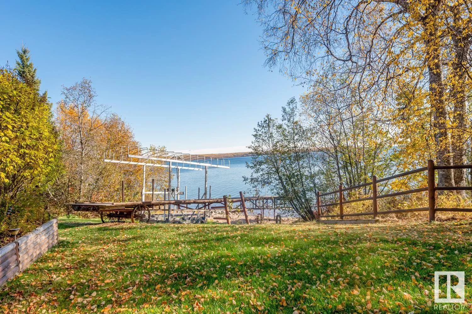 Lakefront Paradise! This incredible property is a rare find, just 100 feet from the water! This bungalow features a convenient walk-out design and offers over 2,250 sqft on each level. The home is adorned with ceramic tile and hardwood flooring, complemented by in-floor. You'll find four spacious bedrooms, including a grand primary suite with an beautiful ensuite. Both the kitchen and dining areas are generously sized. Enjoy stunning lake views through the tall windows spanning the kitchen, dining, and living rooms. Step outside through the double doors to the expansive 28' x 38' deck, or down to the 38' x 50' aggregate concrete pad, which includes a fire pit and cozy sitting area. The heated garage features a workbench, full fridge, and plenty of storage for tools and accessories. Additionally, there's a charming 10' x 12' guest cabin and a separate quad shed with an overhead door. Your dream home awaits you on the shores of Cold Lake - where you will be met with peace, tranquility and privacy (id:27476)