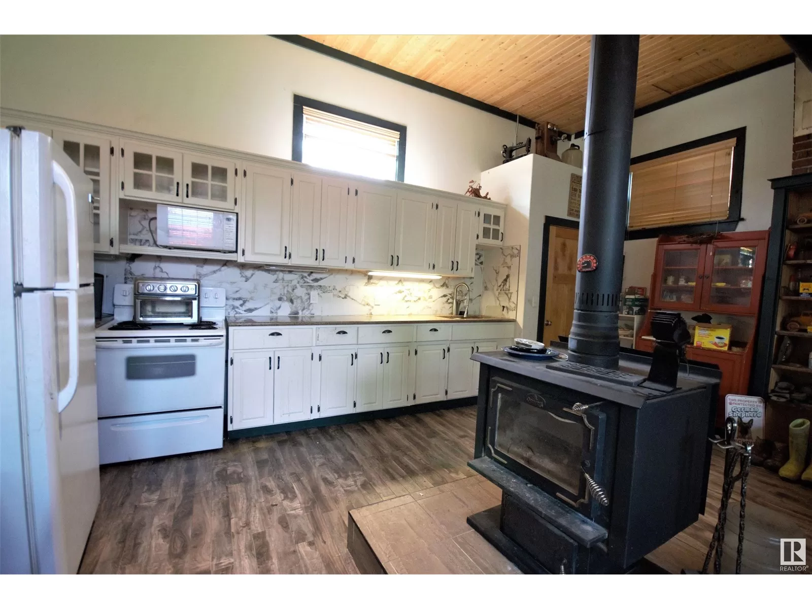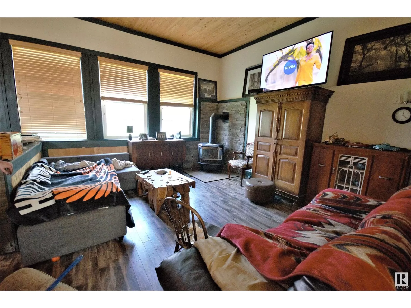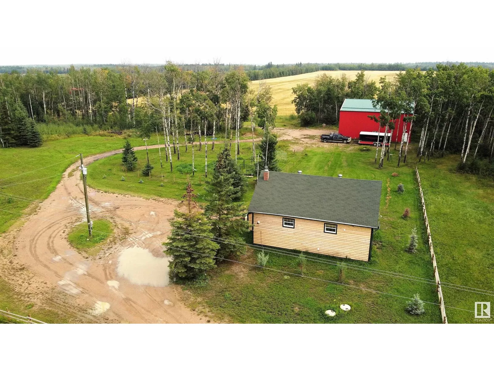 Let Nature Surround You! Two acreages for the price of one! Over 3 acres combined located just 1 1/2 miles from Manatokan Lake. Own a piece of history with this 1940s school converted to a year round home. Completely renovated throughout! This open concept living space includes solid wood kitchen cabinets, cozy wood stove, laminate flooring and laundry hookups. Raised living room has gas stove and large windows. 3 pc bath offers an oversized stand up shower. 40' X 50', 2013 shop is heated and includes a 16' overhead door, concrete floor, water/sewer, separate approach and driveway. Yard is partially fenced and includes 3 sheds and a treed, private RV parking area with power hook ups. Close to boating, fishing and easy commuting to oil activity. Invest Today! (id:27476)