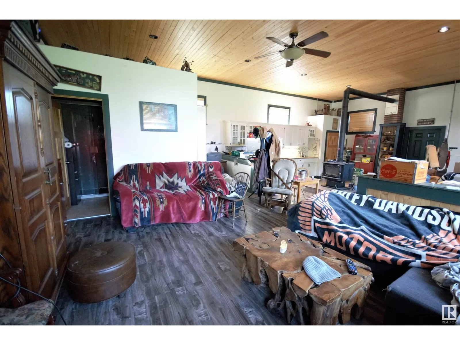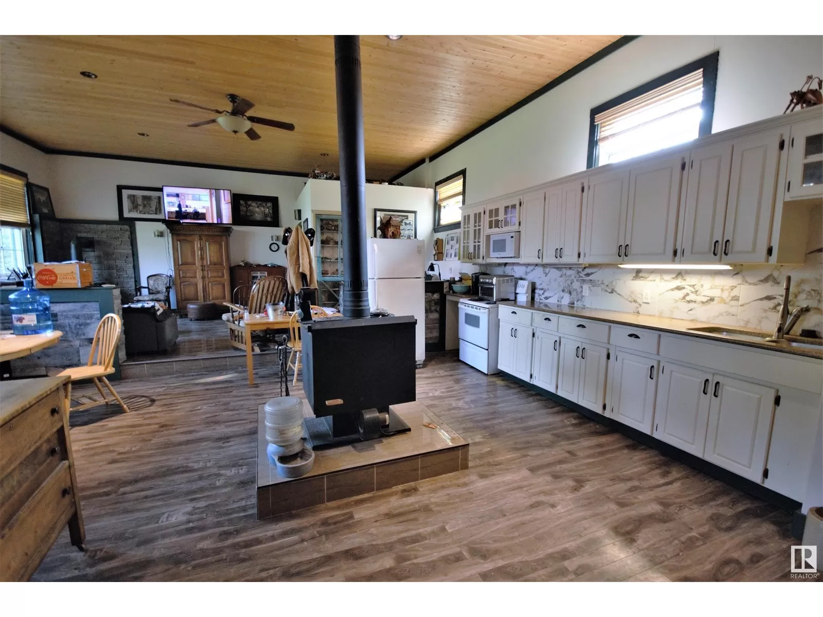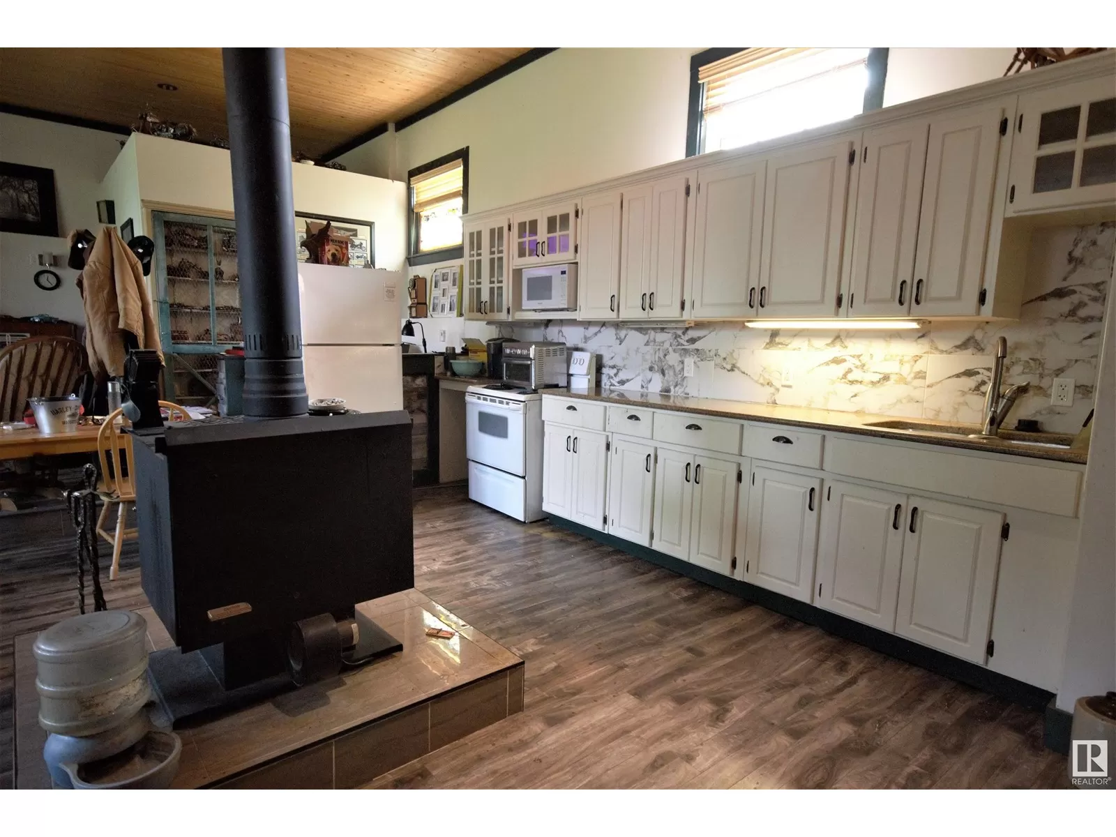 Let Nature Surround You! Two acreages for the price of one! Over 3 acres combined located just 1 1/2 miles from Manatokan Lake. Own a piece of history with this 1940s school converted to a year round home. Completely renovated throughout! This open concept living space includes solid wood kitchen cabinets, cozy wood stove, laminate flooring and laundry hookups. Raised living room has gas stove and large windows. 3 pc bath offers an oversized stand up shower. 40' X 50', 2013 shop is heated and includes a 16' overhead door, concrete floor, water/sewer, separate approach and driveway. Yard is partially fenced and includes 3 sheds and a treed, private RV parking area with power hook ups. Close to boating, fishing and easy commuting to oil activity. Invest Today! (id:27476)