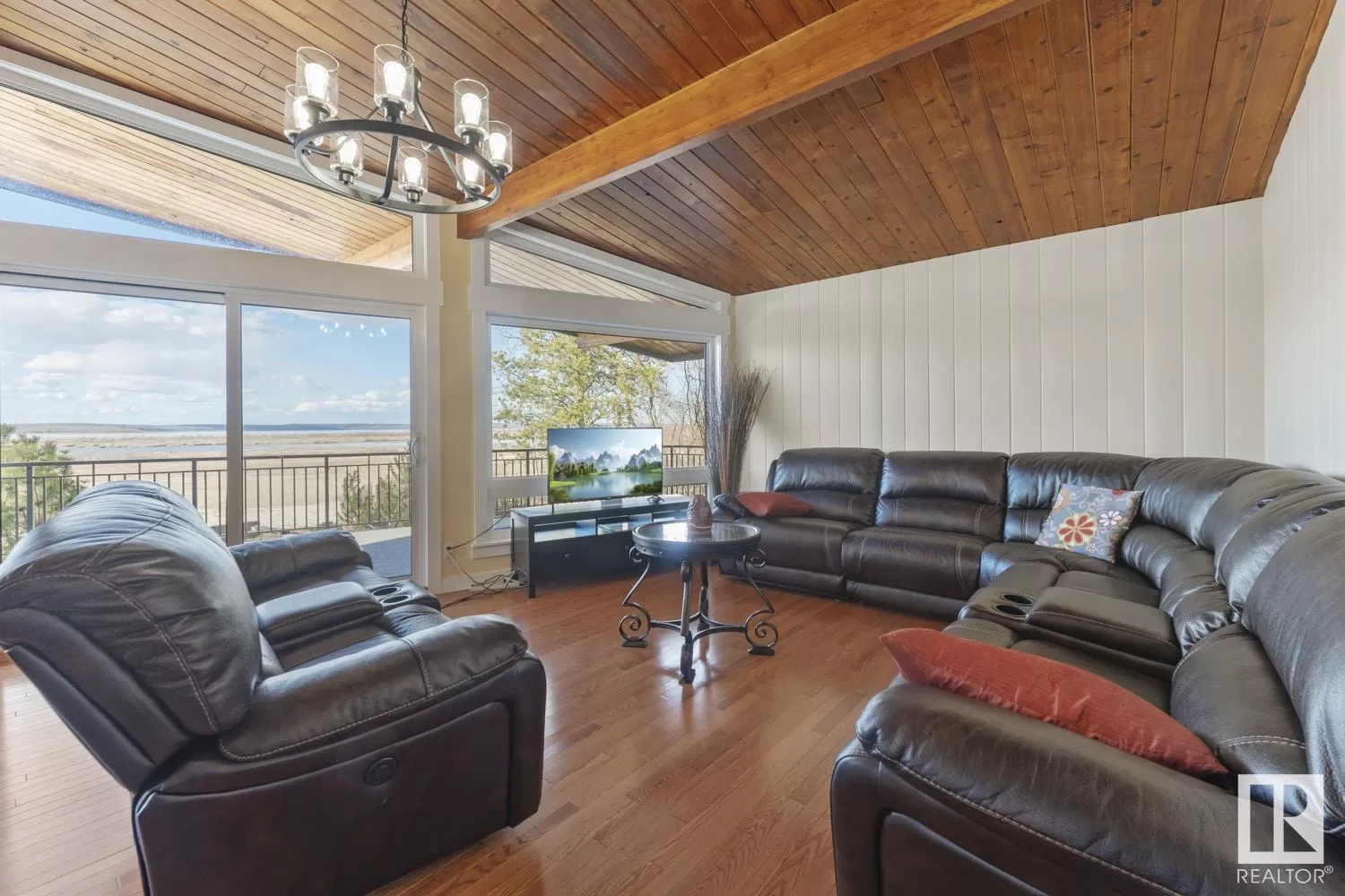 Custom built 1728 sq. ft. bungalow sitting on just over 1/2 an acre Lakefront Muriel Lake. This year round home has 3 bedrooms 2 bathrooms an open concept A frame style, which enhances all views of the lake. Property upgrades include 2 new bathrooms, new triple pane windows, new siding, new deck, fresh paint, new electrical and more.....Relax and enjoy sights and sound of the lake on the huge wrap around deck or enjoy the sandy beach. (id:27476)