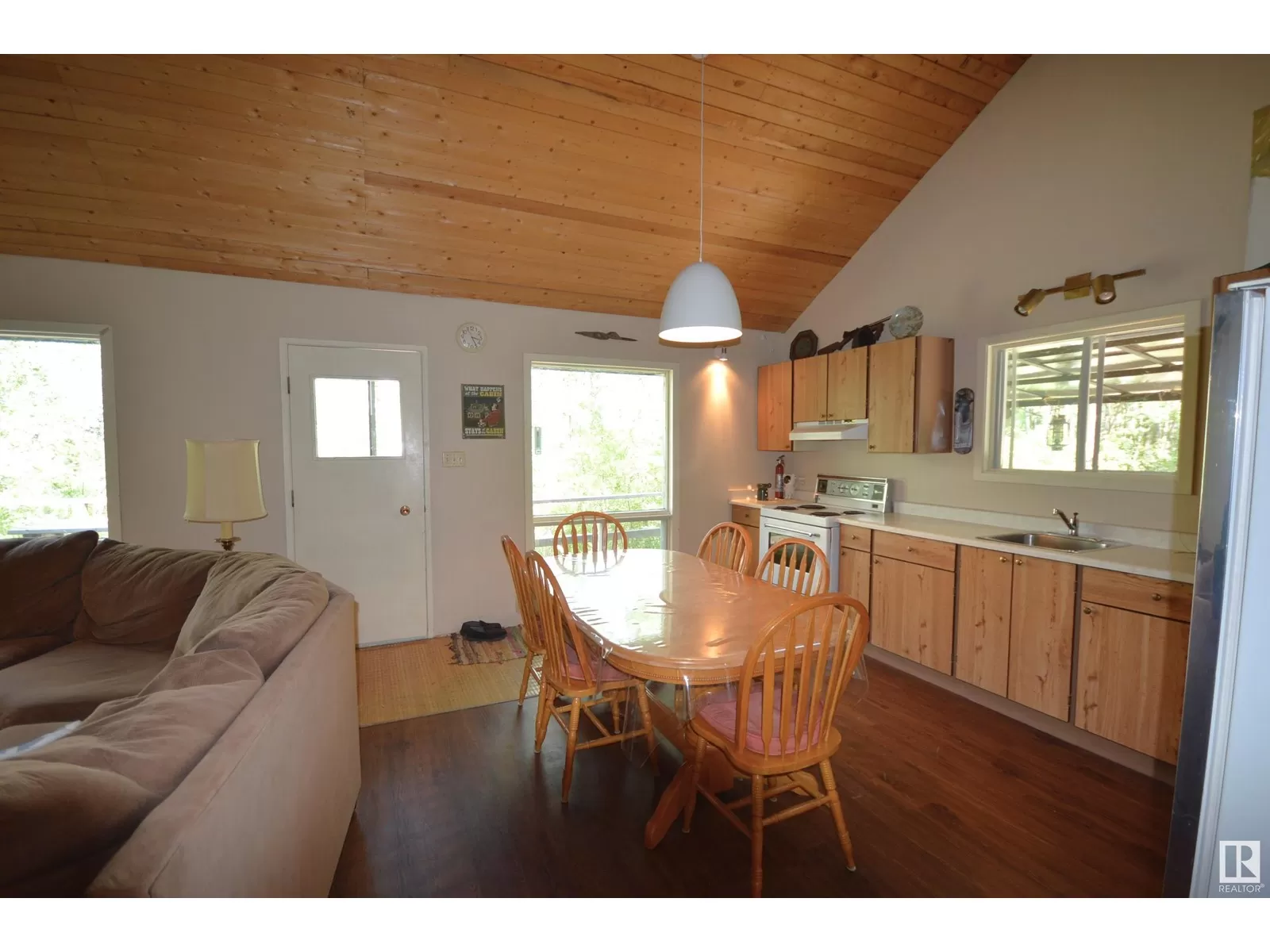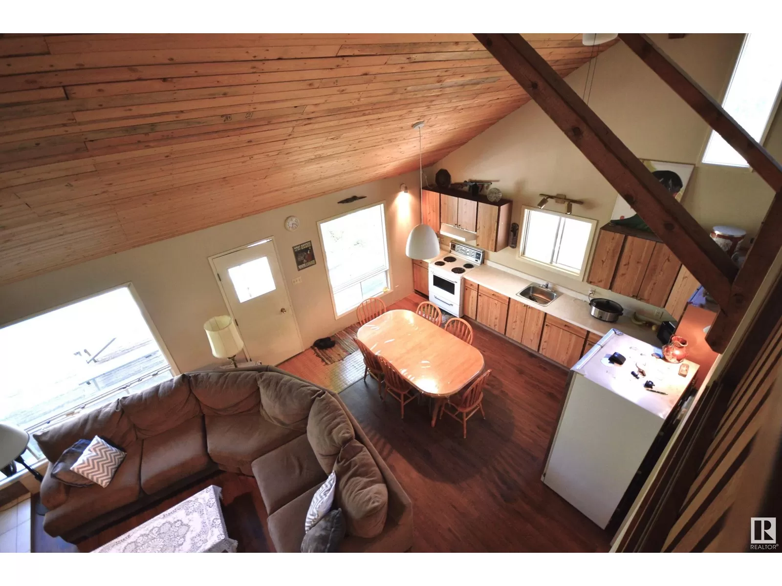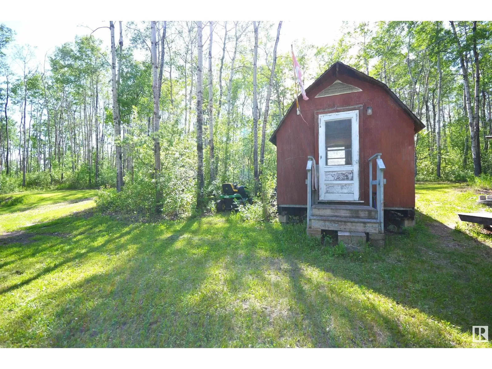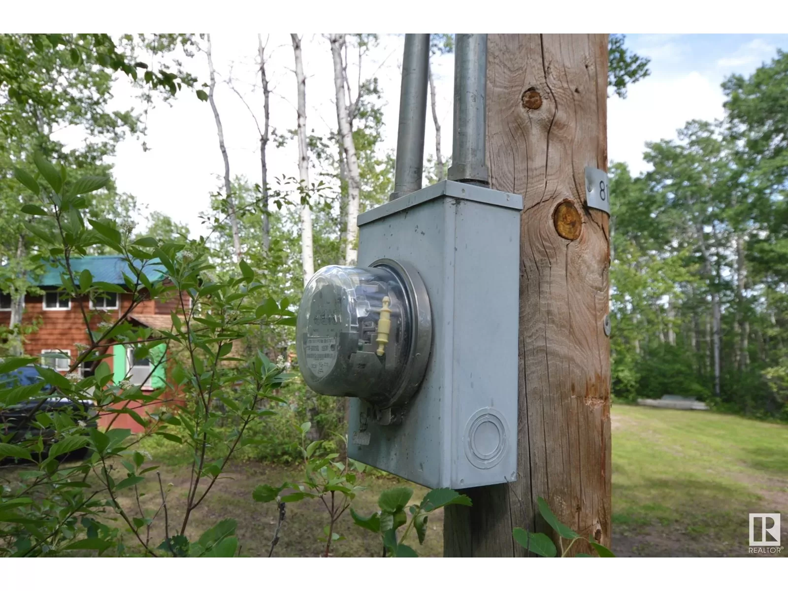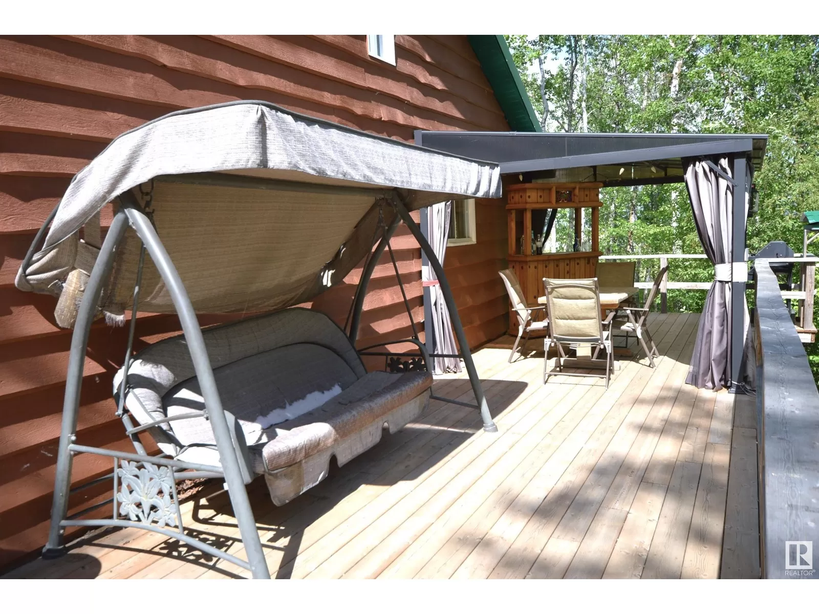 Recreational Cabin Retreat. ALL ITEMS STAY. Escape to nature, this charming 1.5-storey cabin, nestled on a private treed half-acre lot on the south side of Muriel Lake, just 2.5 hours NE Edmonton & 25 minutes south of Bonnyville. Built in 1980, offers rustic charm with modern comforts including power, a cistern water system, holding septic tank, and outhouse. Heated with the wood stove or electric space heaters. Inside you'll find a open concept full kitchen-family room, 1 main floor bedroom, bathroom, 2 upper-level bedrooms, all set under a vaulted cedar-shiplap ceiling that enhances the cabin's cozy atmosphere. Enjoy the expansive deck, tiki bar & table, with views of lake & treeD enclosed yard where there is a fire pit, room for campers/RVs, perfect for hosting family & friends! The lake's waterline has receded over the years, creating a 100-ft beachy area! POTENTIAL! The cabin sits on concrete pilings with easy crawlspace access, making it ideal for future winterization and YEAR ROUND LIVING. (id:27476)