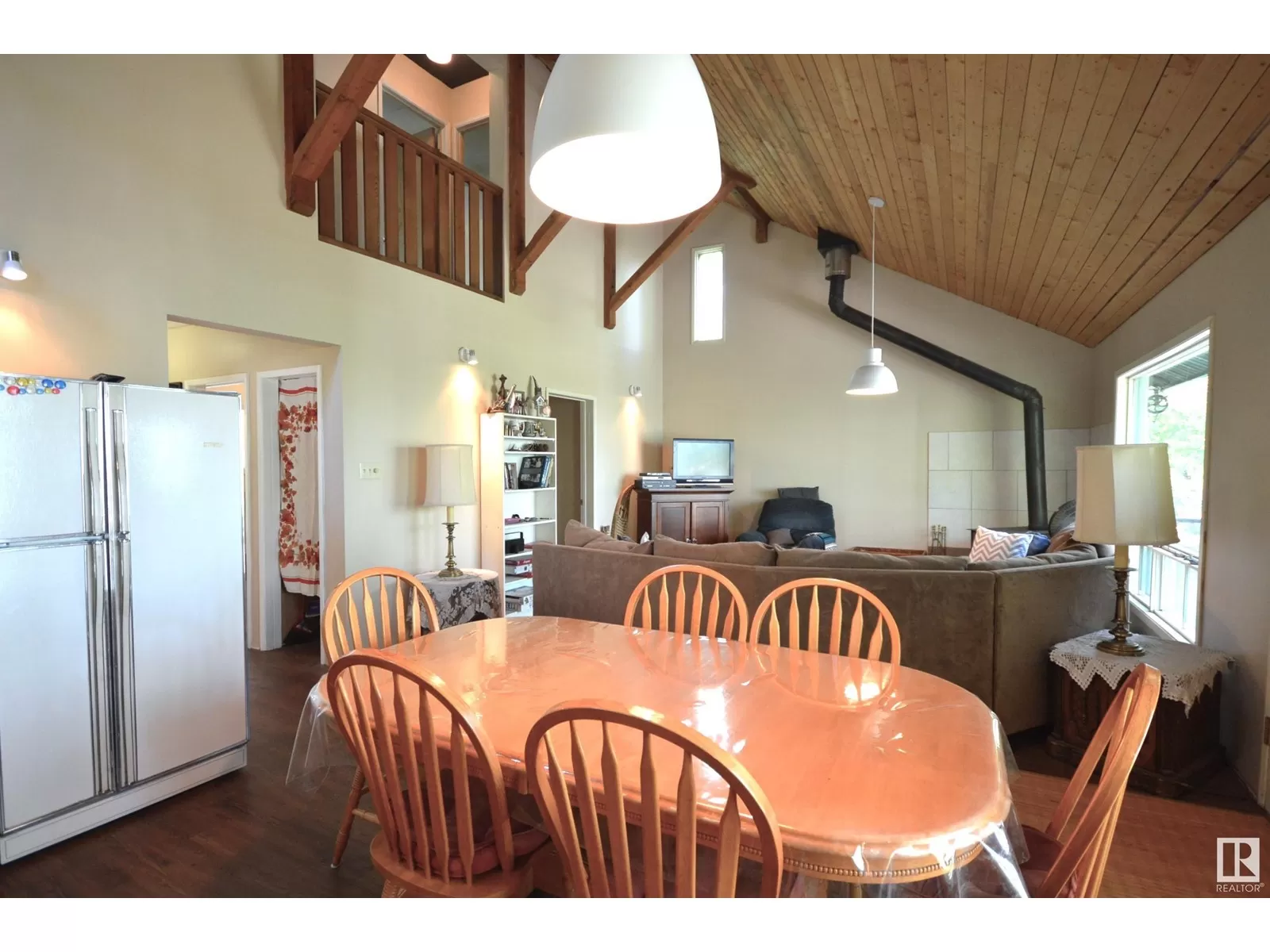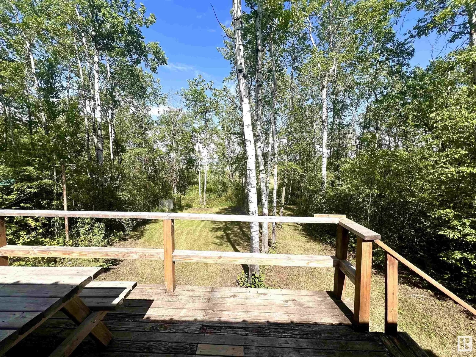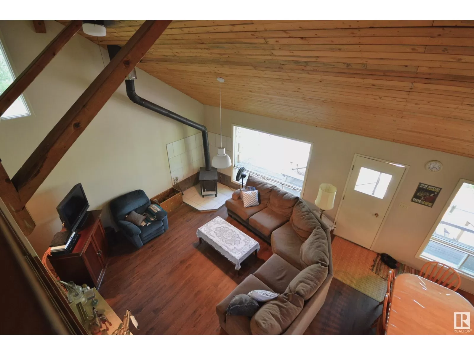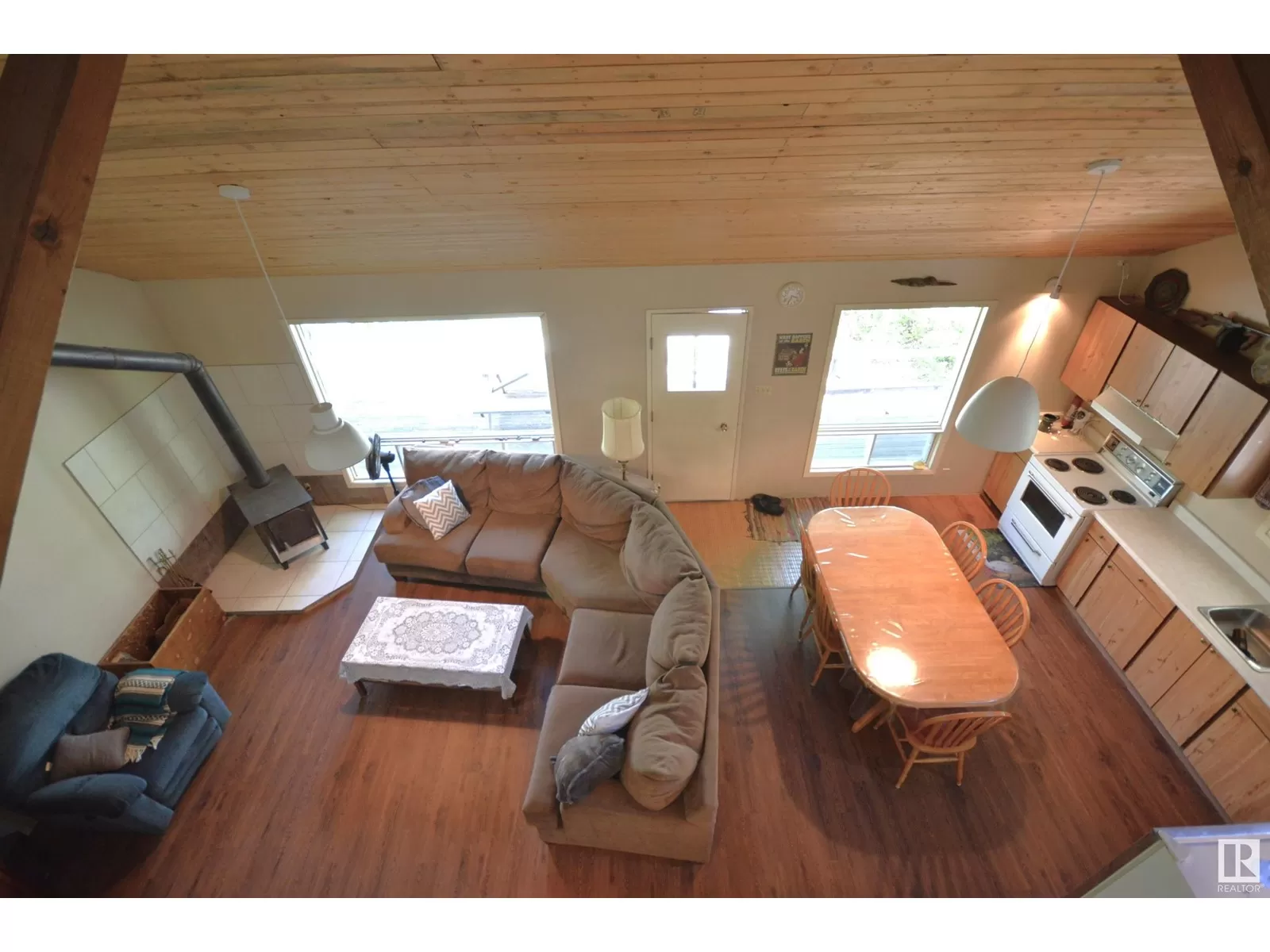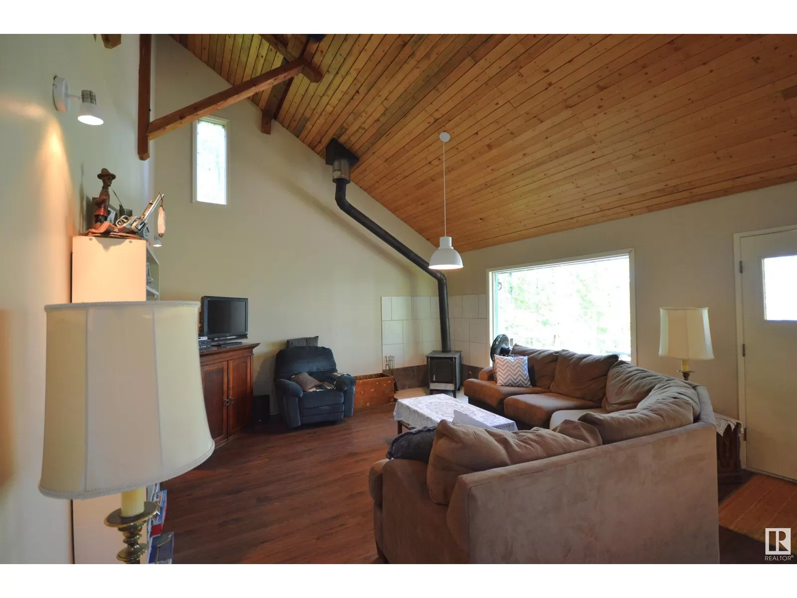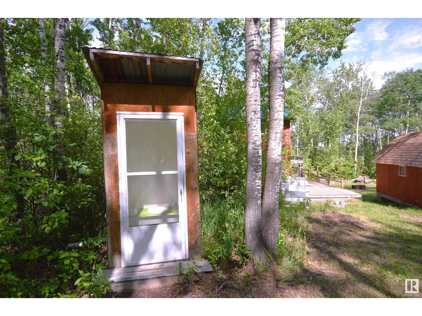 Recreational Cabin Retreat. ALL ITEMS STAY. Escape to nature, this charming 1.5-storey cabin, nestled on a private treed half-acre lot on the south side of Muriel Lake, just 2.5 hours NE Edmonton & 25 minutes south of Bonnyville. Built in 1980, offers rustic charm with modern comforts including power, a cistern water system, holding septic tank, and outhouse. Heated with the wood stove or electric space heaters. Inside you'll find a open concept full kitchen-family room, 1 main floor bedroom, bathroom, 2 upper-level bedrooms, all set under a vaulted cedar-shiplap ceiling that enhances the cabin's cozy atmosphere. Enjoy the expansive deck, tiki bar & table, with views of lake & treeD enclosed yard where there is a fire pit, room for campers/RVs, perfect for hosting family & friends! The lake's waterline has receded over the years, creating a 100-ft beachy area! POTENTIAL! The cabin sits on concrete pilings with easy crawlspace access, making it ideal for future winterization and YEAR ROUND LIVING. (id:27476)