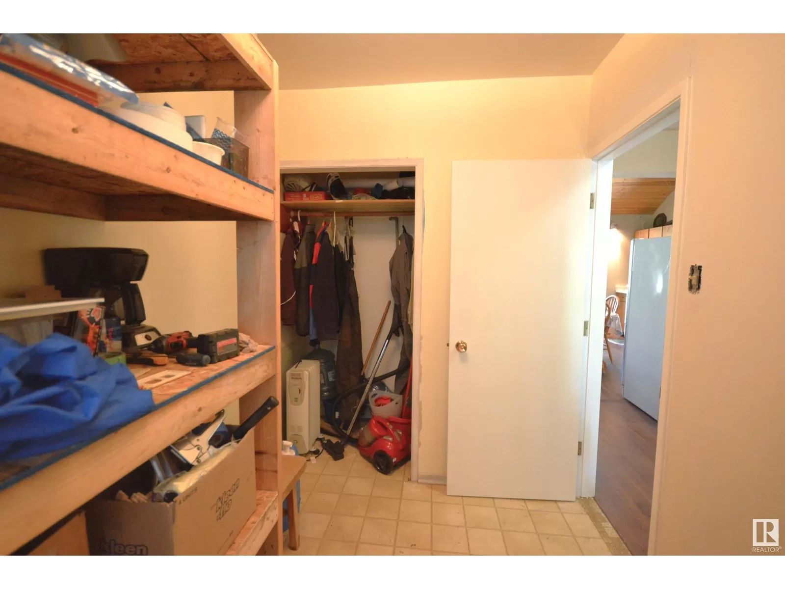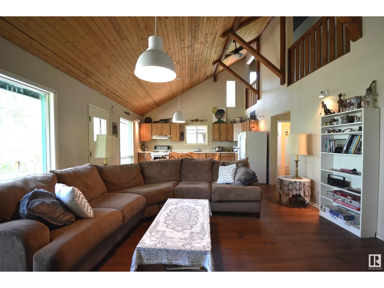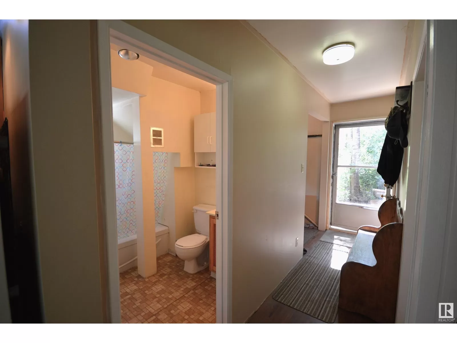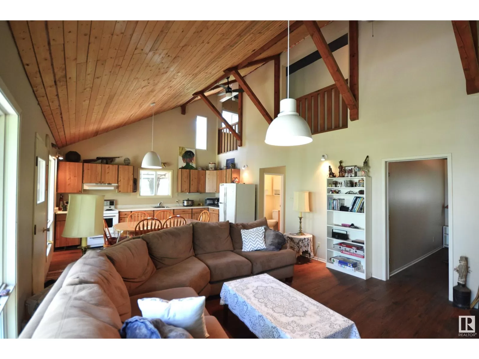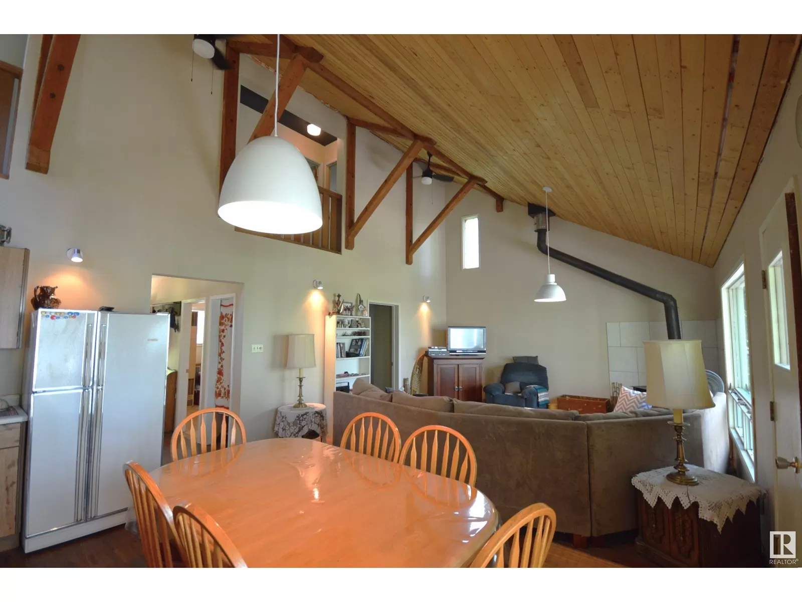 Recreational Cabin Retreat. ALL ITEMS STAY. Escape to nature, this charming 1.5-storey cabin, nestled on a private treed half-acre lot on the south side of Muriel Lake, just 2.5 hours NE Edmonton & 25 minutes south of Bonnyville. Built in 1980, offers rustic charm with modern comforts including power, a cistern water system, holding septic tank, and outhouse. Heated with the wood stove or electric space heaters. Inside you'll find a open concept full kitchen-family room, 1 main floor bedroom, bathroom, 2 upper-level bedrooms, all set under a vaulted cedar-shiplap ceiling that enhances the cabin's cozy atmosphere. Enjoy the expansive deck, tiki bar & table, with views of lake & treeD enclosed yard where there is a fire pit, room for campers/RVs, perfect for hosting family & friends! The lake's waterline has receded over the years, creating a 100-ft beachy area! POTENTIAL! The cabin sits on concrete pilings with easy crawlspace access, making it ideal for future winterization and YEAR ROUND LIVING. (id:27476)