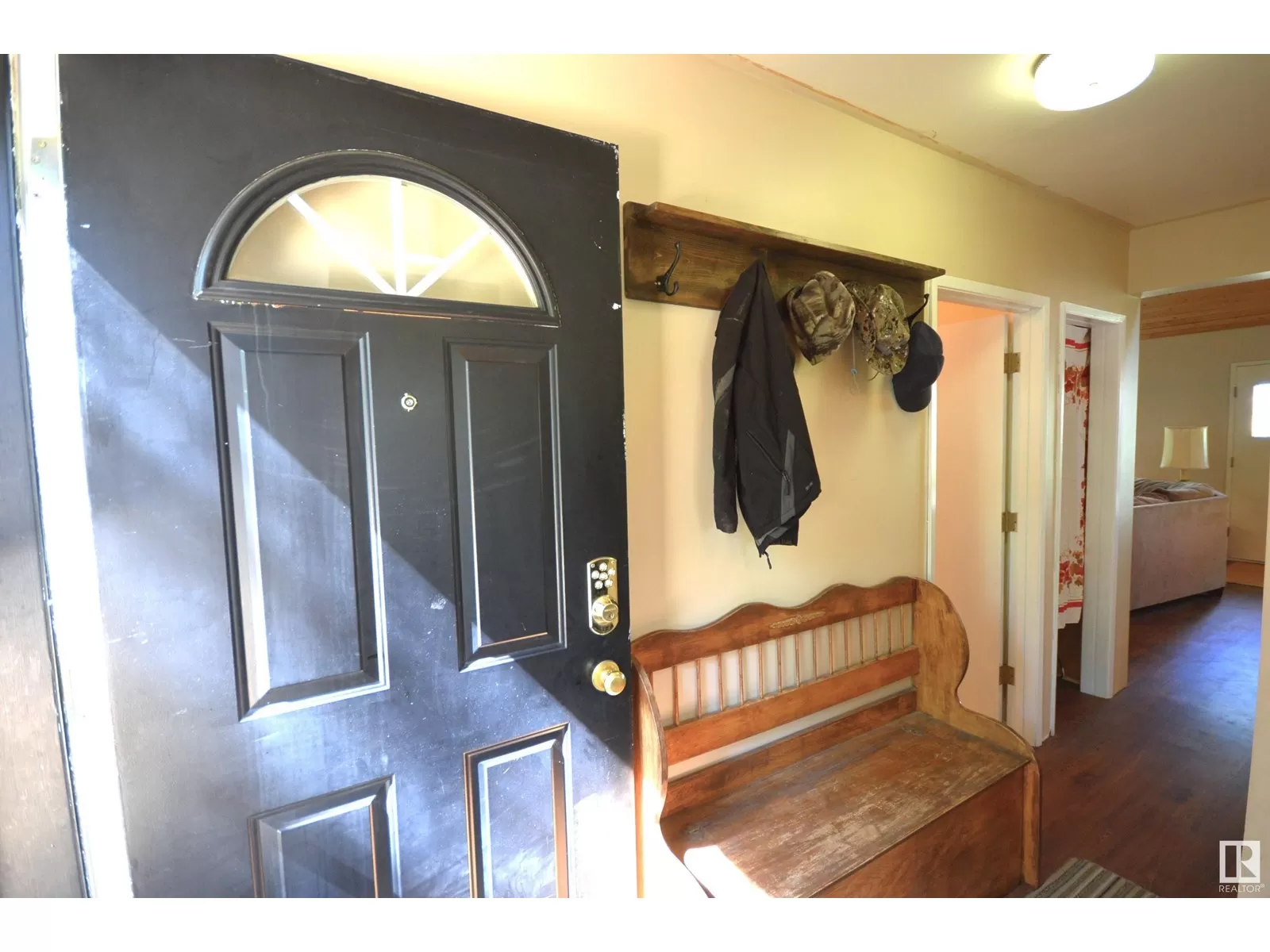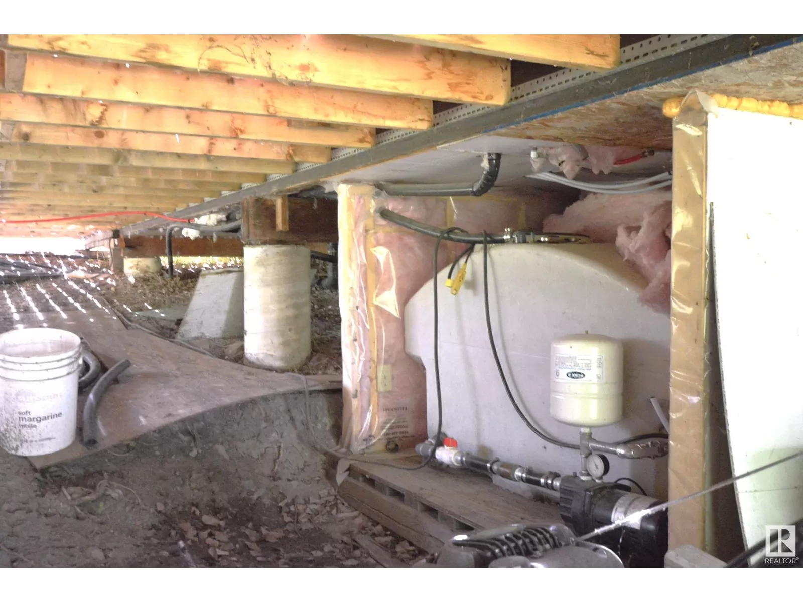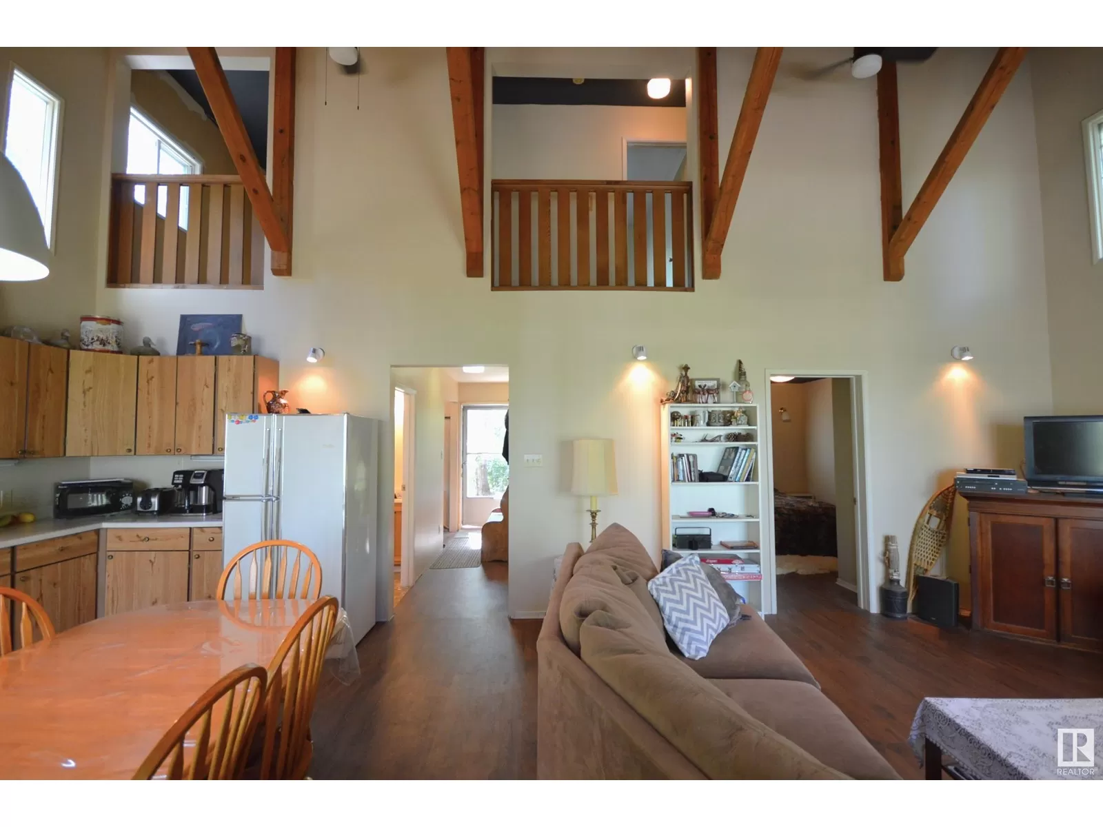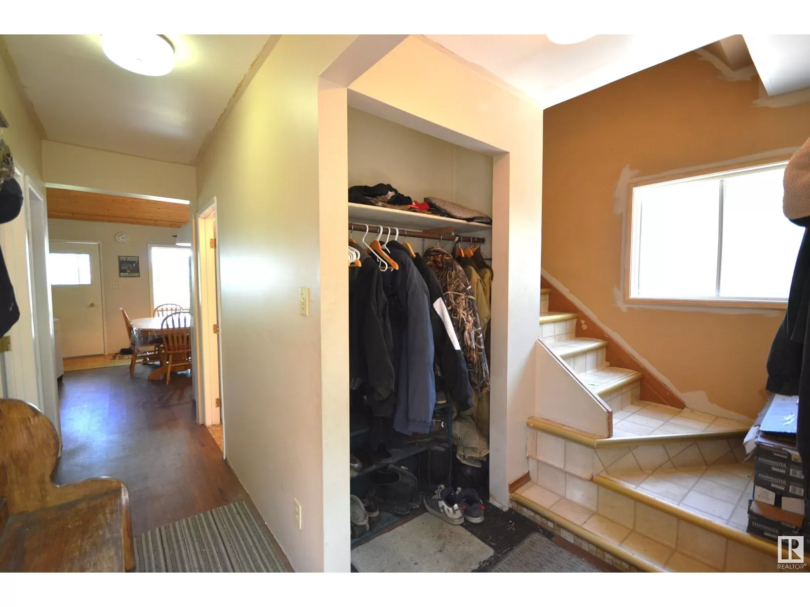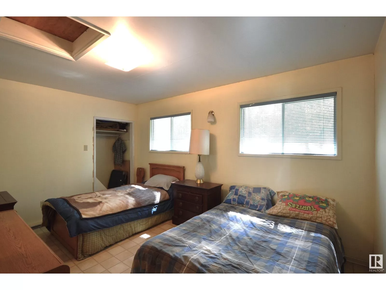 Recreational Cabin Retreat. ALL ITEMS STAY. Escape to nature, this charming 1.5-storey cabin, nestled on a private treed half-acre lot on the south side of Muriel Lake, just 2.5 hours NE Edmonton & 25 minutes south of Bonnyville. Built in 1980, offers rustic charm with modern comforts including power, a cistern water system, holding septic tank, and outhouse. Heated with the wood stove or electric space heaters. Inside you'll find a open concept full kitchen-family room, 1 main floor bedroom, bathroom, 2 upper-level bedrooms, all set under a vaulted cedar-shiplap ceiling that enhances the cabin's cozy atmosphere. Enjoy the expansive deck, tiki bar & table, with views of lake & treeD enclosed yard where there is a fire pit, room for campers/RVs, perfect for hosting family & friends! The lake's waterline has receded over the years, creating a 100-ft beachy area! POTENTIAL! The cabin sits on concrete pilings with easy crawlspace access, making it ideal for future winterization and YEAR ROUND LIVING. (id:27476)