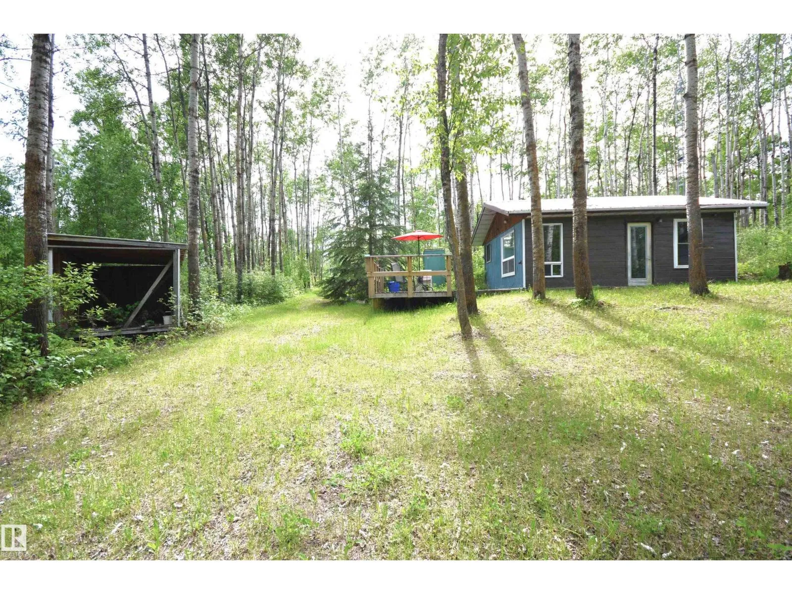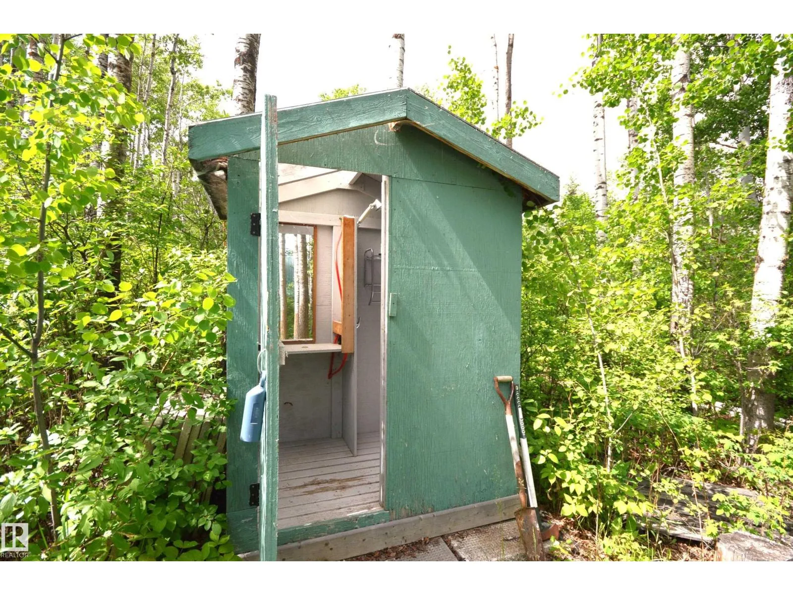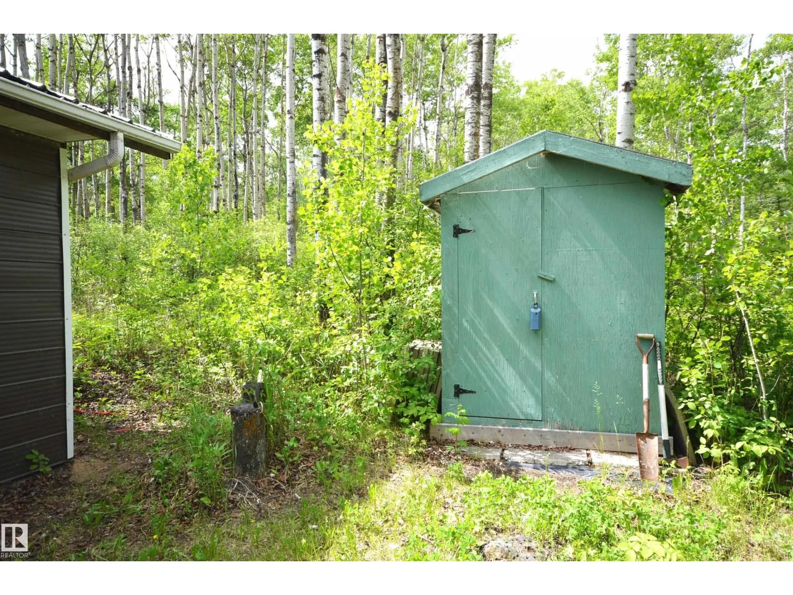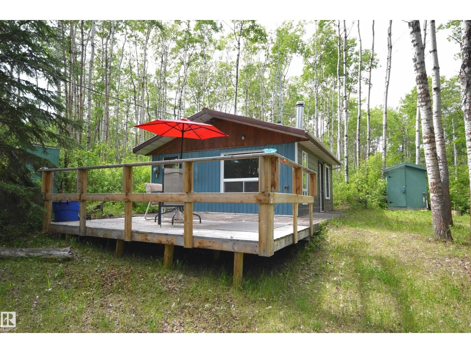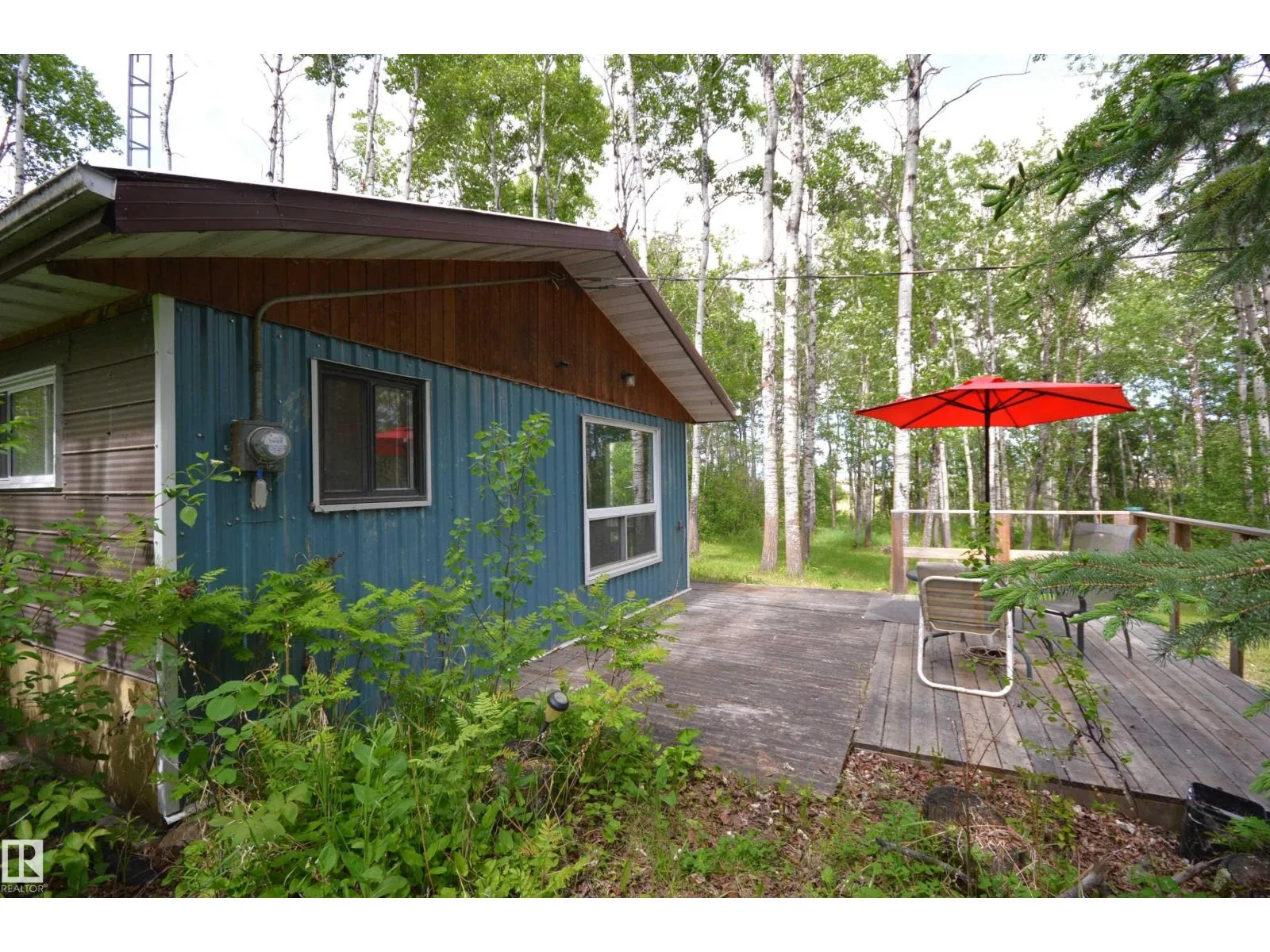Run away to this cutesy little piece of nature's 'cabin in the woods' with just enough amenities that you're not that remote - but you feel like it! This 400 sq ft space is built on a concrete slab with 40 amp power, kitchen, family room, large bedroom and an outhouse (no bathroom). Heated with the wood stove and electric space heaters. The cistern has the water pump to serve the kitchen & shower shed (summer useable only). Wood framed with a deck, exterior tin & roof, complete with eavestrough & down spouts. Open shed functions to keep items 'out of site' and dry from the weather. Tower can be used for cell phone booster or internet WAN/hub. The receded water from the lake has left with plenty of sandy beach and extensive recreation trails: quadding, hiking, horse rides, biking, etc. The lake is very clean, non-outboard boats are excellent here. Yard is cleared with perimeter trees left giving privacy and wind break. Just 2.5 hrs from Edmt or 25m south of Bonnyville. Pack up and start the care . . . (id:27476)