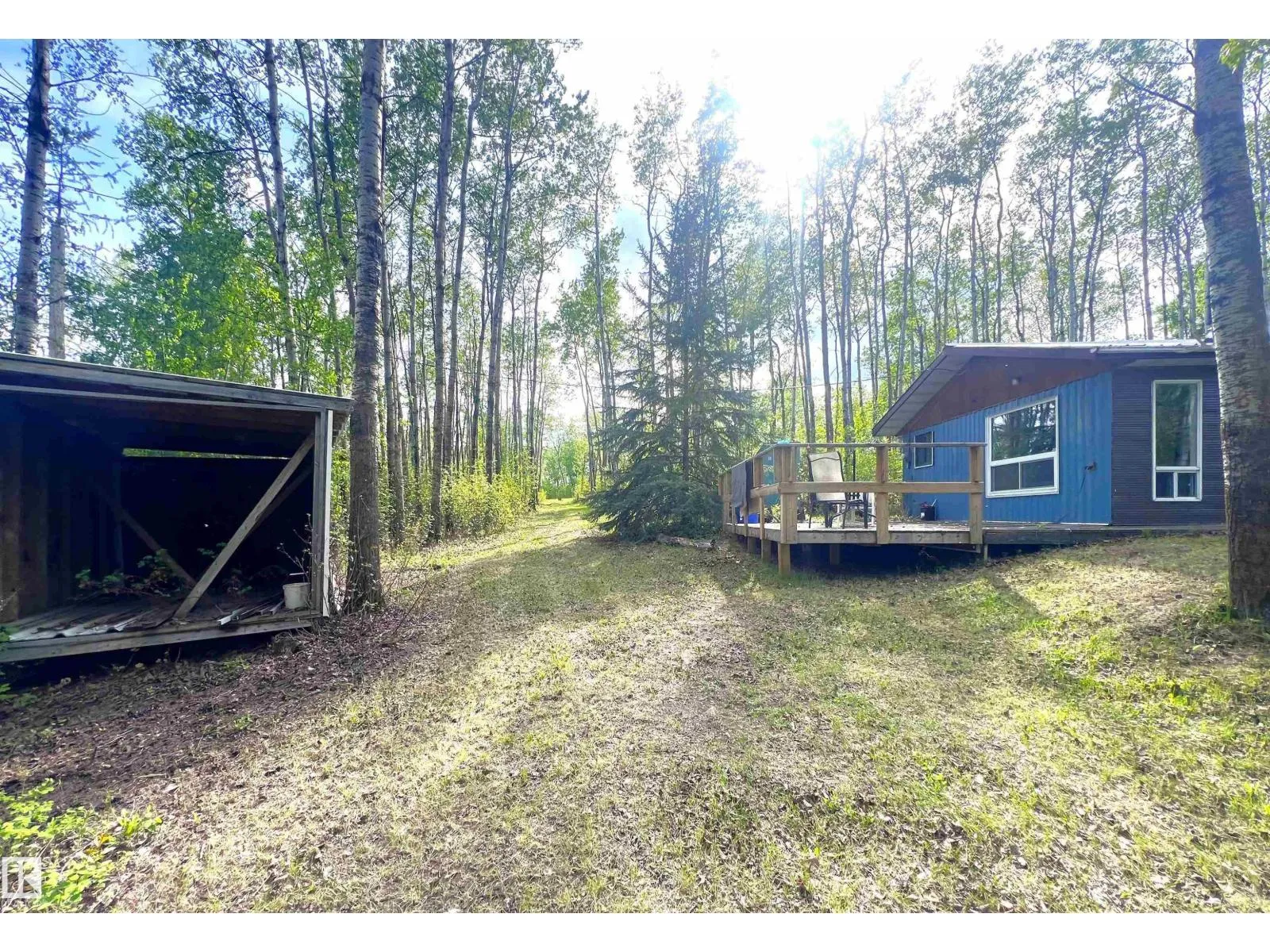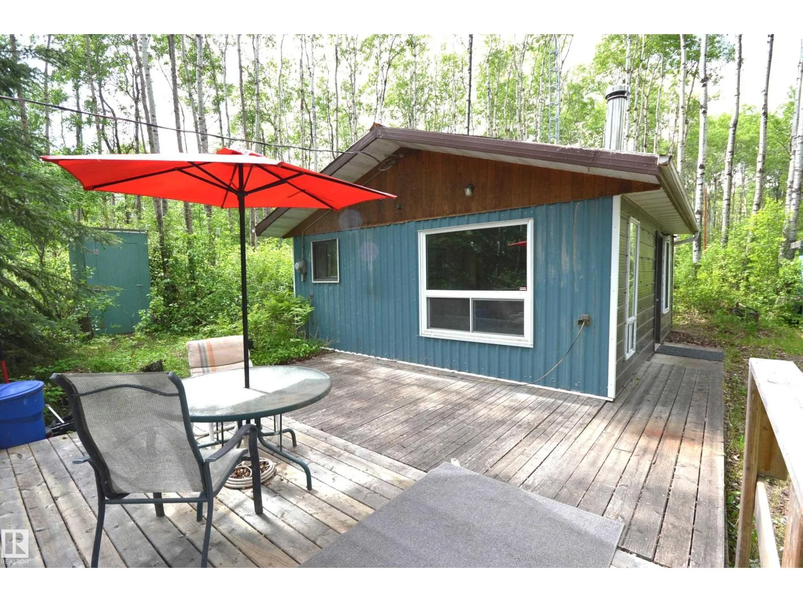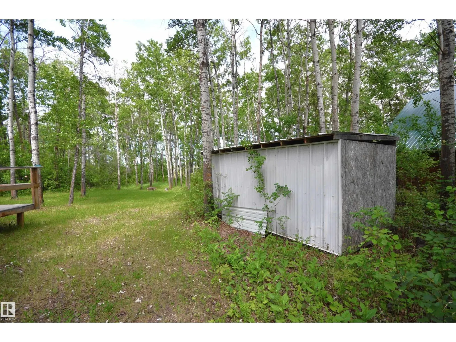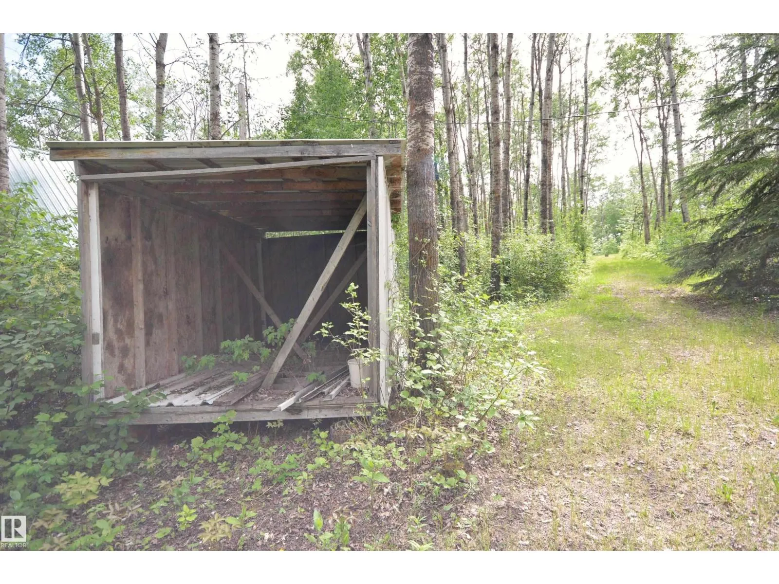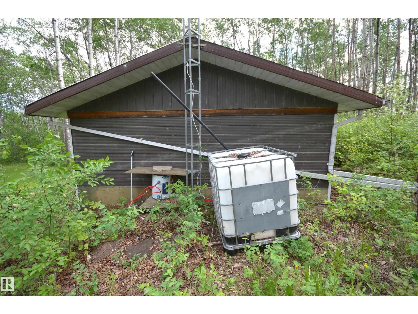 Run away to this cutesy little piece of nature's 'cabin in the woods' with just enough amenities that you're not that remote - but you feel like it! This 400 sq ft space is built on a concrete slab with 40 amp power, kitchen, family room, large bedroom and an outhouse (no bathroom). Heated with the wood stove and electric space heaters. The cistern has the water pump to serve the kitchen & shower shed (summer useable only). Wood framed with a deck, exterior tin & roof, complete with eavestrough & down spouts. Open shed functions to keep items 'out of site' and dry from the weather. Tower can be used for cell phone booster or internet WAN/hub. The receded water from the lake has left with plenty of sandy beach and extensive recreation trails: quadding, hiking, horse rides, biking, etc. The lake is very clean, non-outboard boats are excellent here. Yard is cleared with perimeter trees left giving privacy and wind break. Just 2.5 hrs from Edmt or 25m south of Bonnyville. Pack up and start the care . . . (id:27476)