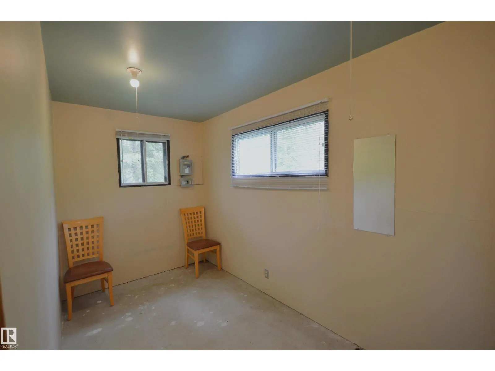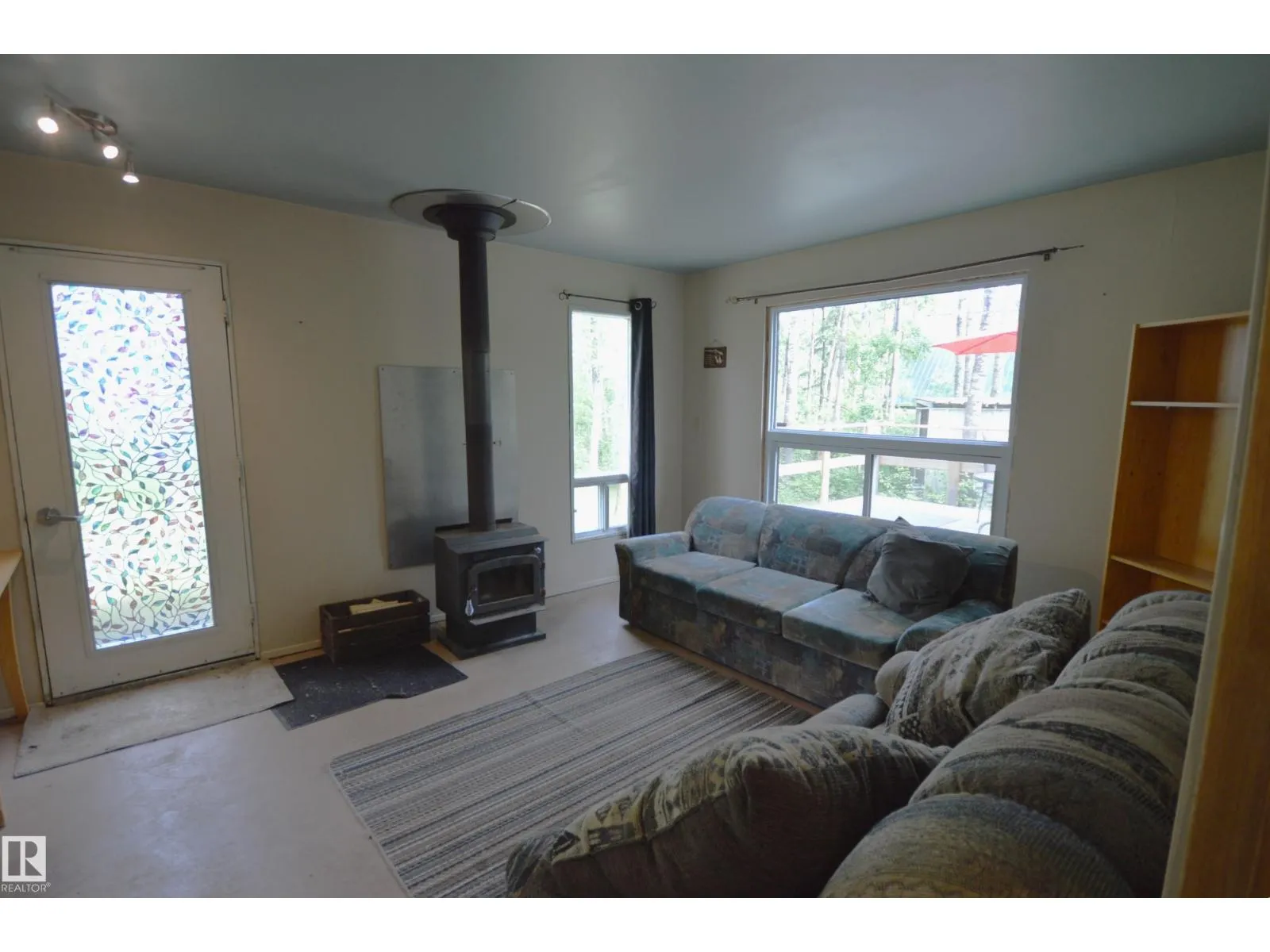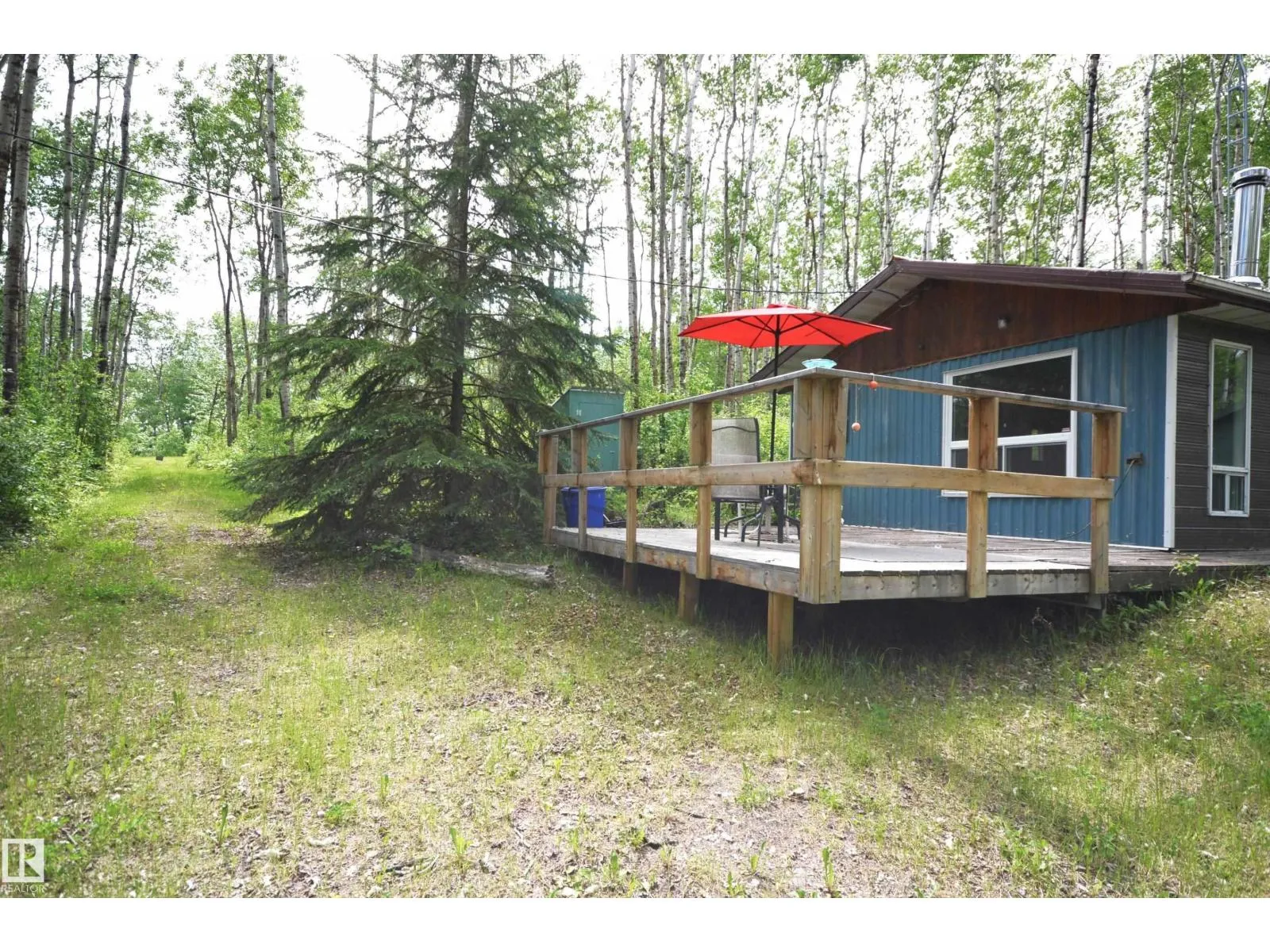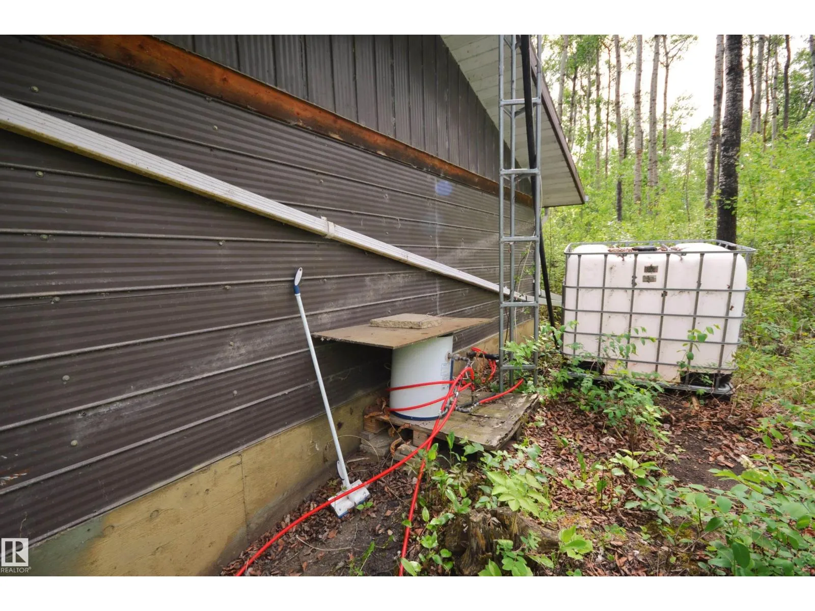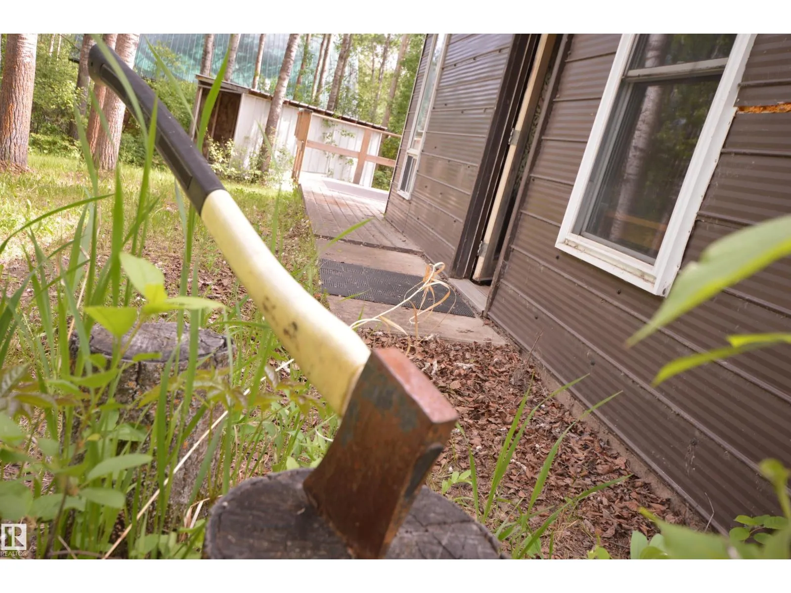 Run away to this cutesy little piece of nature's 'cabin in the woods' with just enough amenities that you're not that remote - but you feel like it! This 400 sq ft space is built on a concrete slab with 40 amp power, kitchen, family room, large bedroom and an outhouse (no bathroom). Heated with the wood stove and electric space heaters. The cistern has the water pump to serve the kitchen & shower shed (summer useable only). Wood framed with a deck, exterior tin & roof, complete with eavestrough & down spouts. Open shed functions to keep items 'out of site' and dry from the weather. Tower can be used for cell phone booster or internet WAN/hub. The receded water from the lake has left with plenty of sandy beach and extensive recreation trails: quadding, hiking, horse rides, biking, etc. The lake is very clean, non-outboard boats are excellent here. Yard is cleared with perimeter trees left giving privacy and wind break. Just 2.5 hrs from Edmt or 25m south of Bonnyville. Pack up and start the care . . . (id:27476)