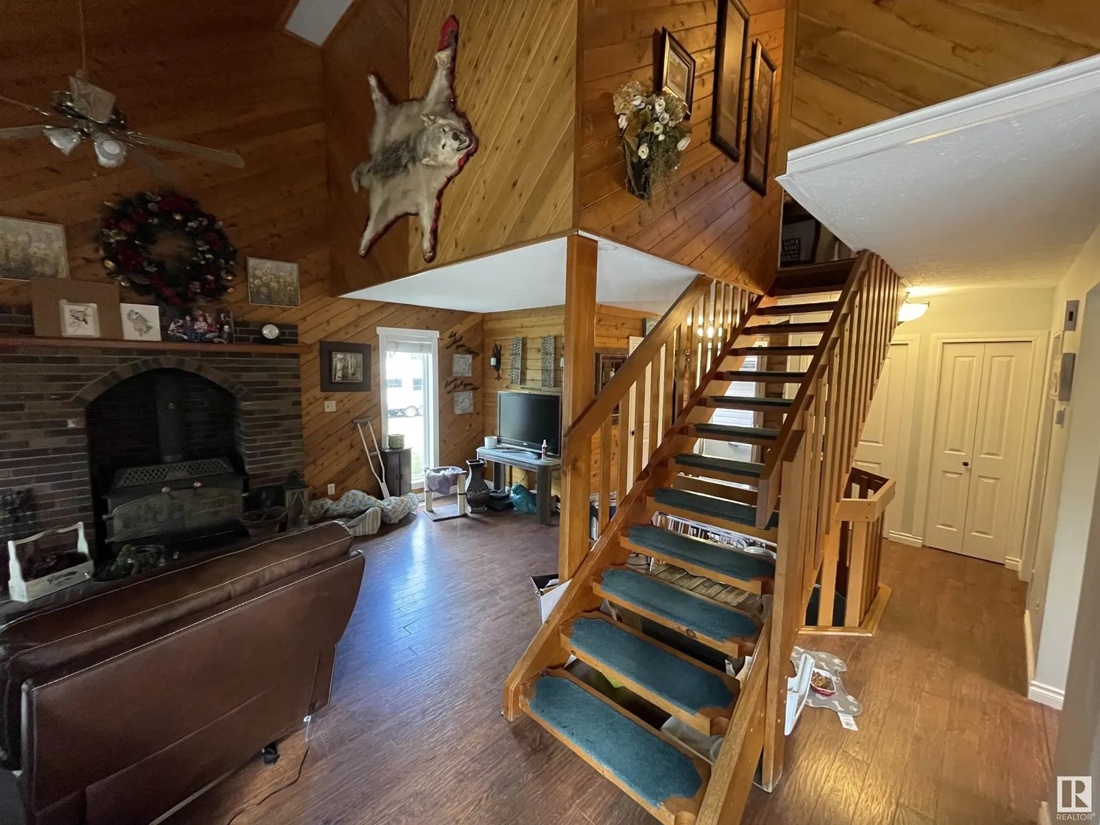 This beautiful 1300 sq. ft. 2 storey home sits on 3/4 of an acre and is surrounded by majestic spruce trees in sought after Moose Lake Estates. This home features 4 bedrooms, 3 bathrooms and main floor laundry. The fully renovated kitchen is bright and open with plenty of natural light. Enjoy the open, vaulted living room which includes wood burning fire place. There are 3 large bedrooms and a bathroom is on the upper level. The walk out basement features the master bedroom, a wood burning stove and access to the hot tub. The fully landscaped yard features a insulated and heated 36' by 28' detached garage and 4 sheds on the property. Improvements over the last few years includes: New furnace, new shingles, new kitchen including granite counter tops, new paint, new septic tank and field, basement completely renovated. This home also has access to Moose lake. Just a short walk away!! (id:27476)