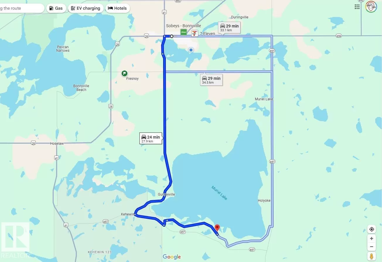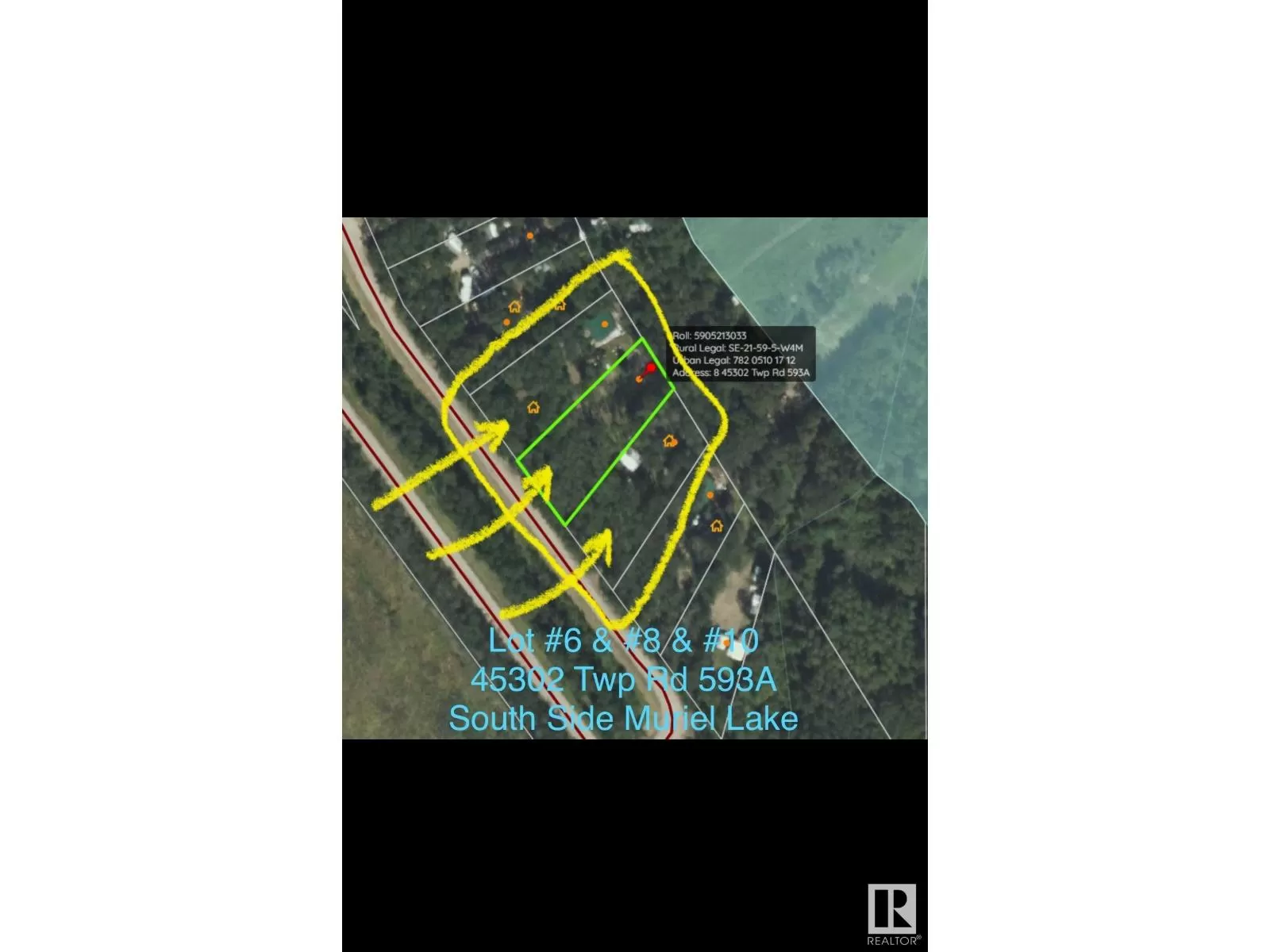 Vacant lot at east side of Muriel Lake South where there is very little activity and with mostly treed lot, quite secluded. The receded lake gives plenty of access to sandy beach and trails. The lot is in between two cabins that are currently for sale which gives opportunity to expand ownership to either. Services to develop are at the road: power and natural gas and internet. Plenty of room on the land to build and bury septic & water tanks. Use the land as is where nature is the boss and enjoy the serenity. (id:27476)