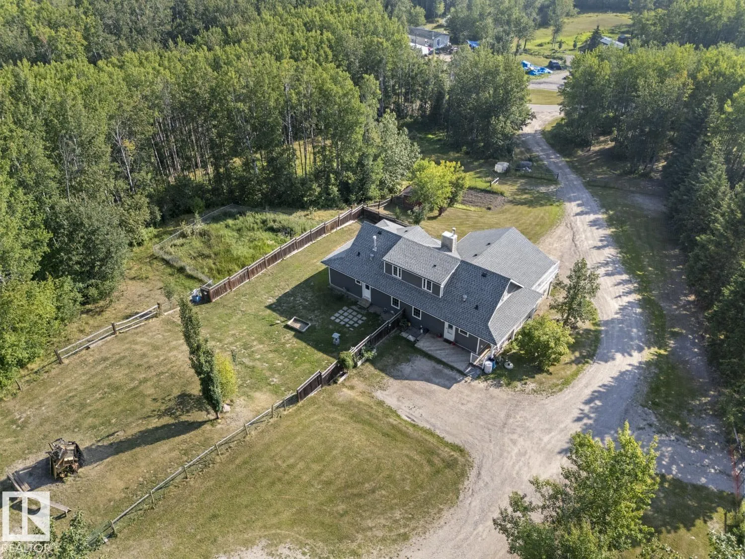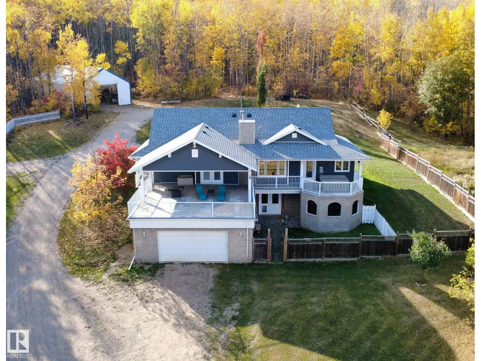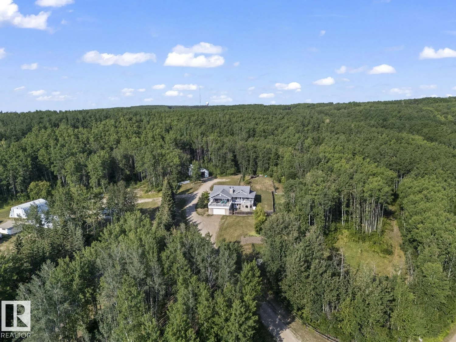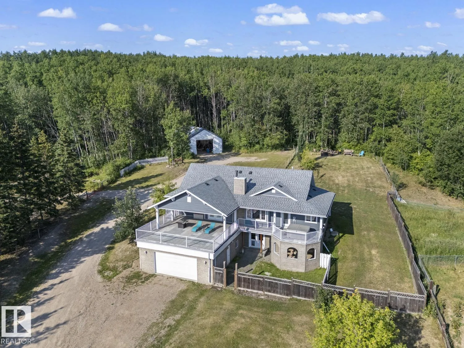 Enjoy peaceful country living on 2.47 acres near Cherry Grove. The main floor features an open layout with a wood stove insert and window seat in the living room, a kitchen with island, dining area, and a spacious primary bedroom with 3-piece ensuite and walk-in closet. Step out onto the massive covered deck with eastern views and hot tub. A 2-piece bath and laundry are conveniently located off the back entry. Upstairs offers two bedrooms, a full bath with soaker tub, and a flex space ideal for a home office or playroom. The walkout basement includes 10' ceilings, heated tile floors, a rec room, den/spare room, and plenty of storage. The heated double attached garage provides basement access. Outside, a secure fenced yard is perfect for kids or pets, with the entire larger yard also fenced and gated. There is a 64'x30' double-truss Quonset with 20' peak offers RV storage or project space. Just minutes to the ski hill, French Bay beach, and 10 minutes to Cold Lake South. (id:27476)