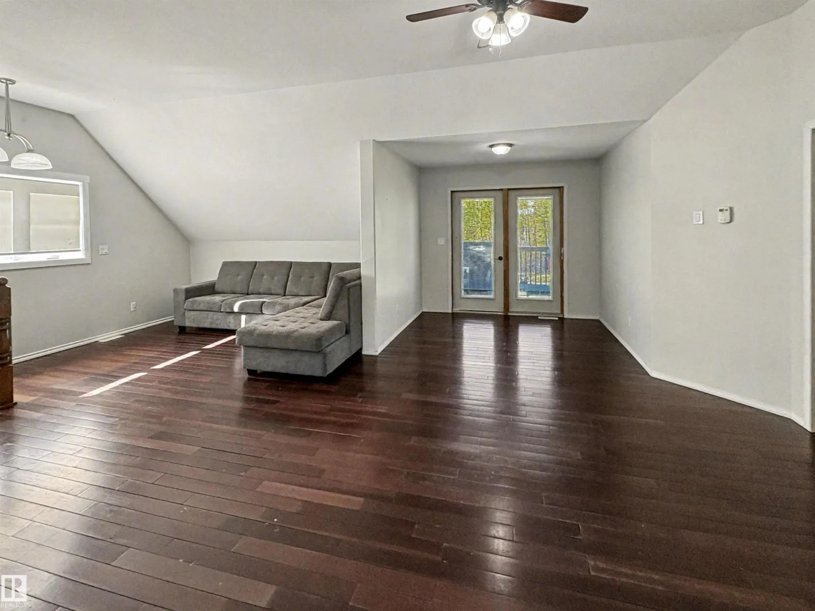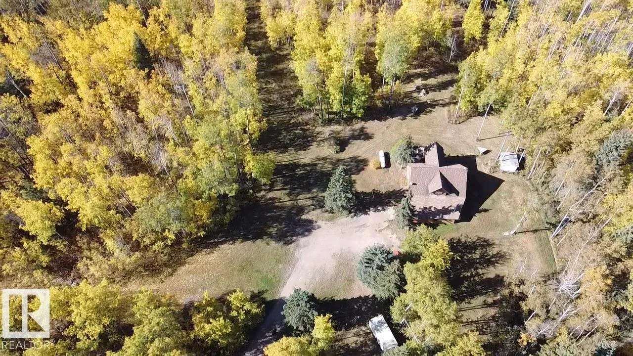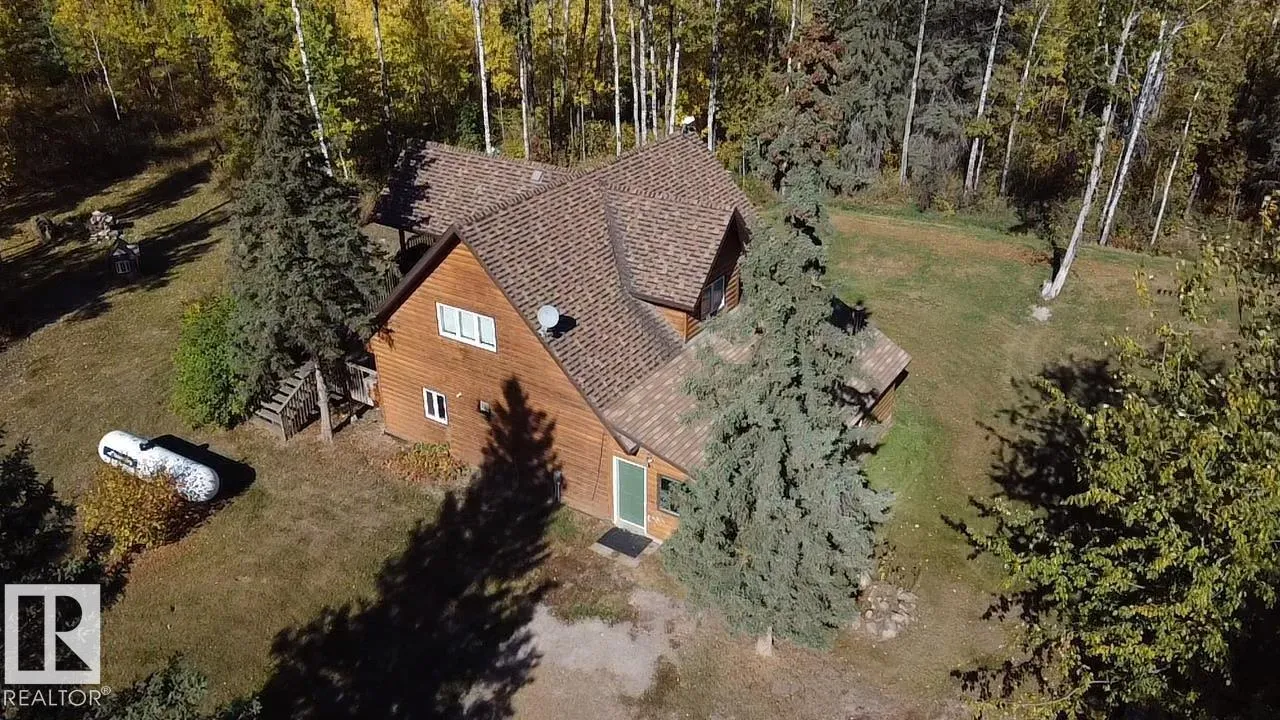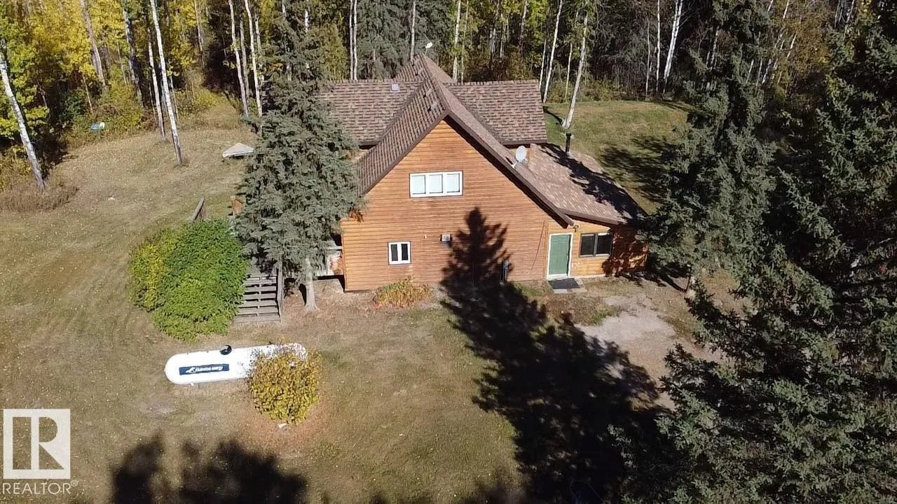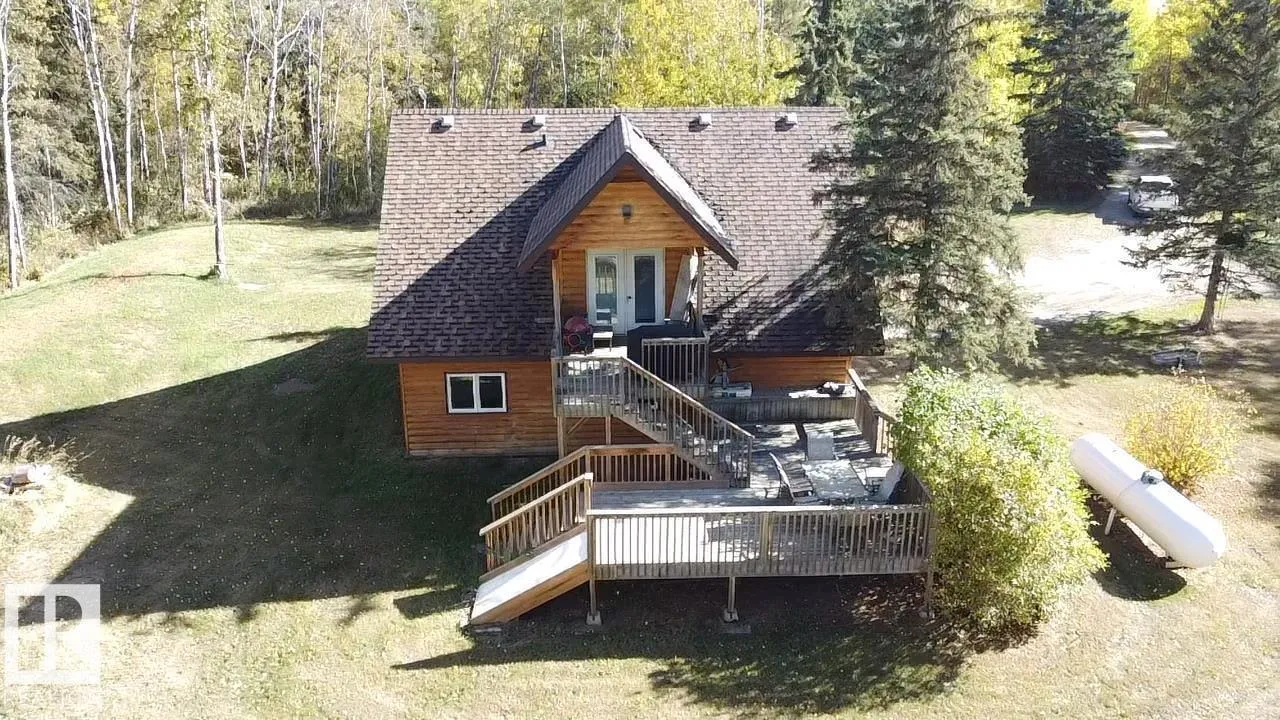 Escape to the Country! If privacy & tranquility are what you seek, this charming 1.5-storey home on 4 acres offers the perfect retreat. Brimming w/ character, the main level features a cozy family room, a welcoming entrance w/ WI closet, wood stove & stylish vinyl plank flooring w/ in-floor heating. A versatile flex room provides extra living space & wet bar or potential second kitchen. Upstairs, the open-concept design boasts vaulted ceilings & hardwood flooring throughout. The bright living room, functional kitchen & spacious dining area open onto a west facing,two-tier deck complete w/ a slide. 2 bdrms & 2 baths, including a primary suite w/ private 3-pc ensuite. Main bath includes a luxurious oversized air tub for ultimate relaxation. Fall in love w/ the private, tree-lined driveway & landscaped yard featuring mature trees, shed & plenty of extra parking. Conveniently located near Iron River School & just 25 minutes from Bonnyville, this is more than a home, it's a lifestyle where memories are made. (id:27476)
