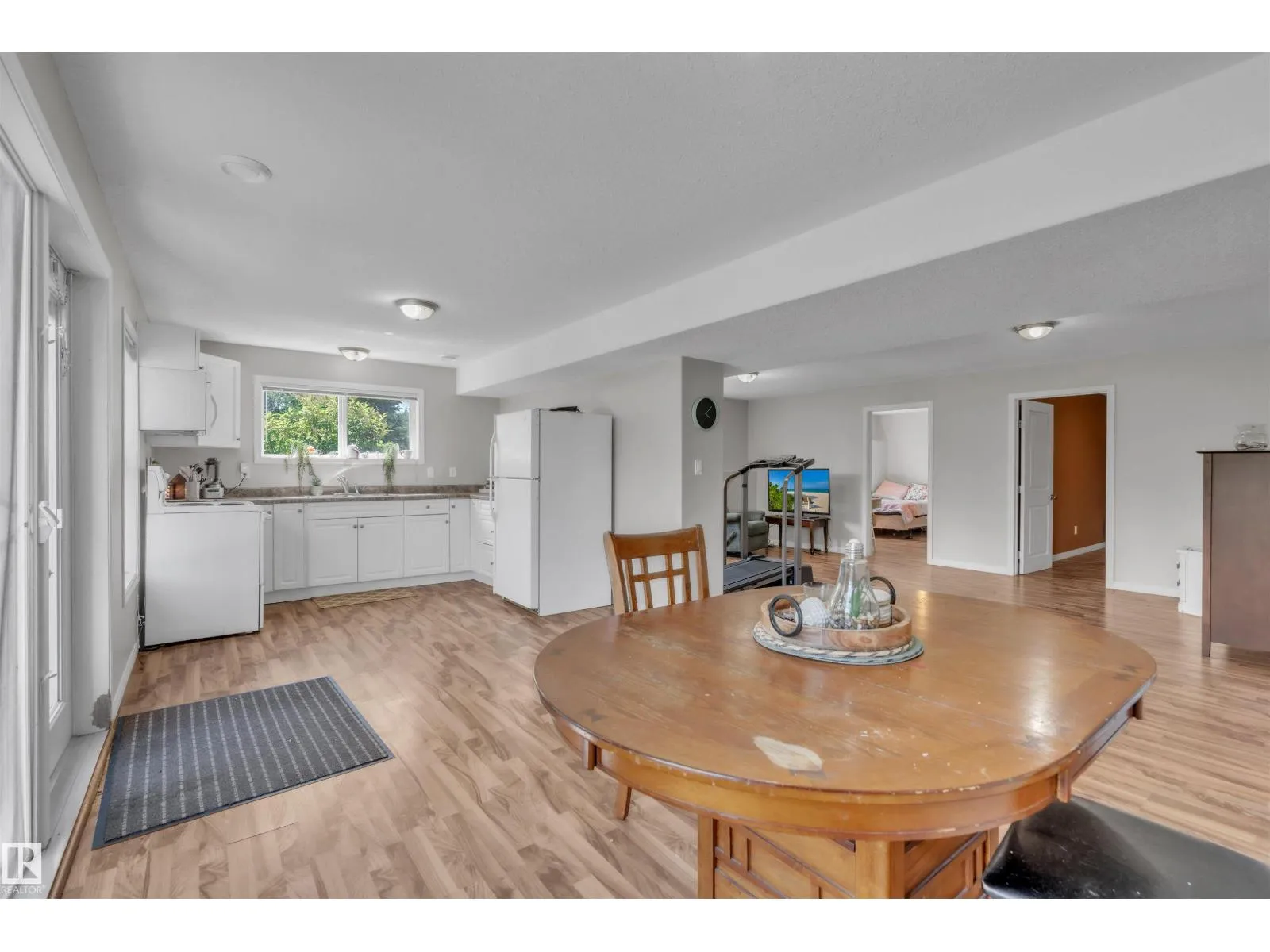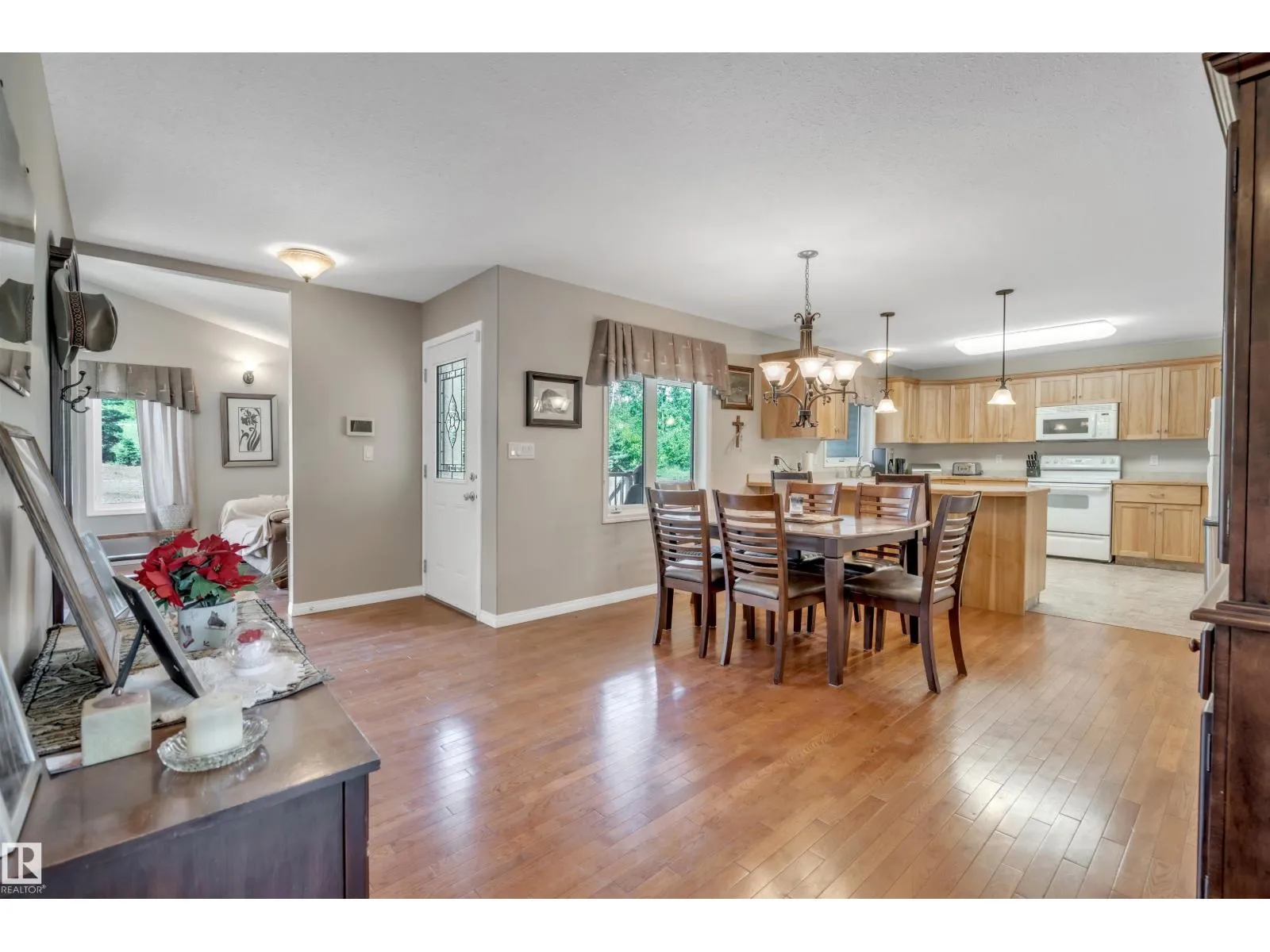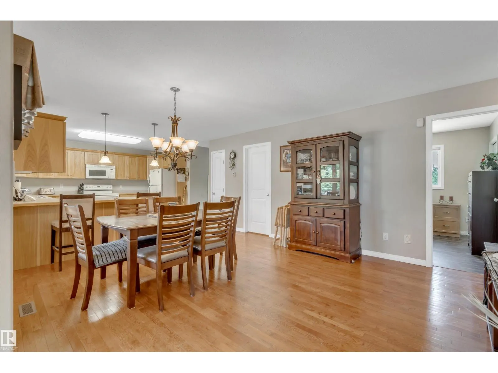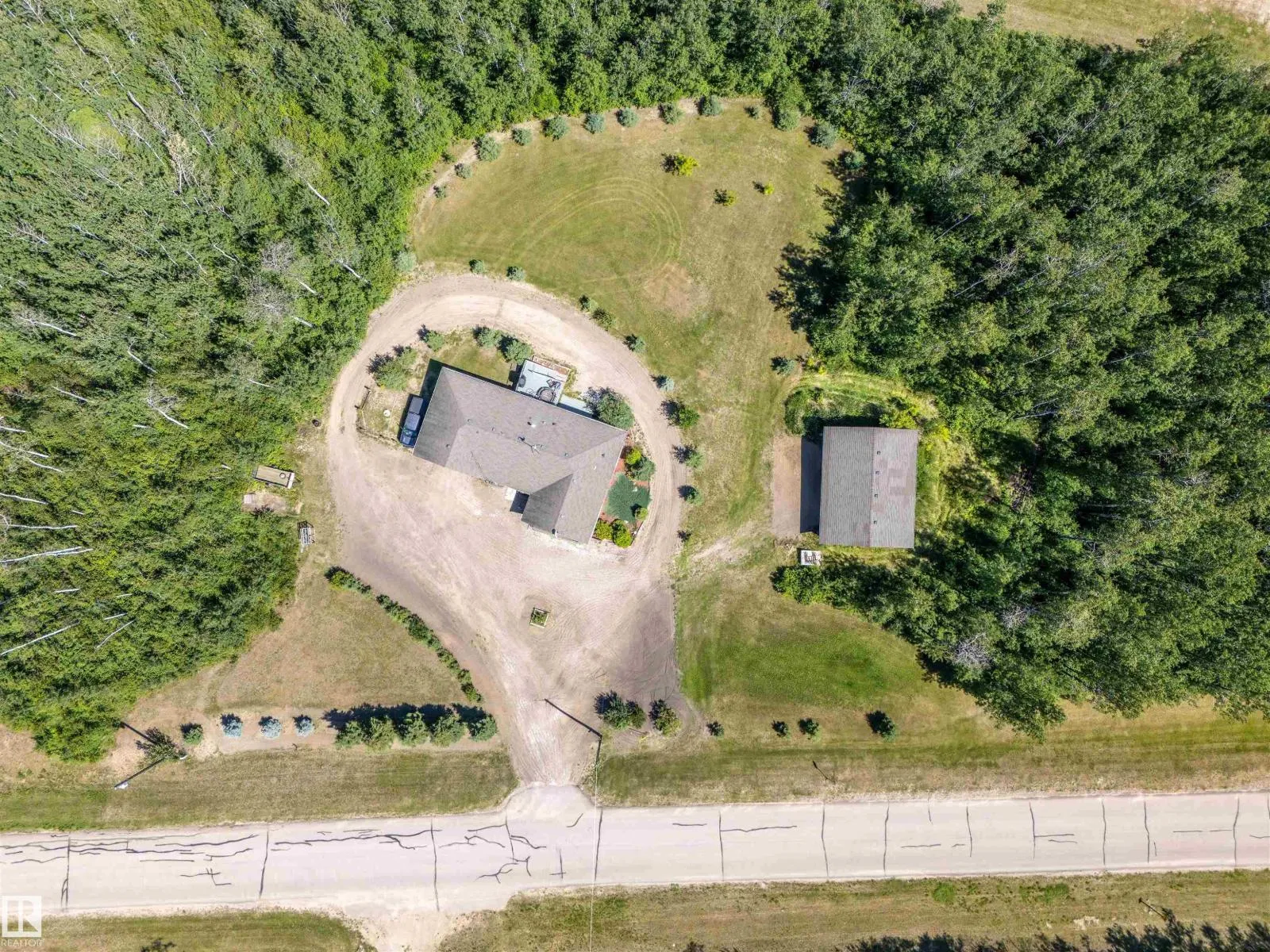 A custom-built original owner home, ideally located on 3.6 acres just a 10-minute drive from Cold Lake. As you enter, you have inviting hardwood floors that flow through the main level. The spacious living room features vaulted ceilings while seamlessly connecting to the open-concept dining and kitchen area. The kitchen showcases hickory cabinets and eat up area. The main floor provides practical living with three comfortable bedrooms, including a primary suite with a 4-piece ensuite, plus a second 4-piece bathroom. The walkout basement is a bright and welcoming space, offering a second kitchen, an additional bedroom, a dedicated office, a 3-piece bathroom, and a laundry area. There's in-floor heating throughout the basement, along with central air conditioning and efficient double-pane windows for the entire home. There's also an attached heated two-car garage, complemented by a detached triple-car garage (power but no heat) (id:27476)