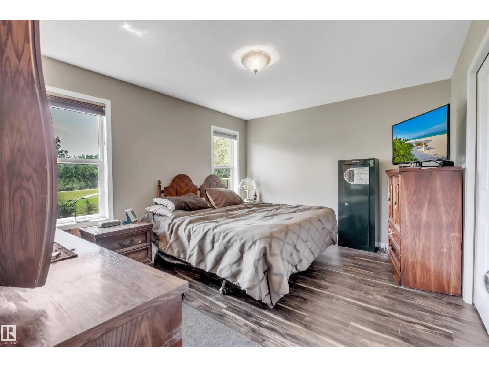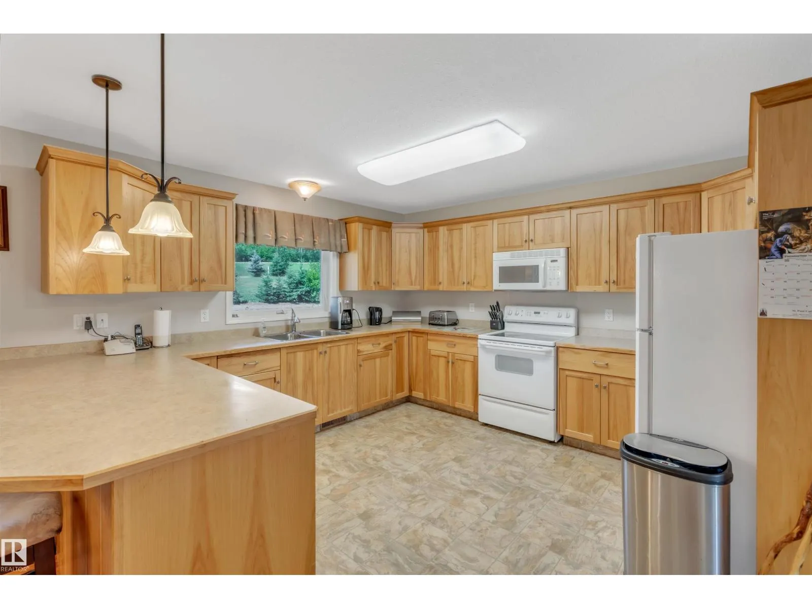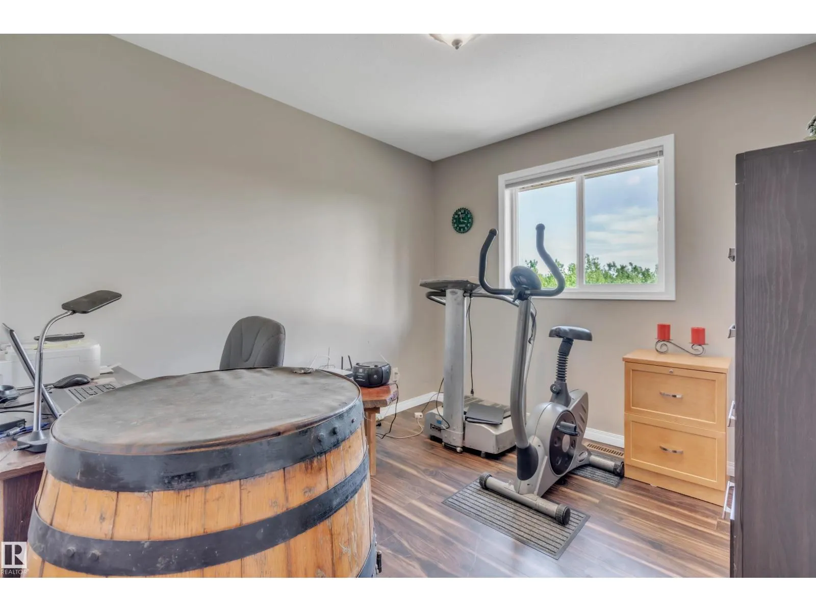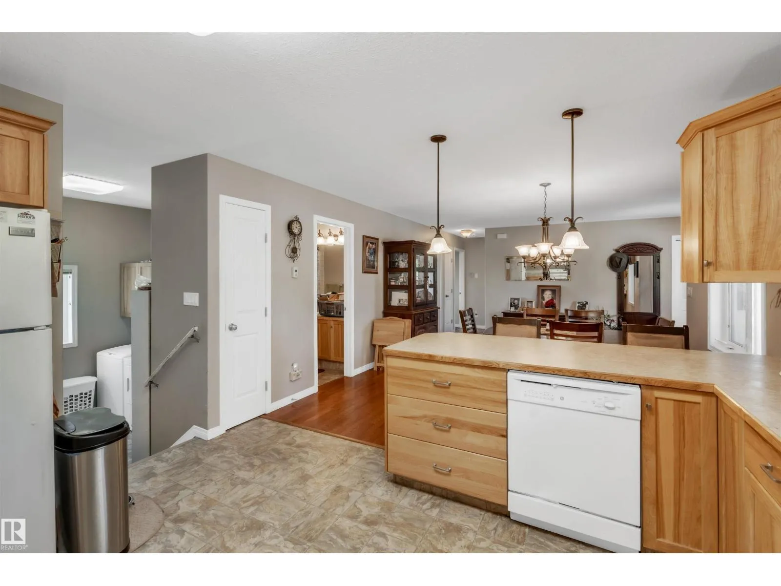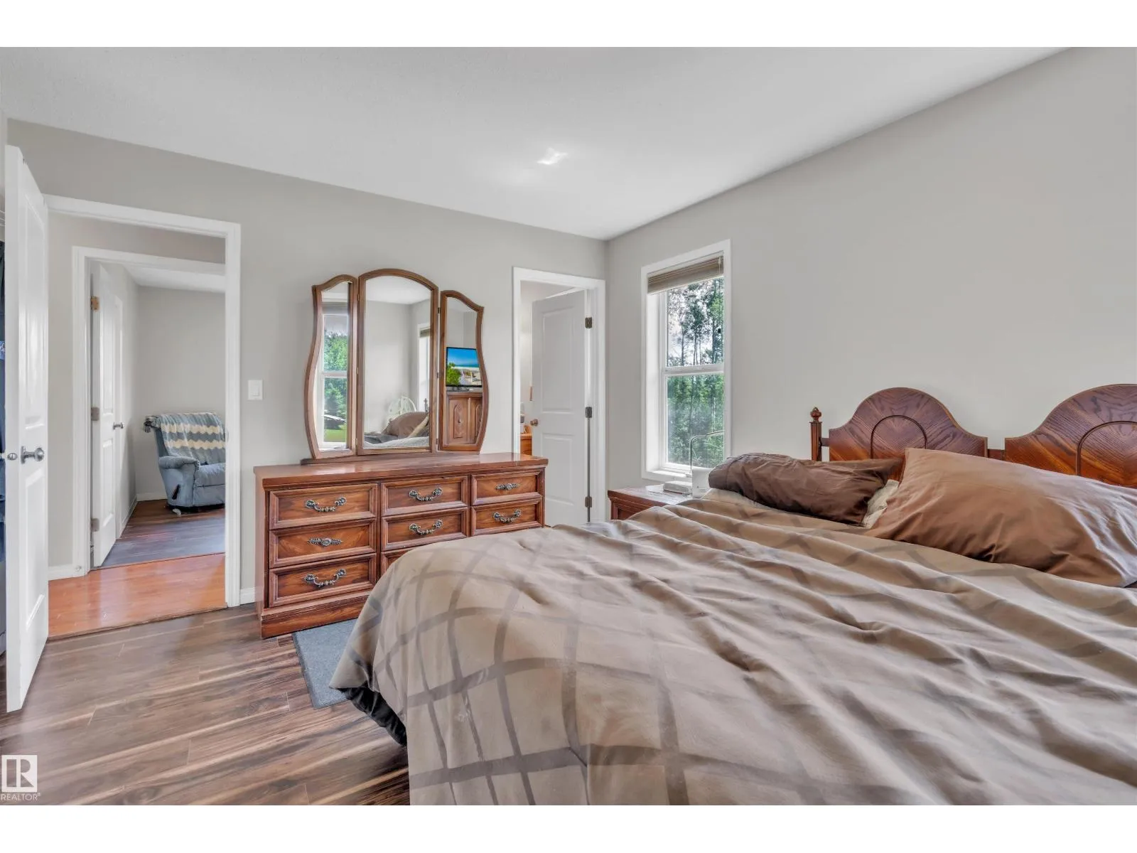 A custom-built original owner home, ideally located on 3.6 acres just a 10-minute drive from Cold Lake. As you enter, you have inviting hardwood floors that flow through the main level. The spacious living room features vaulted ceilings while seamlessly connecting to the open-concept dining and kitchen area. The kitchen showcases hickory cabinets and eat up area. The main floor provides practical living with three comfortable bedrooms, including a primary suite with a 4-piece ensuite, plus a second 4-piece bathroom. The walkout basement is a bright and welcoming space, offering a second kitchen, an additional bedroom, a dedicated office, a 3-piece bathroom, and a laundry area. There's in-floor heating throughout the basement, along with central air conditioning and efficient double-pane windows for the entire home. There's also an attached heated two-car garage, complemented by a detached triple-car garage (power but no heat) (id:27476)