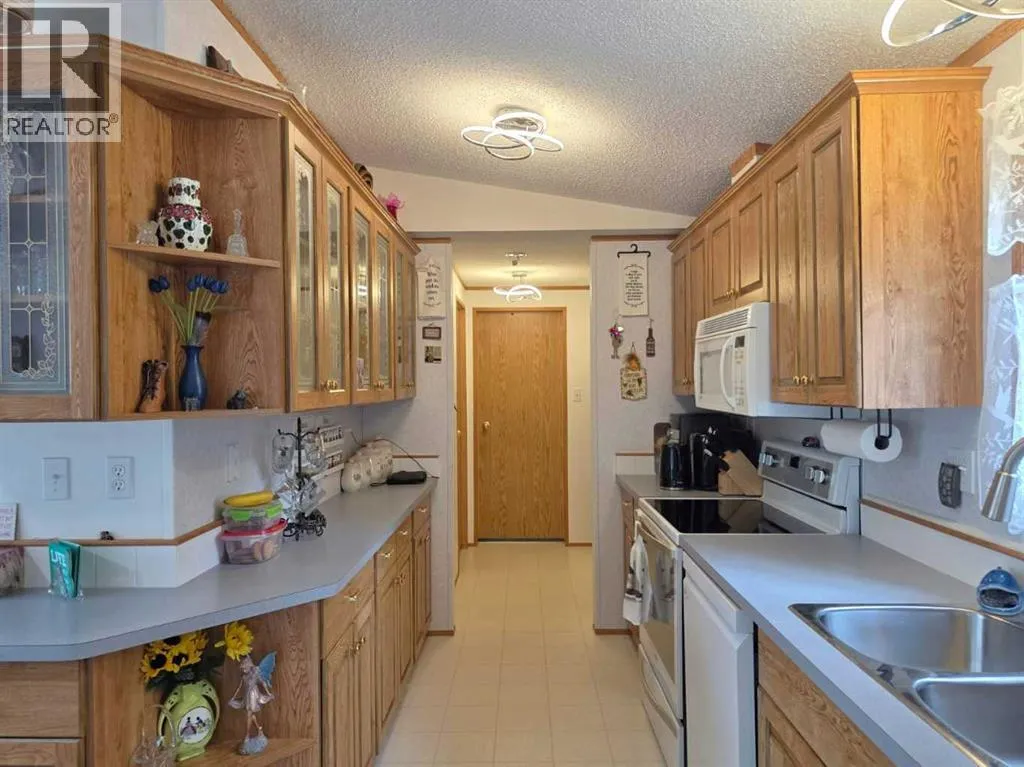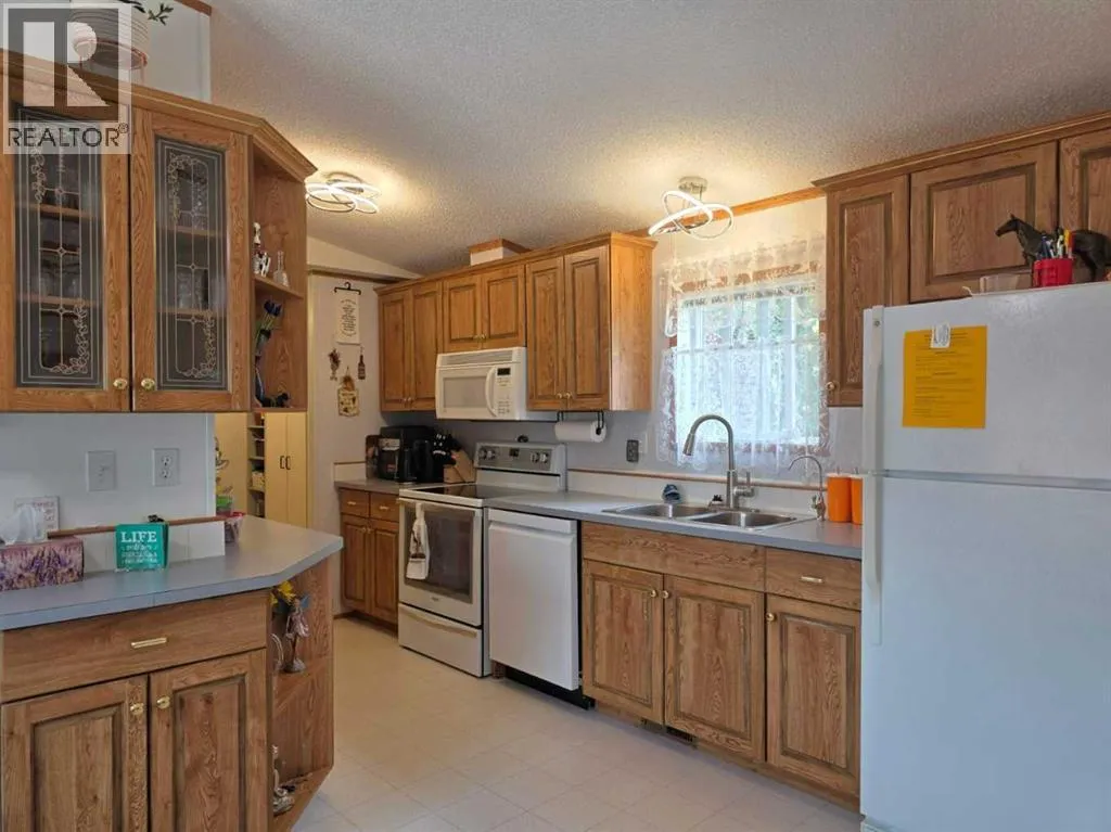 This Charming 2001 Mobile, offers 2 bedrooms/1 bathroom with many upgrades. Ideally located at the end of the road/overlooking hole #6 at Birchwood Golf and Country Club. Whether You're Looking for a Relaxing Retreat or a Year-Round Home, this property offers the Best of Both Worlds with a perfect blend of Comfort and Recreation. Key features include a new furnace (2024)/new stove (2024)/new dishwasher (2025)/new window replaced in living room (2025)/ newer blinds in kitchen and living room/some new LED lights in the kitchen and bathroom/a large deck (full length of the unit)/14x12 canopy & 24x12 truck shelter/two sheds (10x10 and 8x10)/a 2000-gallon septic tank. Utilities are exceptionally low; this last March was approx. $200 for gas and power together. $126 condo fee is for communal water. Located at the Birchwood Golf and Country Club, you'll have access to a 9-hole golf course/Pro Shop/restaurant/and motel accommodations for guests. Nearby locations include the Hamlet of Lindale (4 km, mailboxes but no convenience store)/the Town of Tomahawk (18 km, convenience store/post office/mailboxes available)/and the Town of Drayton Valley (20 km, full amenities including Walmart/Canadian Tire/Home Hardware/and IGA store). Whether it's your golfing getaway or year-round retreat, this home offers everything you need. If golfing is your favorite pastime, Birchwood Golf and Country Club is the place to be! (id:27476)